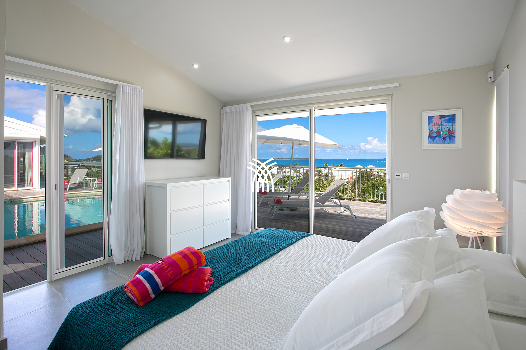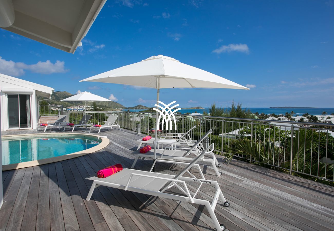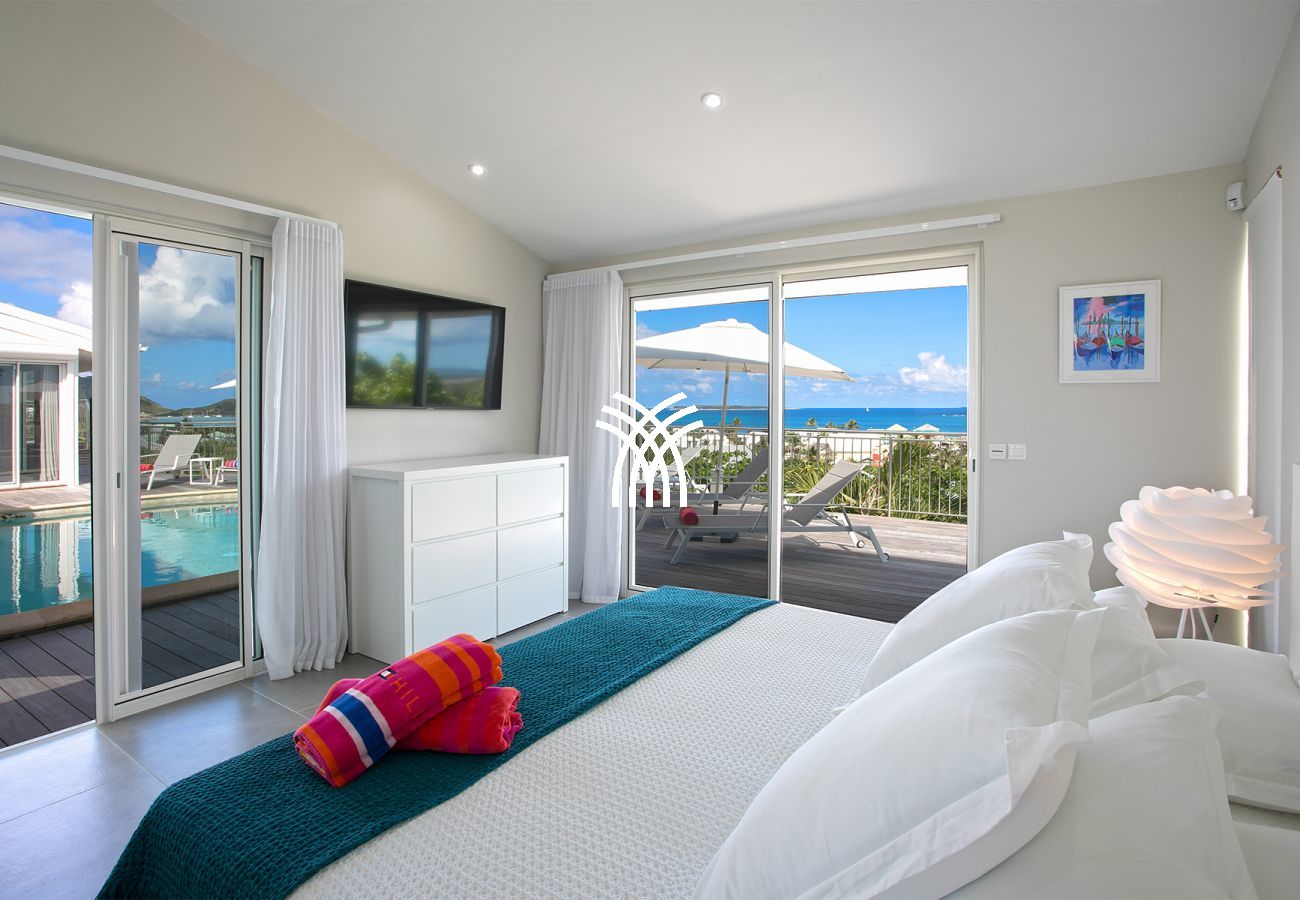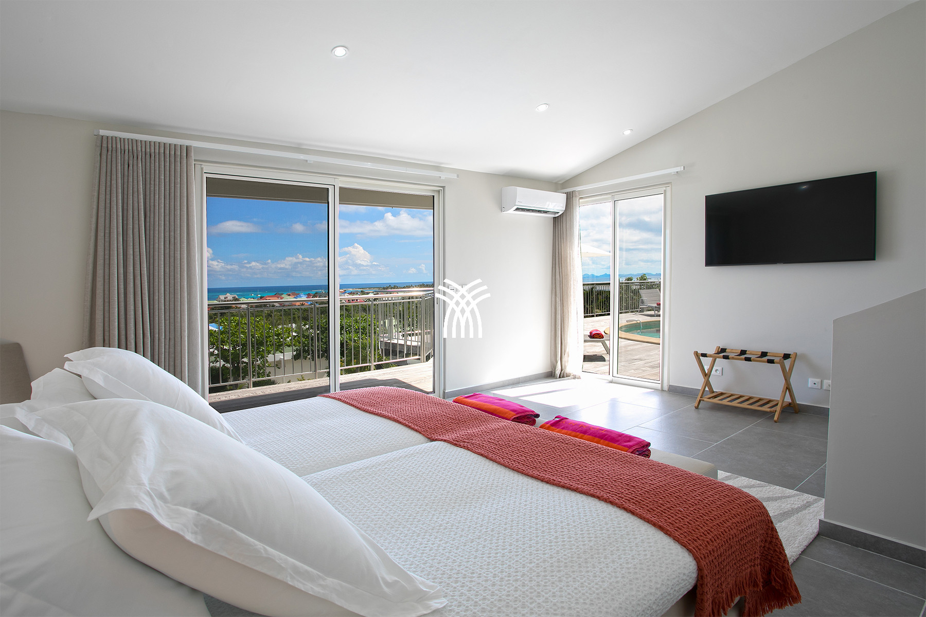 Brand new, ultra modern 3 bedroom villa situated in the heights of Orient Bay with a spectacular sunrise ocean view over Tintamarre and St Barts.