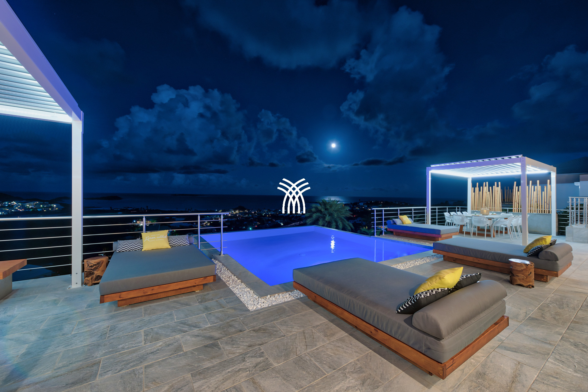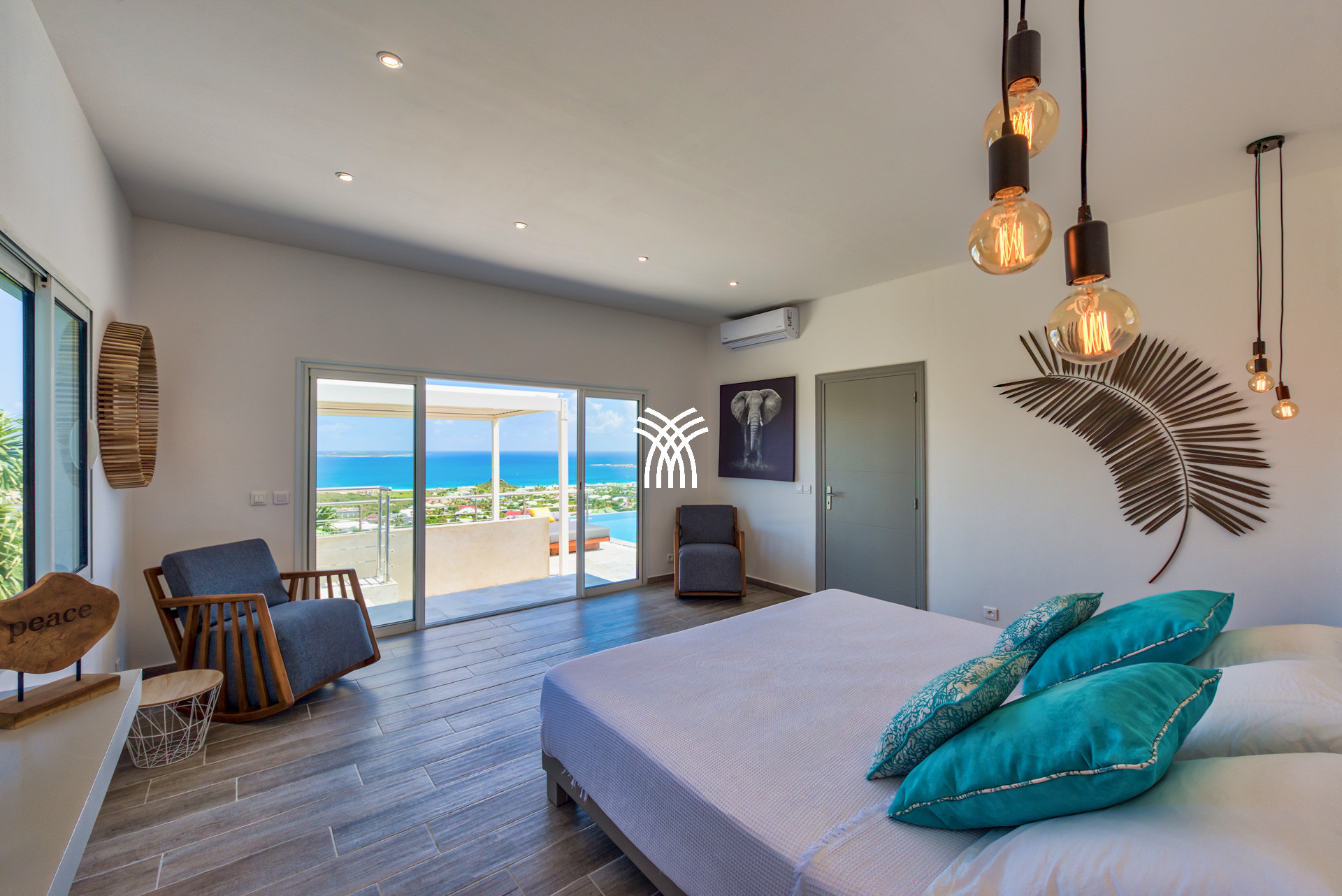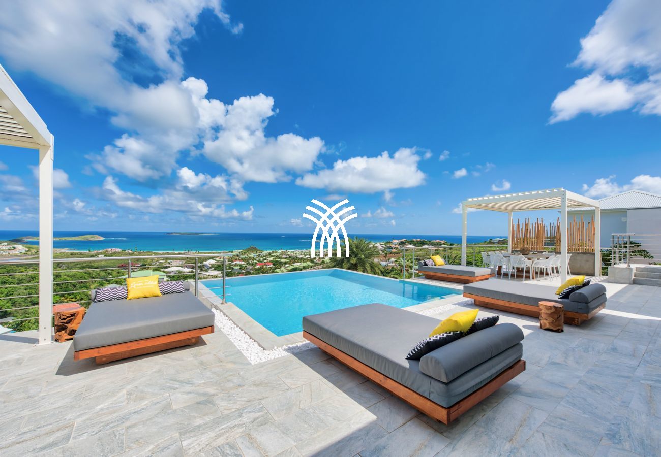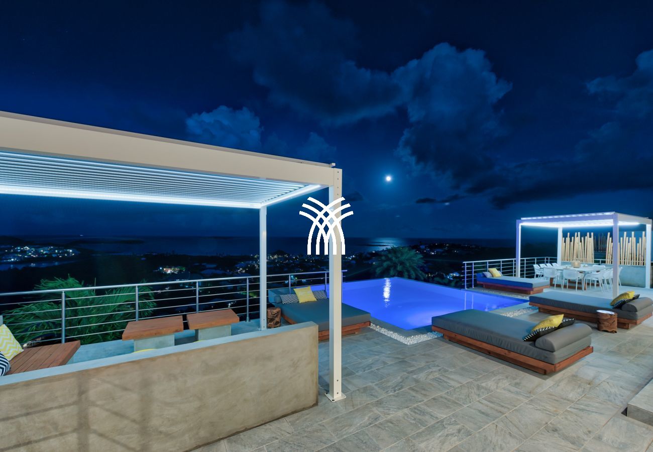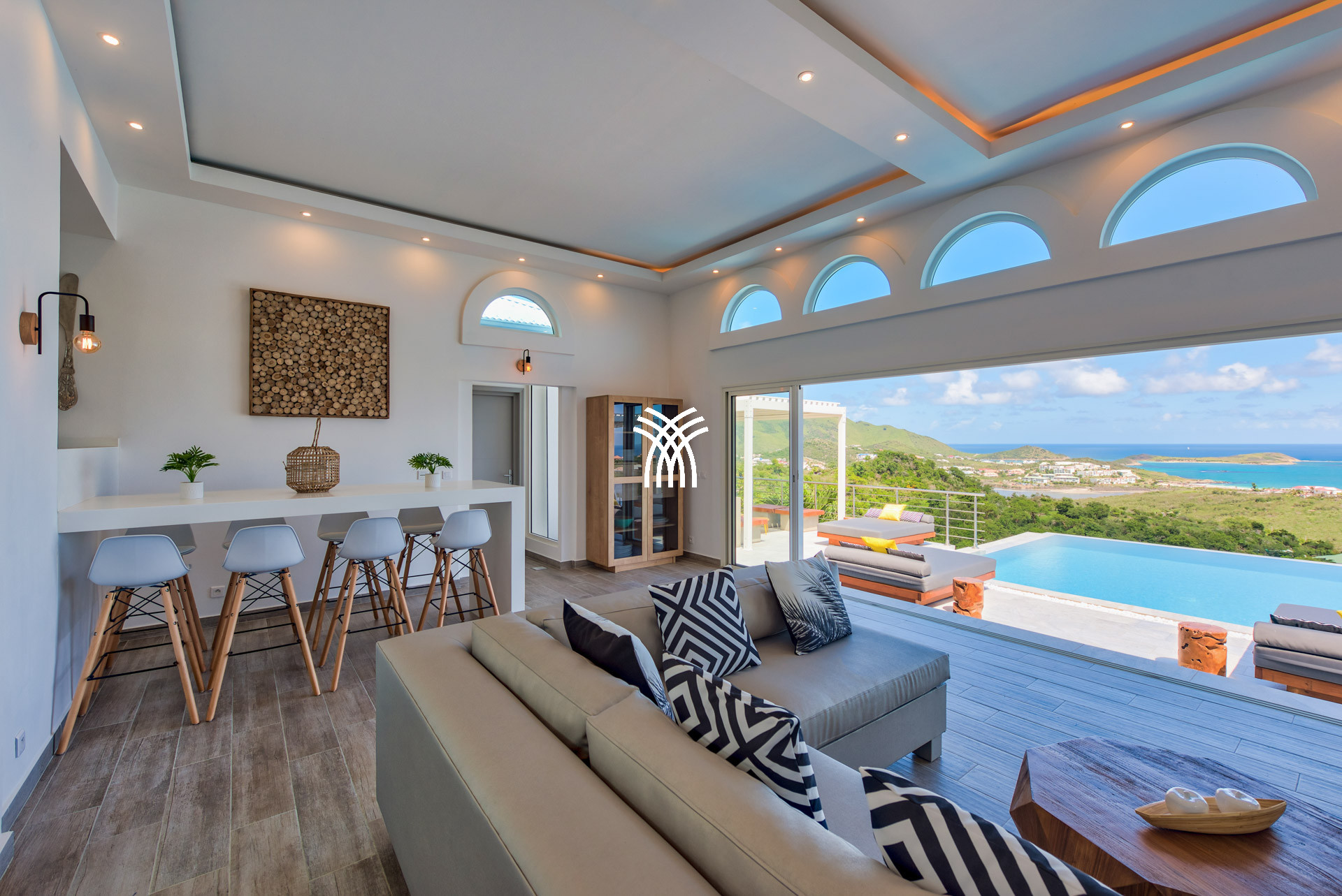 Villa Karukera St Martin is a modern 4 bedroom, 4 bathroom villa overlooking Orient Bay, the islands of Pinel, Tintamarre and St Barth.