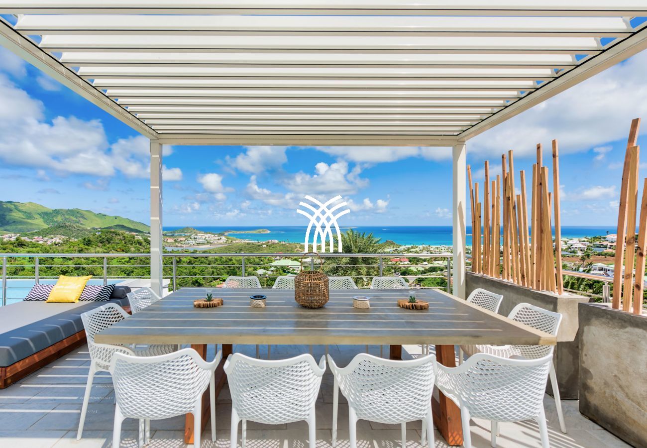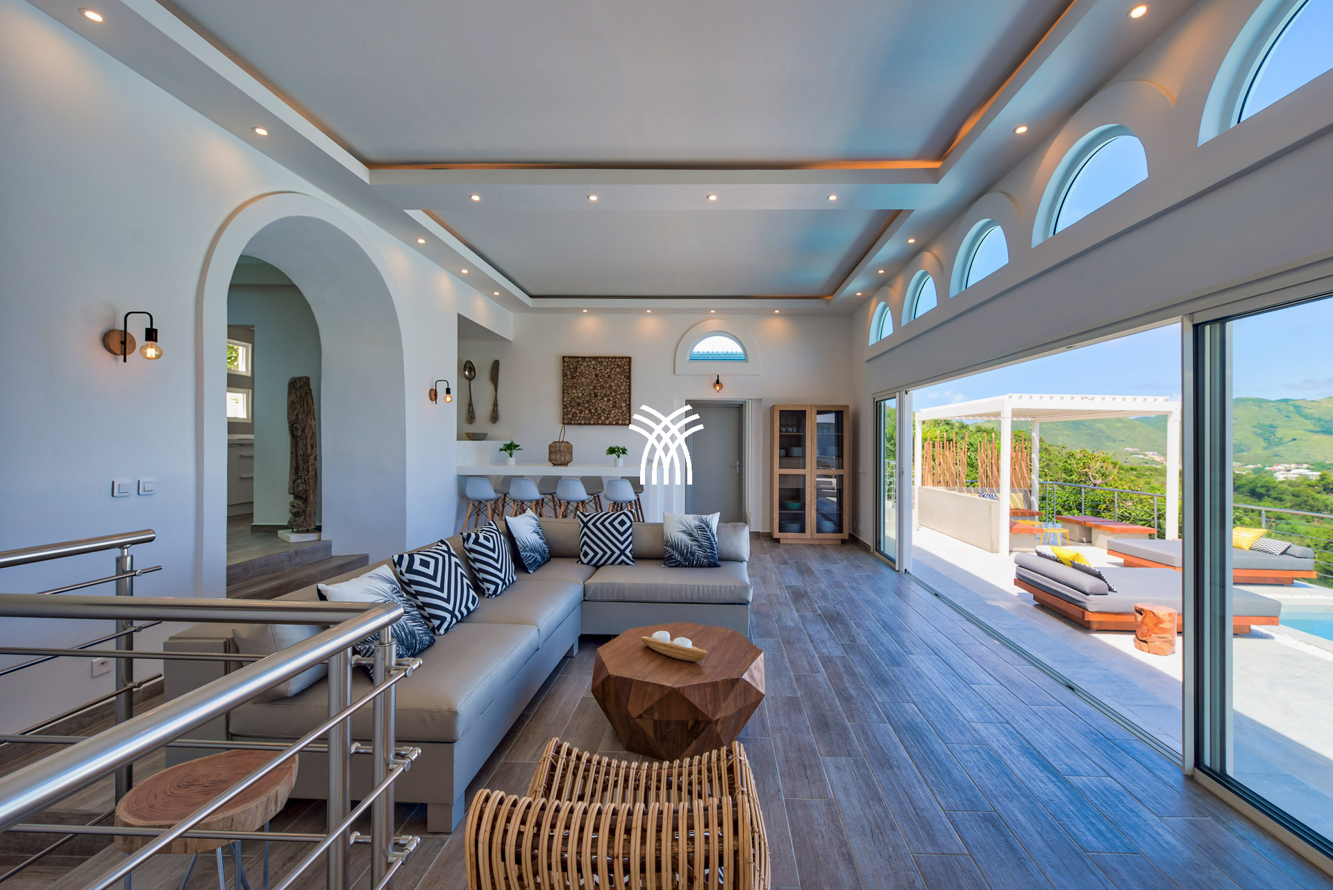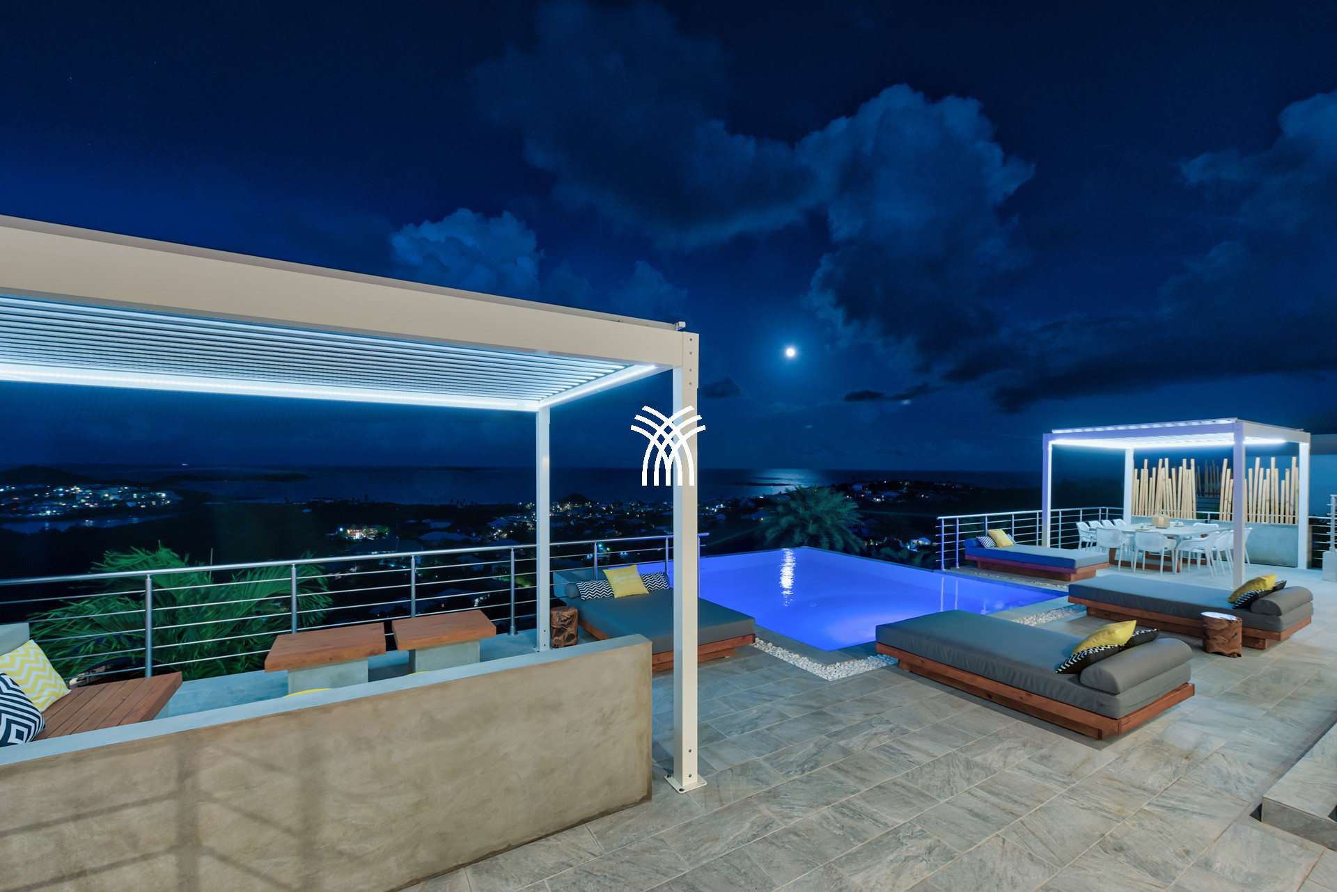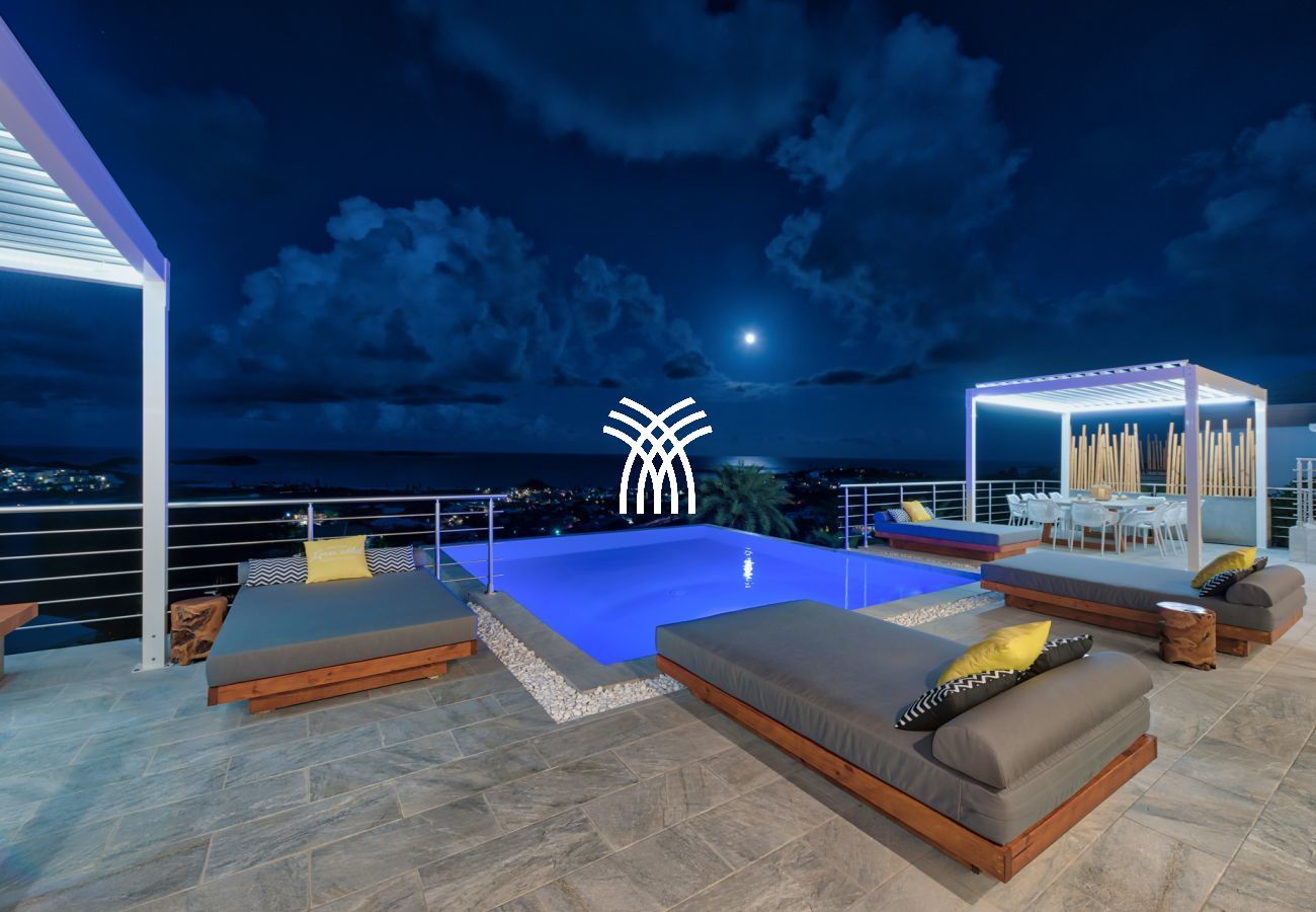 Villa Karukera St Martin is a modern 4 bedroom, 4 bathroom villa overlooking Orient Bay, the islands of Pinel, Tintamarre and St Barth.