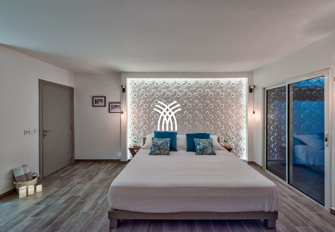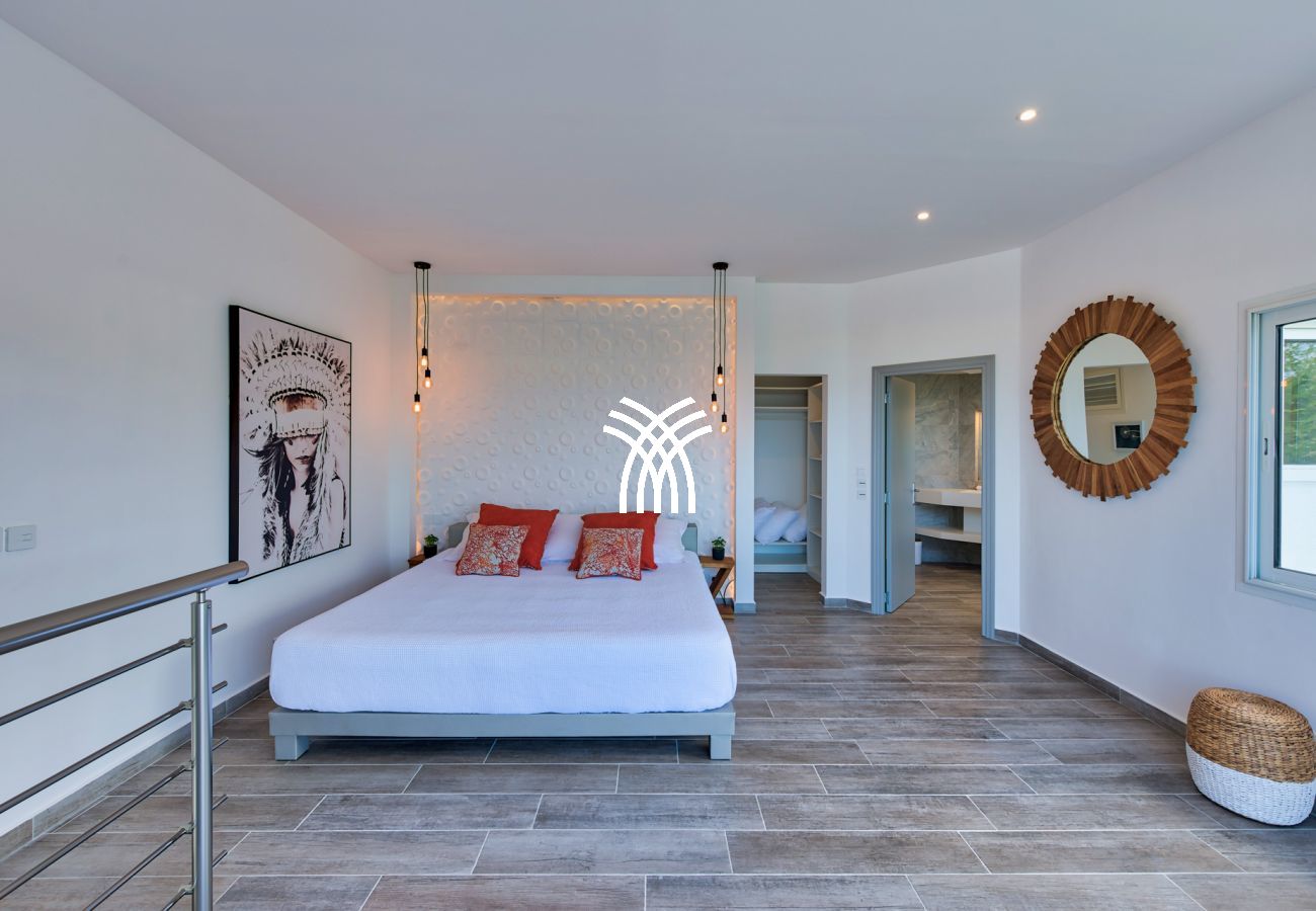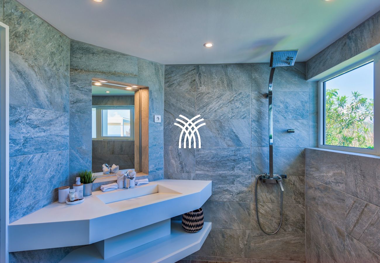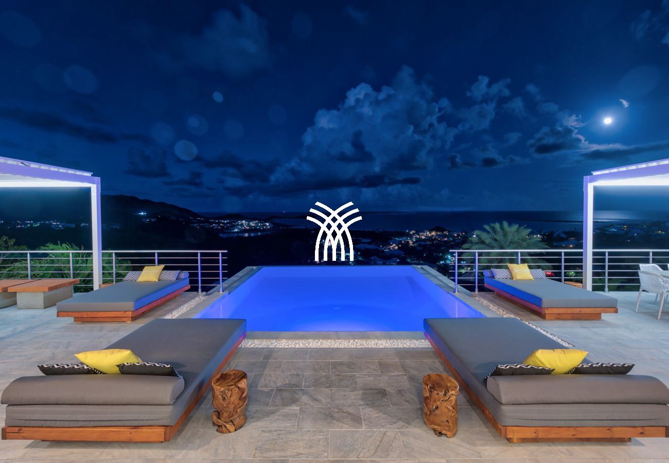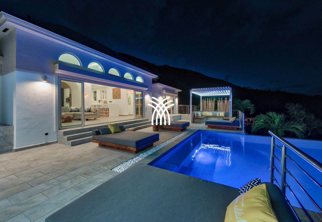 Villa Karukera St Martin is a modern 4 bedroom, 4 bathroom villa overlooking Orient Bay, the islands of Pinel, Tintamarre and St Barth.