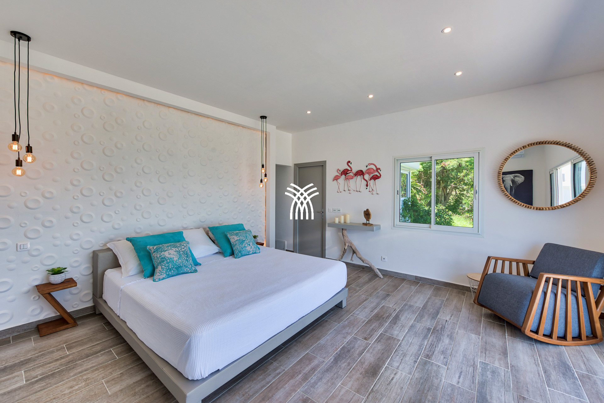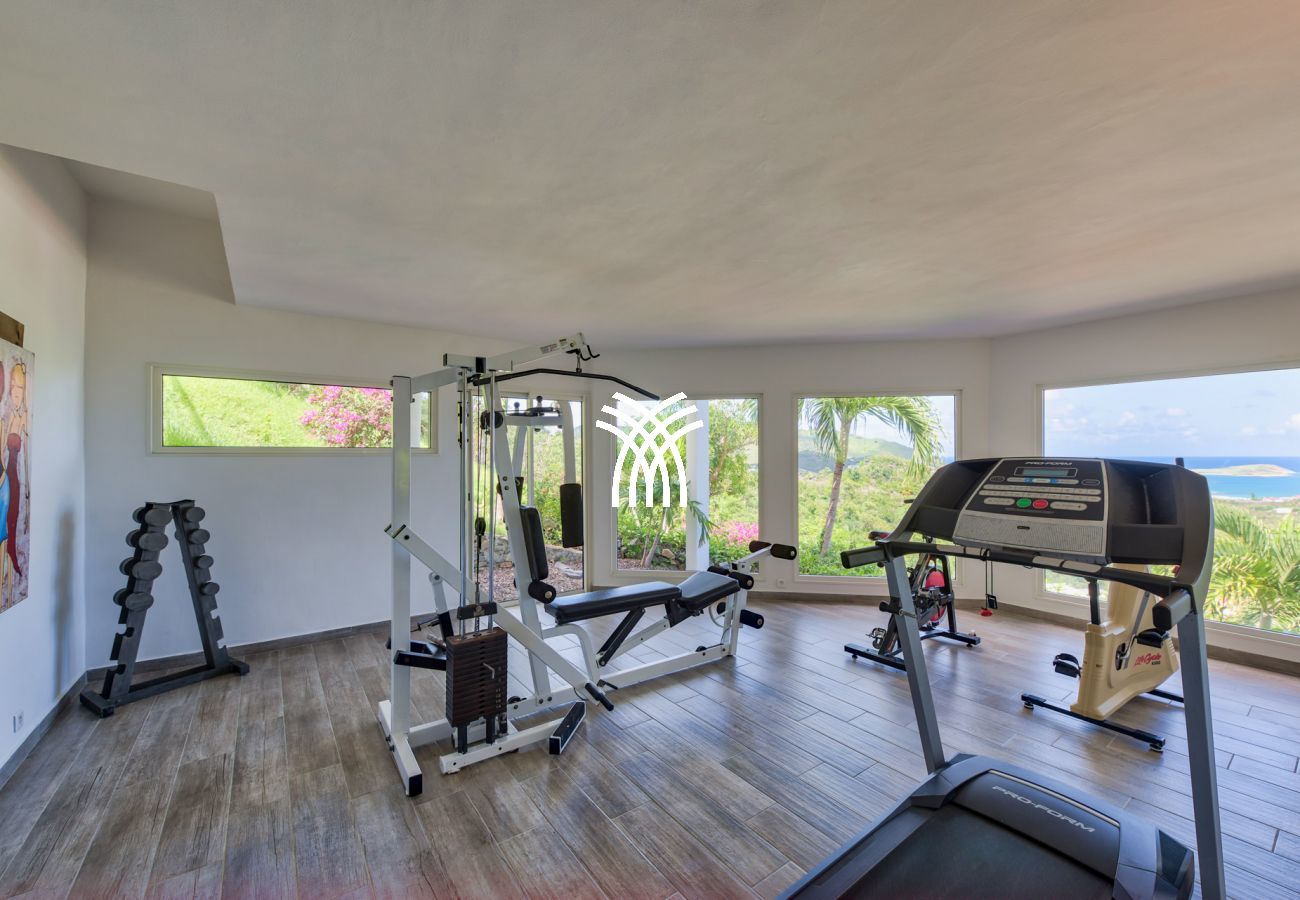 Villa Turquoze St Martin has indoor accessed bedrooms, A/C throughout the house, and a well equipped gym room with still a nice view.