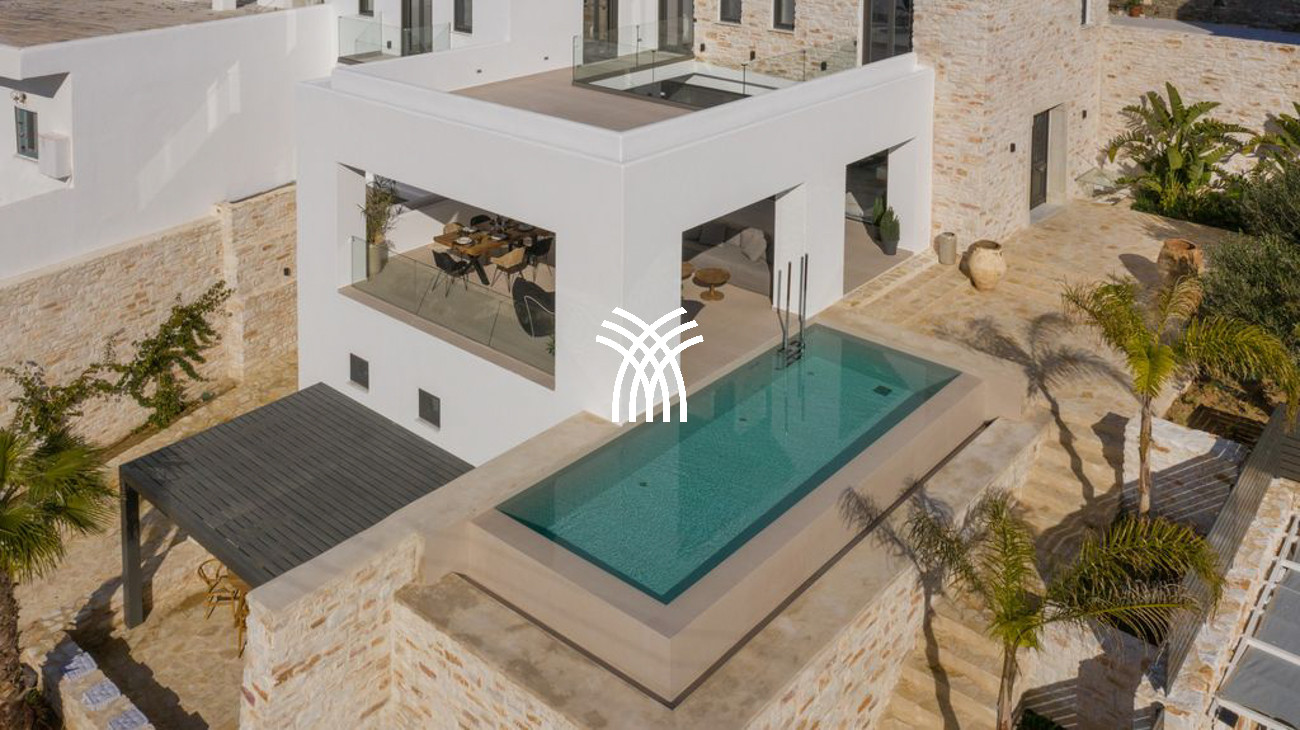 Nestled in the refined seaside enclave of Piso Livadi, Casa Aloe is an exceptional expression of contemporary elegance and Cycladic charm, offering an unforgettable experience of privacy, comfort, and breathtaking natural beauty. Set on a 530-square-meter estate embraced by lush trees and urban-style landscaping, this residence embodies the essence of a luxury villa rental Greece, where architectural sophistication meets the serene allure of the Aegean. Ideally positioned near the celebrated southern beaches of Golden Coast and Kalogeros and just a 15-minute drive from the vibrant town of Naoussa, this luxury villa rental Paros perfectly balances tranquil seclusion with effortless access to the island’s most sought-after destinations.