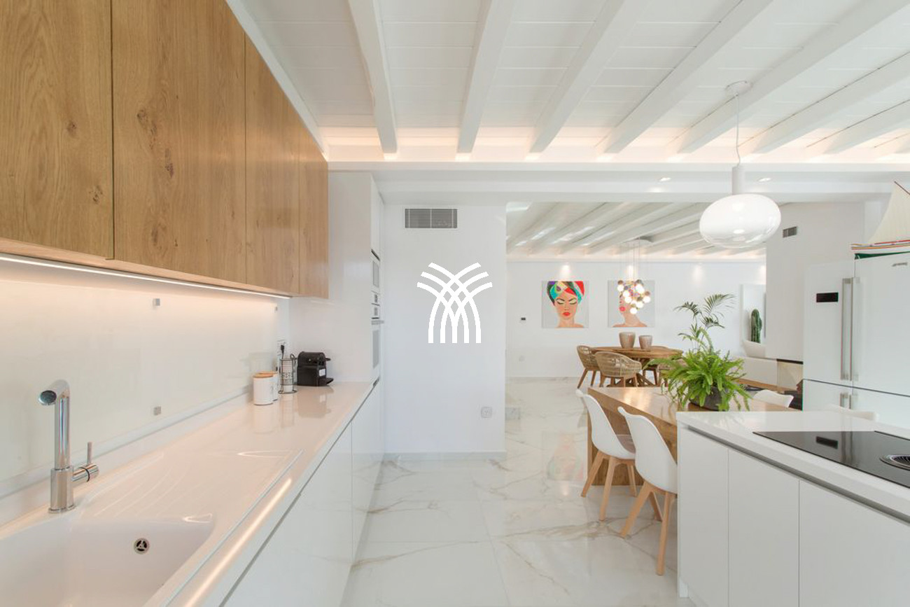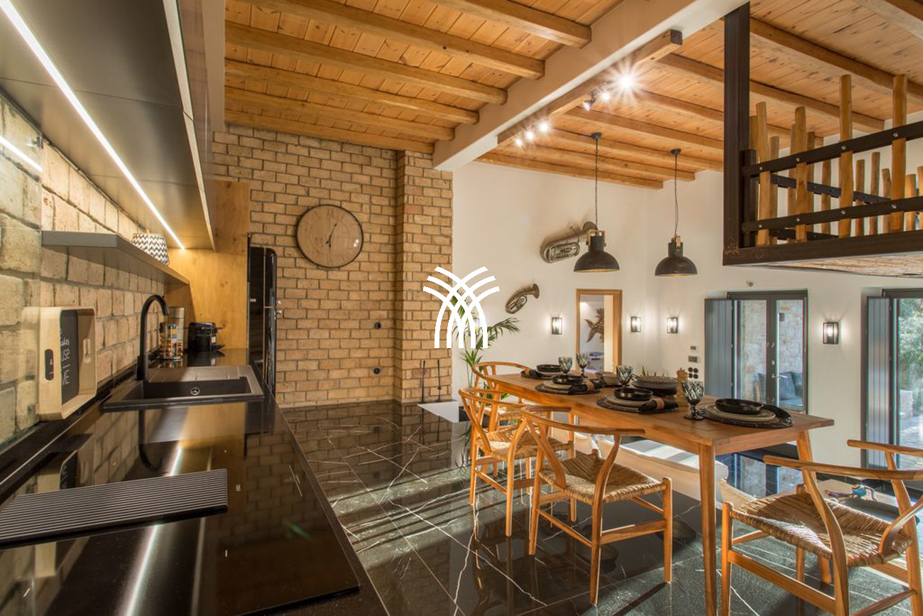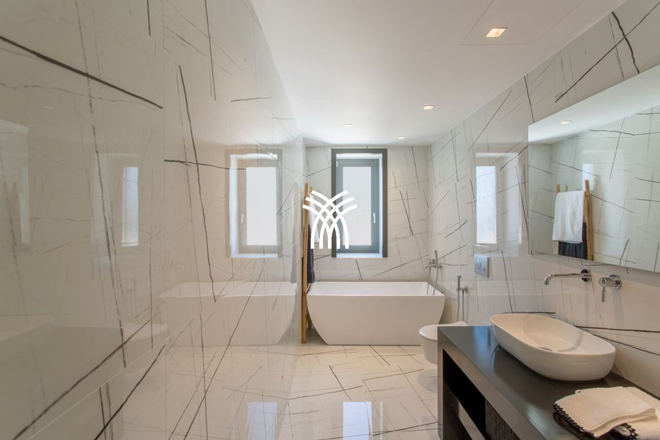 The fully equipped kitchen, fitted with state-of-the-art appliances, invites culinary creativity and conviviality, transforming everyday meals into memorable experiences in an atmosphere of understated luxury. Throughout the villa, carefully curated design elements and contemporary finishes create a soothing yet sophisticated ambiance, where every space feels both elegant and welcoming.