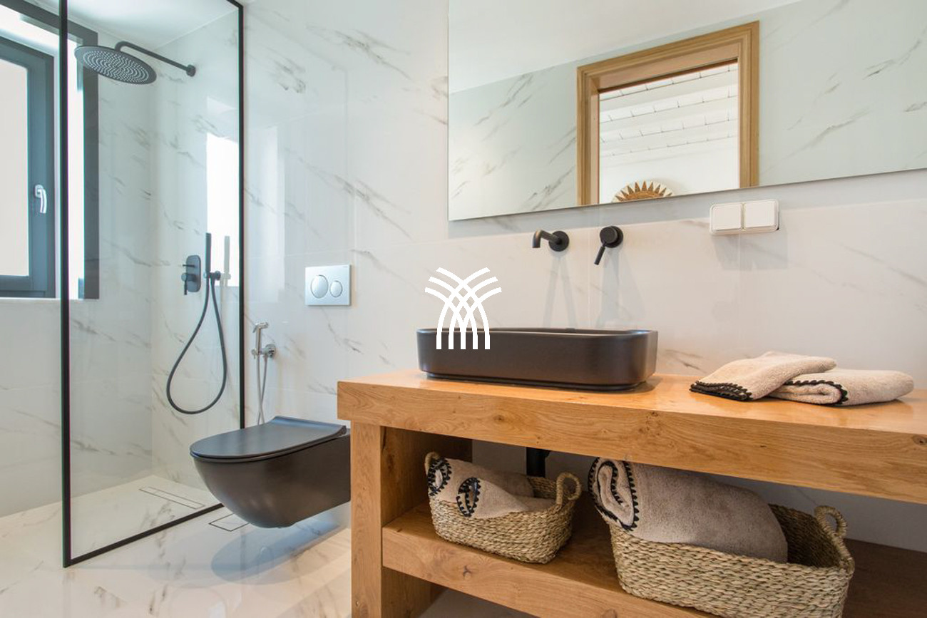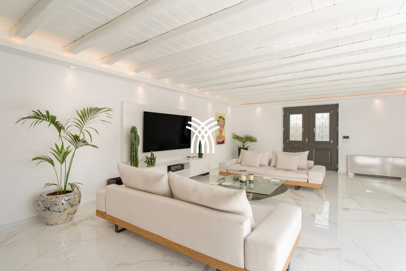 Throughout the residence, central cooling, an alarm system, and a safe box in the master bedroom ensure comfort and security. Guests enjoy a high level of service, including daily cleaning, sheet changes three times per week, daily towel changes, pool and beach towels, laundry service managed by the housekeeper, premium bathroom amenities featuring renowned Greek herbal products Korres, and slippers, all curated to elevate the experience of refined living.