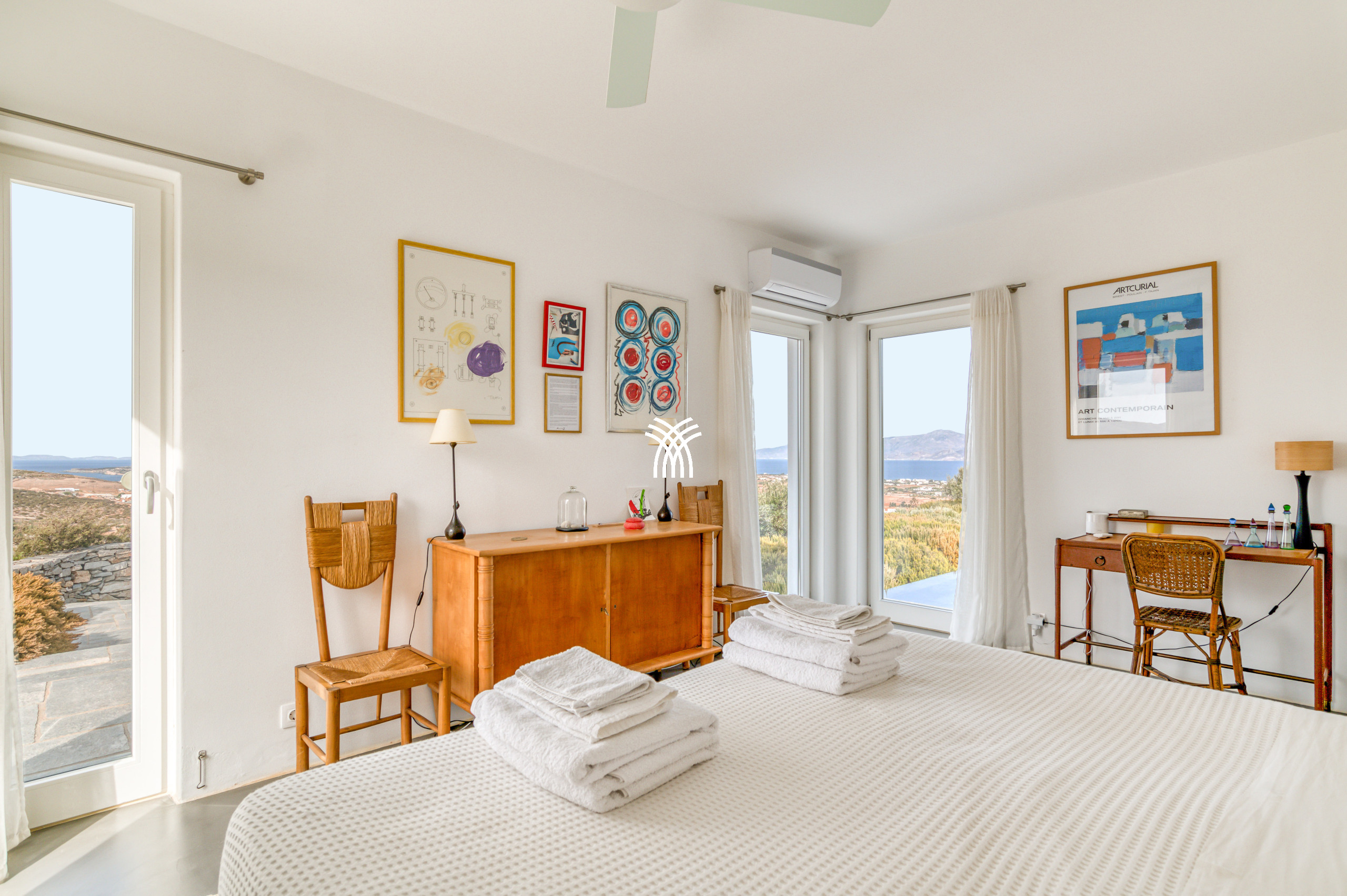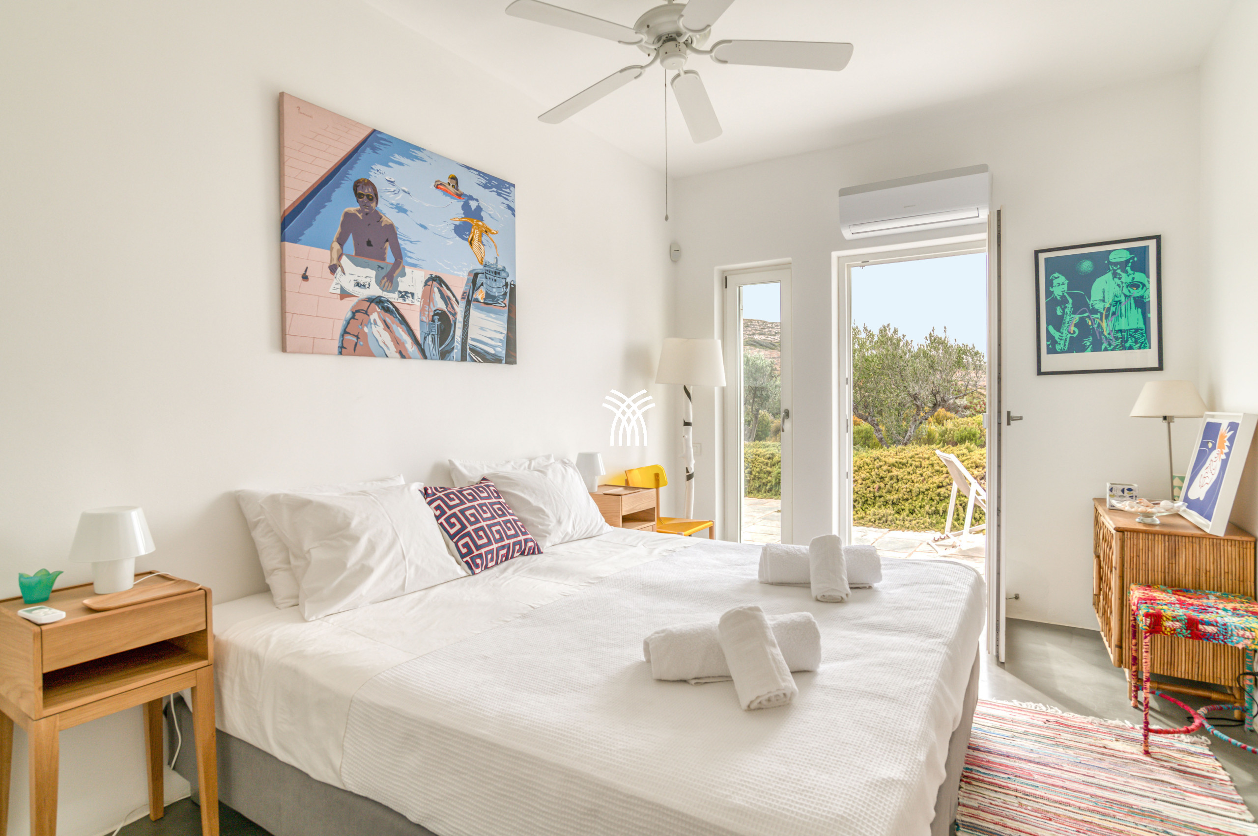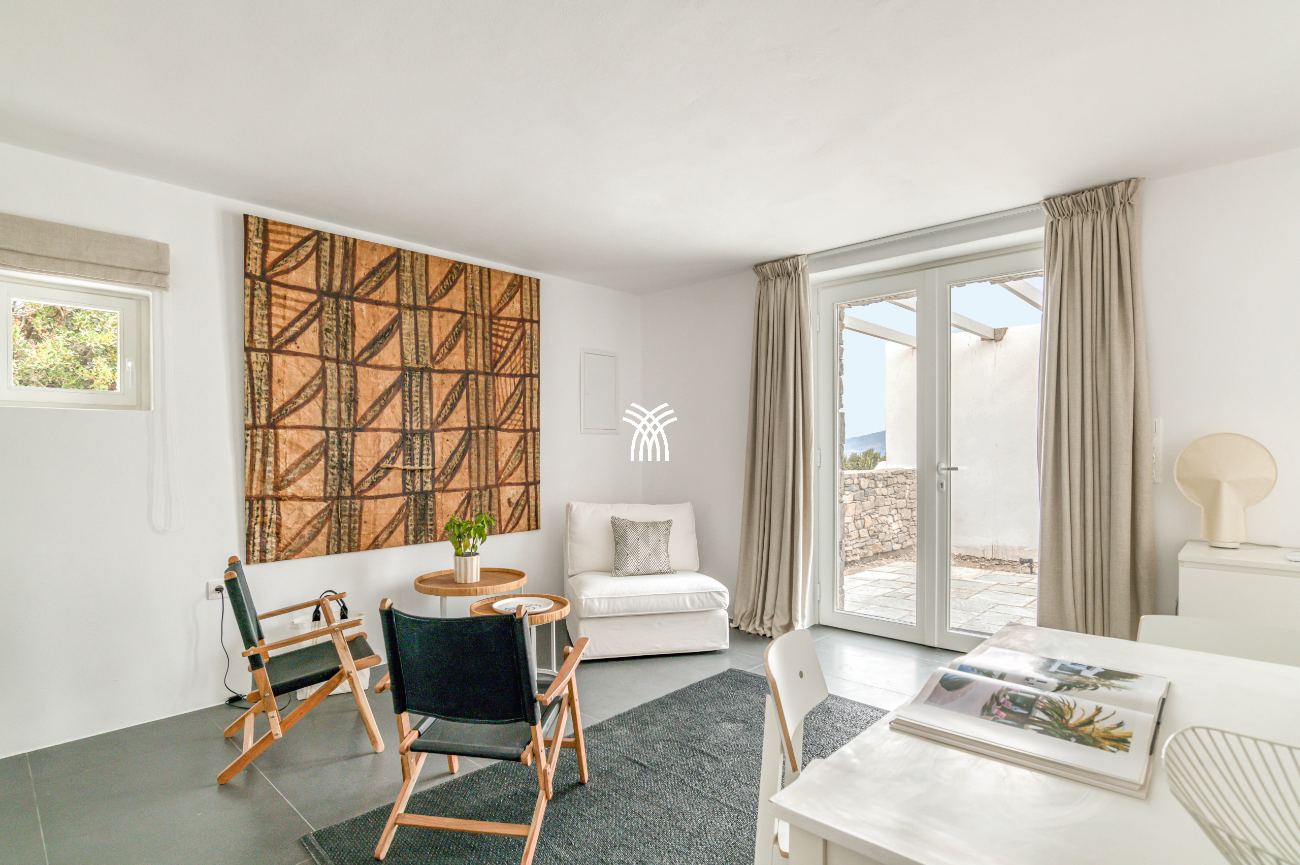 Perched on a hill near Naoussa and the island’s most beautiful beaches, Villa Liveloula unfolds as a rare fusion of contemporary art, architectural elegance, and serene retreat, where nature and the Aegean Sea form a constantly shifting backdrop. Designed to celebrate outdoor living, this exceptional residence invites guests to spend long sunlit hours by the pool, unwind beneath shaded pergolas, and wander across multiple terraces and patios that allow everyone to enjoy privacy and space, while striking sculptures seamlessly merge with the surrounding landscape, giving the property the atmosphere of an open-air gallery. Inside, the villa reveals a bold and refined aesthetic shaped by the owners’ artistic vision, where modern artworks illuminate pristine white walls and vintage furnishings evoke the timeless charm of a museum, while the living and dining areas combine character, books, and curated details to create a warm yet sophisticated ambiance. The four en-suite bedrooms and an independent studio, all air-conditioned and thoughtfully positioned for enhanced comfort and discretion, continue the spirit of an artistic sanctuary, offering tranquility and intimacy for every guest. Large sliding glass doors open effortlessly to the outdoors, allowing the gentle island breeze to flow through the interiors, while the dining area accommodates up to ten guests and the fully equipped kitchen provides everything needed for shared culinary moments and effortless entertaining. Whether relaxing by the pool, discovering nearby beaches, or strolling through town to enjoy local flavors and boutiques before returning for an unforgettable evening under the Parian sky, every moment at Villa Liveloula feels curated for refined island living. Entirely private and reserved exclusively for guests, the villa offers an immersive experience of beauty, comfort, and freedom, supported by attentive assistance throughout the stay and easy access to Paros through car, motorbike, bus, taxi, bicycle, or boat. This exceptional property embodies the essence of a luxury villa rental Greece, offering an inspiring and artful escape in one of the island’s most privileged settings, and stands as a distinctive expression of luxury villa rental Paros for travelers seeking elegance, authenticity, and emotional connection to the Mediterranean landscape.