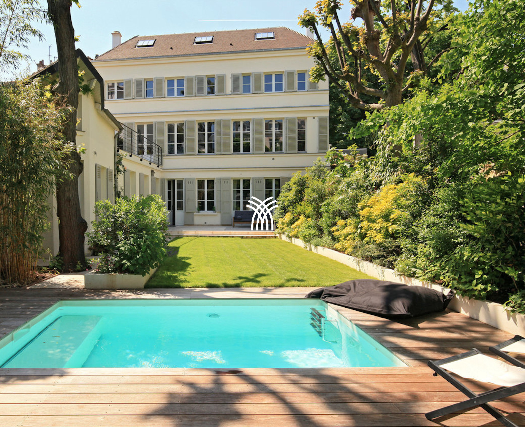Entirely renovated in 2016, Villa Maison Panthéon was designed to prioritise the art of living inside-outside: its vast reception rooms bathed in light and its open kitchen directly open onto the flowered garden. The swimming pool heated to 30°C all year round invites relaxation, as does the small adjoining gym that allows you to stay in shape between two Parisian walks.