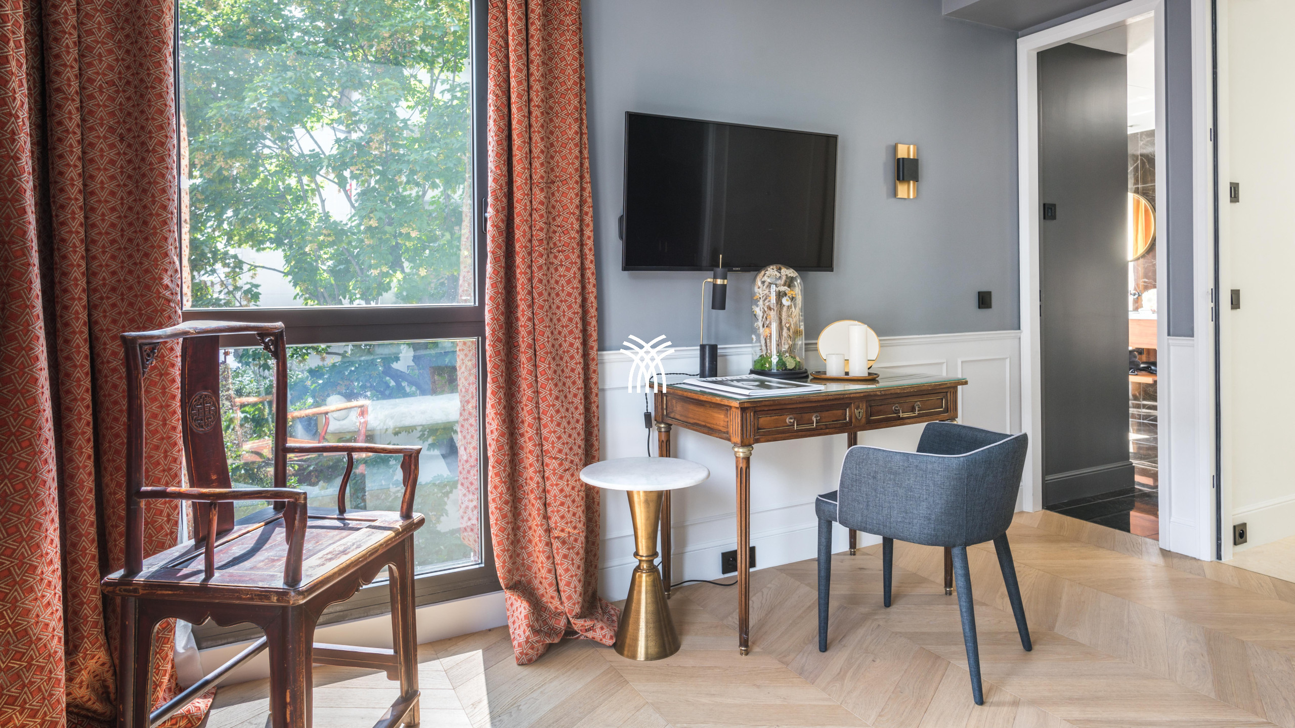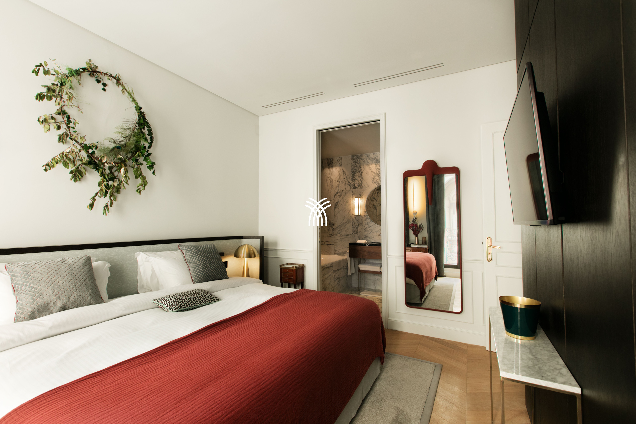 Spread over three floors served by an elevator, the Maison Trocadéro has five spacious rooms, each with its own marble bathroom, exceptional welcome products and a subtle decoration blending custom-made furniture, vintage pieces and contemporary works. Each space is bathed in natural light and reveals a unique universe inviting relaxation.