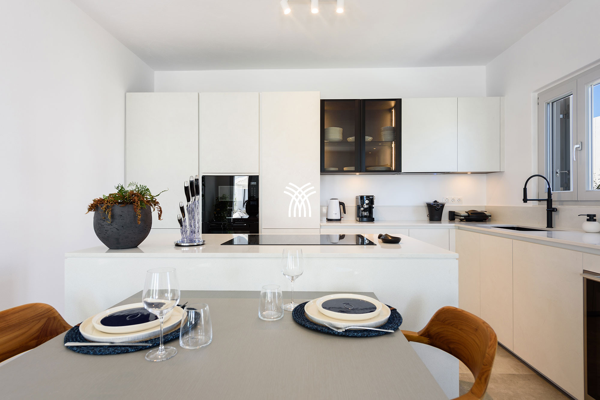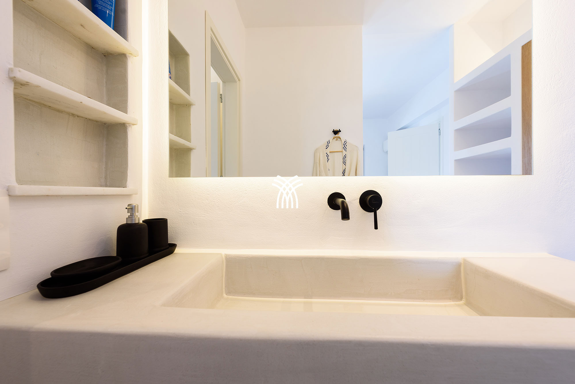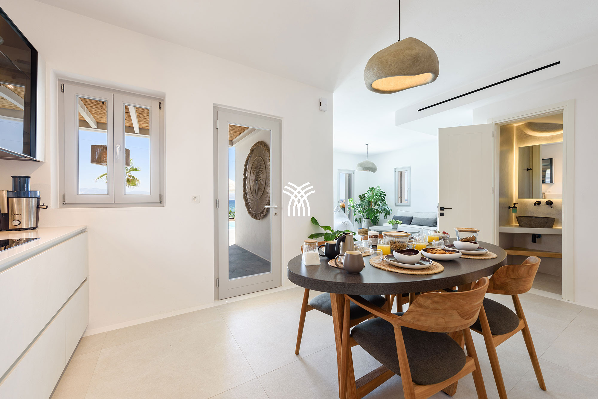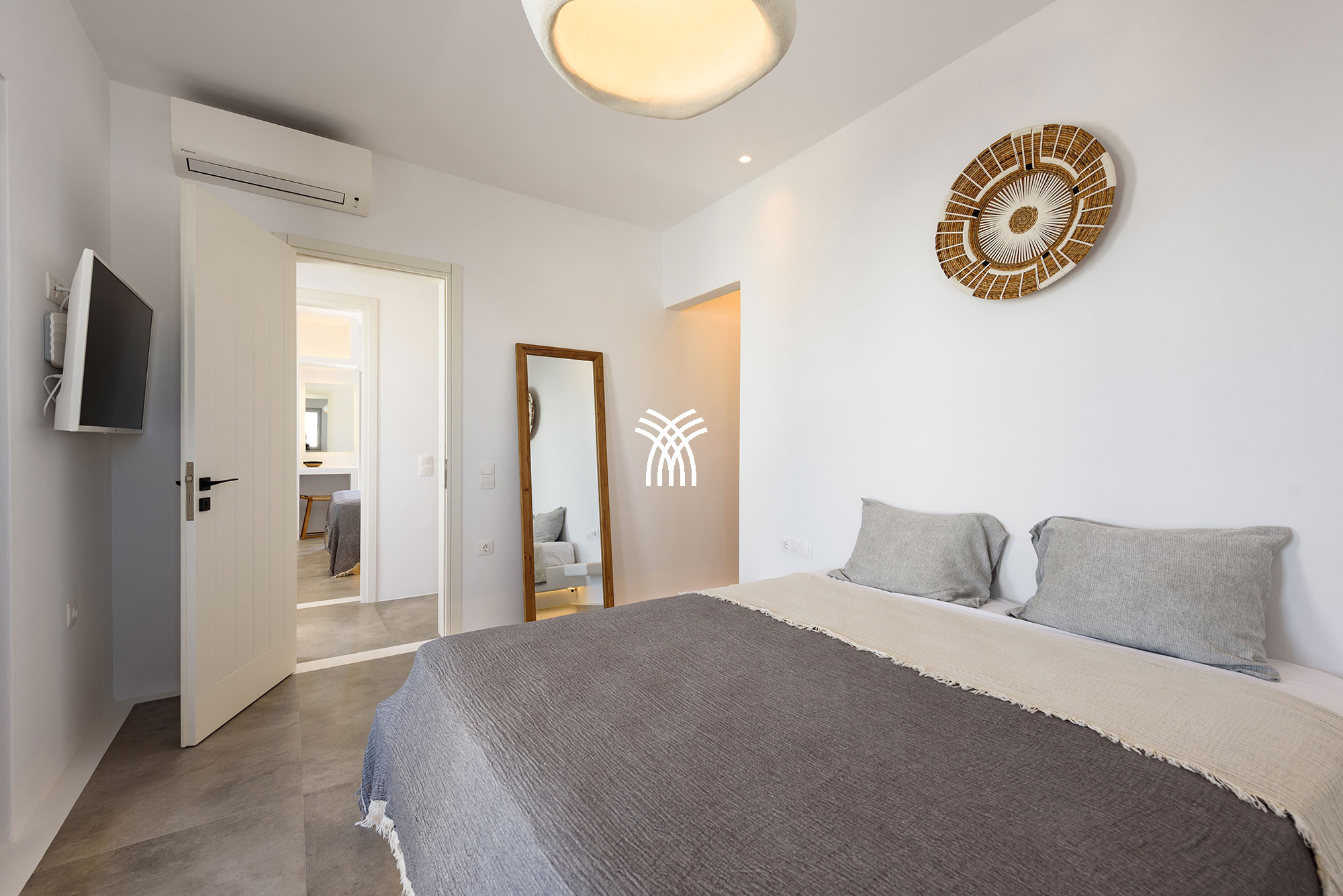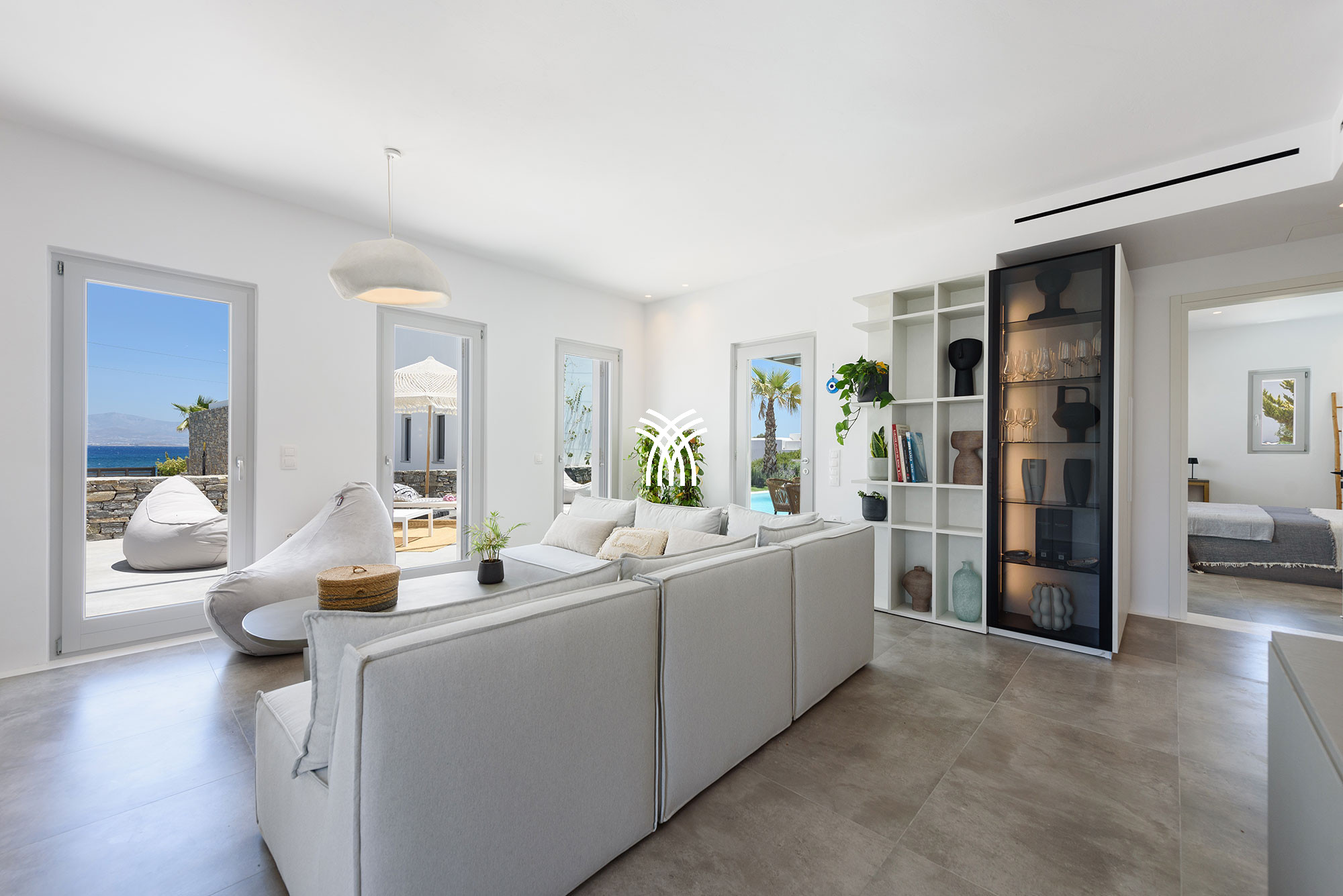 Inside, the villa blends traditional Cycladic charm with contemporary design, where luminous architecture, subtle textures and modern finishes create a warm and elegant ambiance that feels both authentic and sophisticated. Each space is designed to enhance relaxation and wellbeing, inviting guests to slow down and embrace the rhythm of island life in an environment where every detail reflects understated luxury.