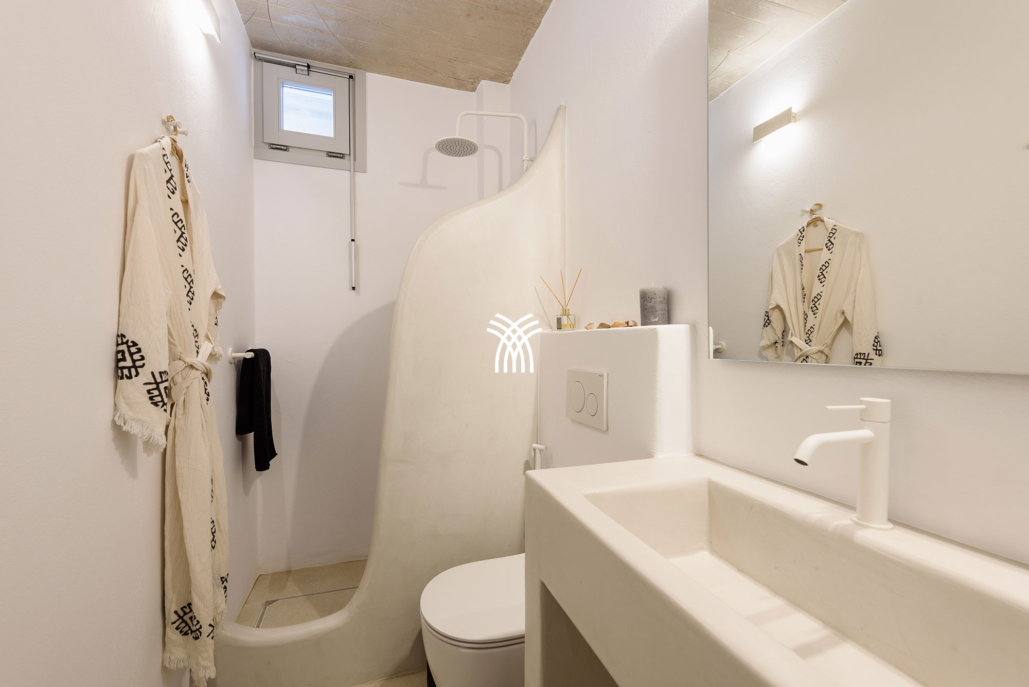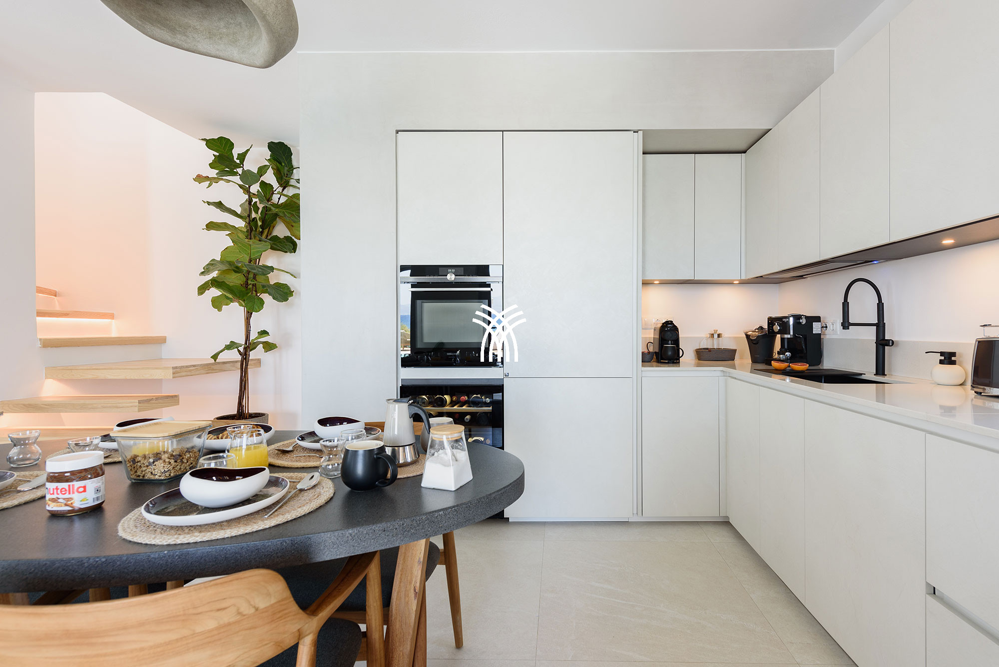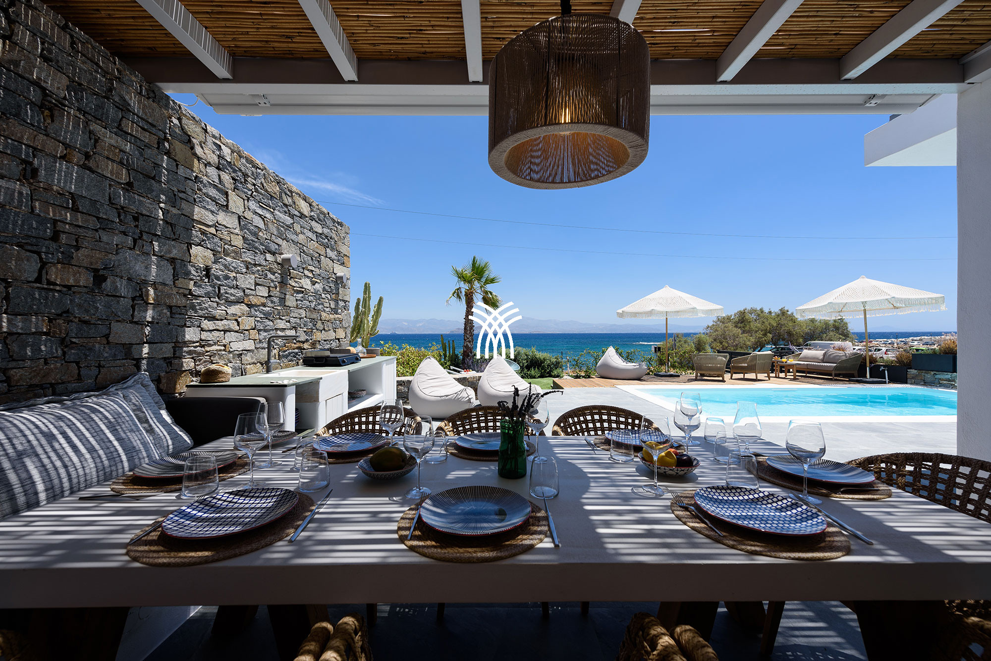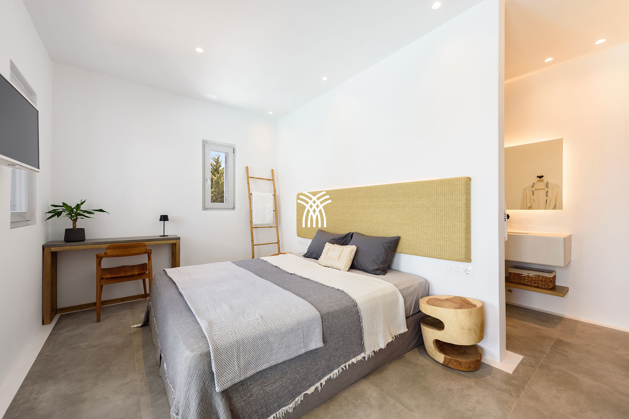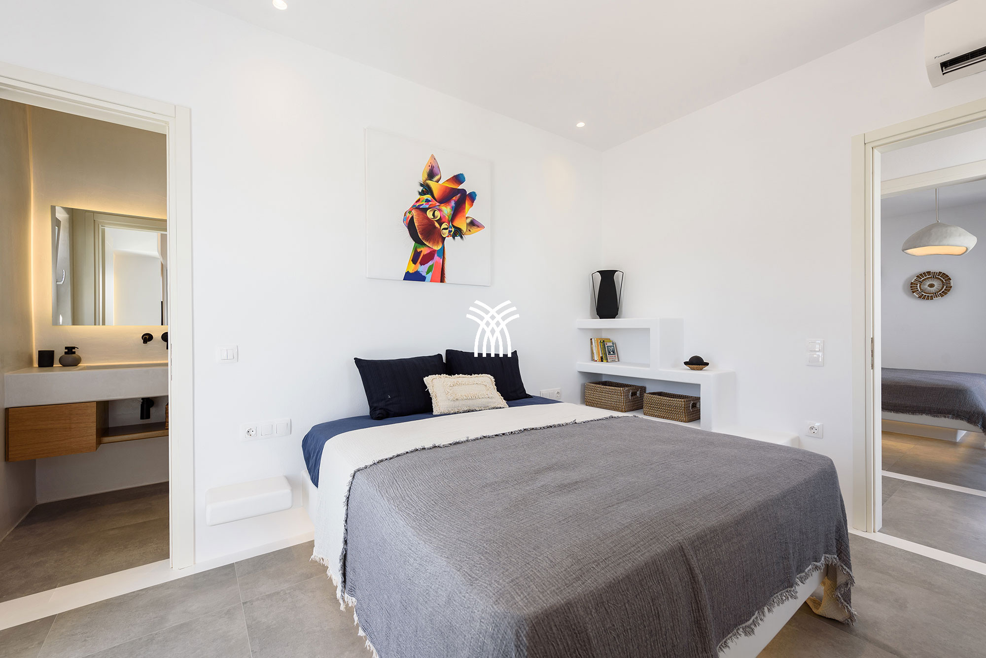 Inside, the villa blends traditional Cycladic charm with contemporary design, where luminous architecture, subtle textures and modern finishes create a warm and elegant ambiance that feels both authentic and sophisticated. Each space is designed to enhance relaxation and wellbeing, inviting guests to slow down and embrace the rhythm of island life in an environment where every detail reflects understated luxury.