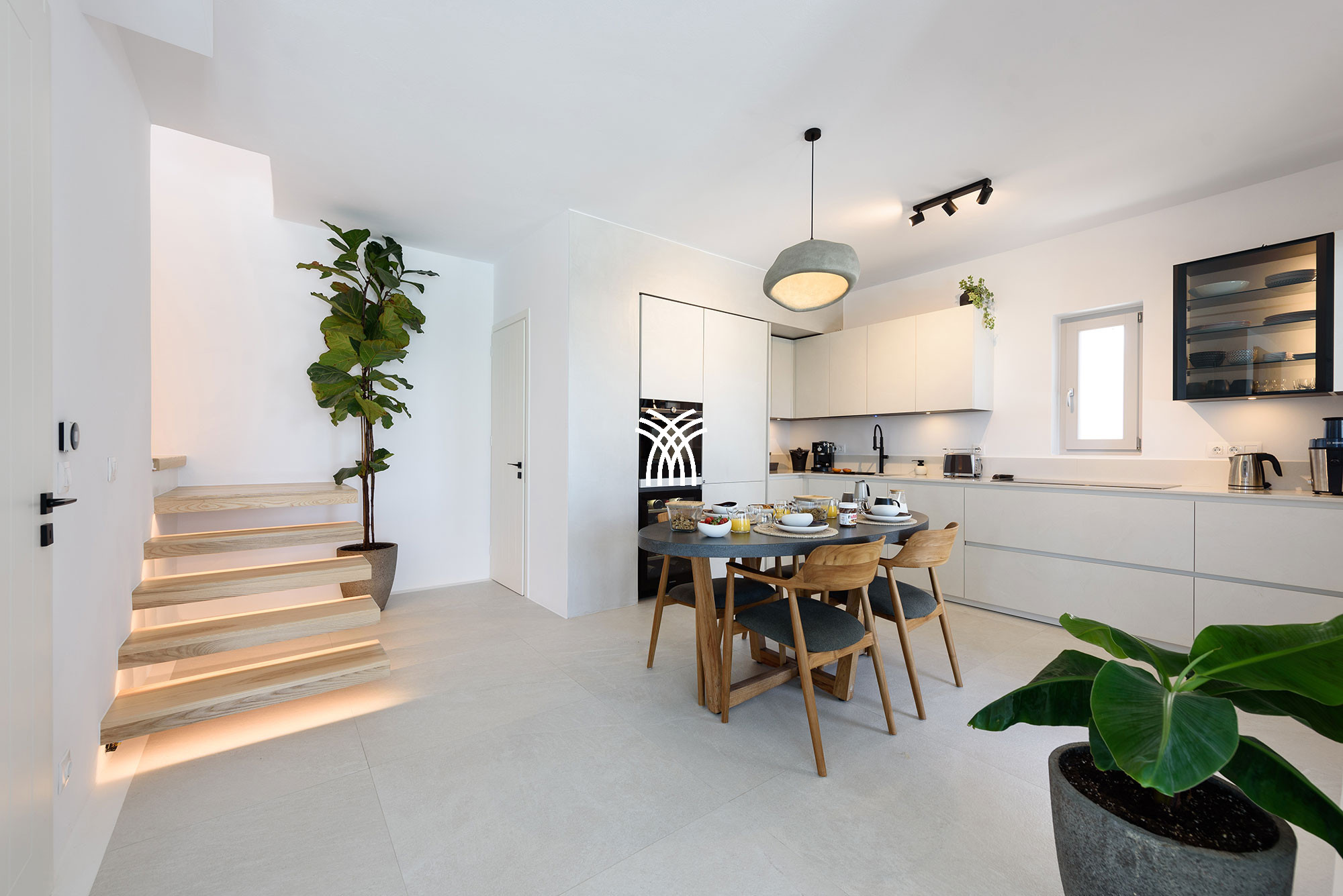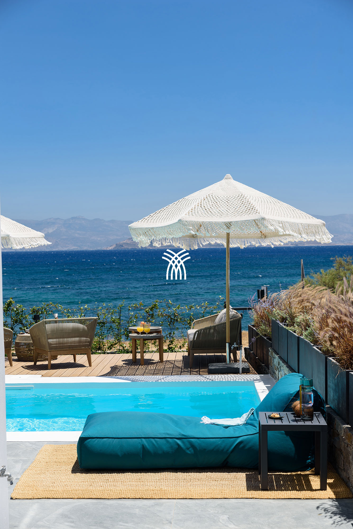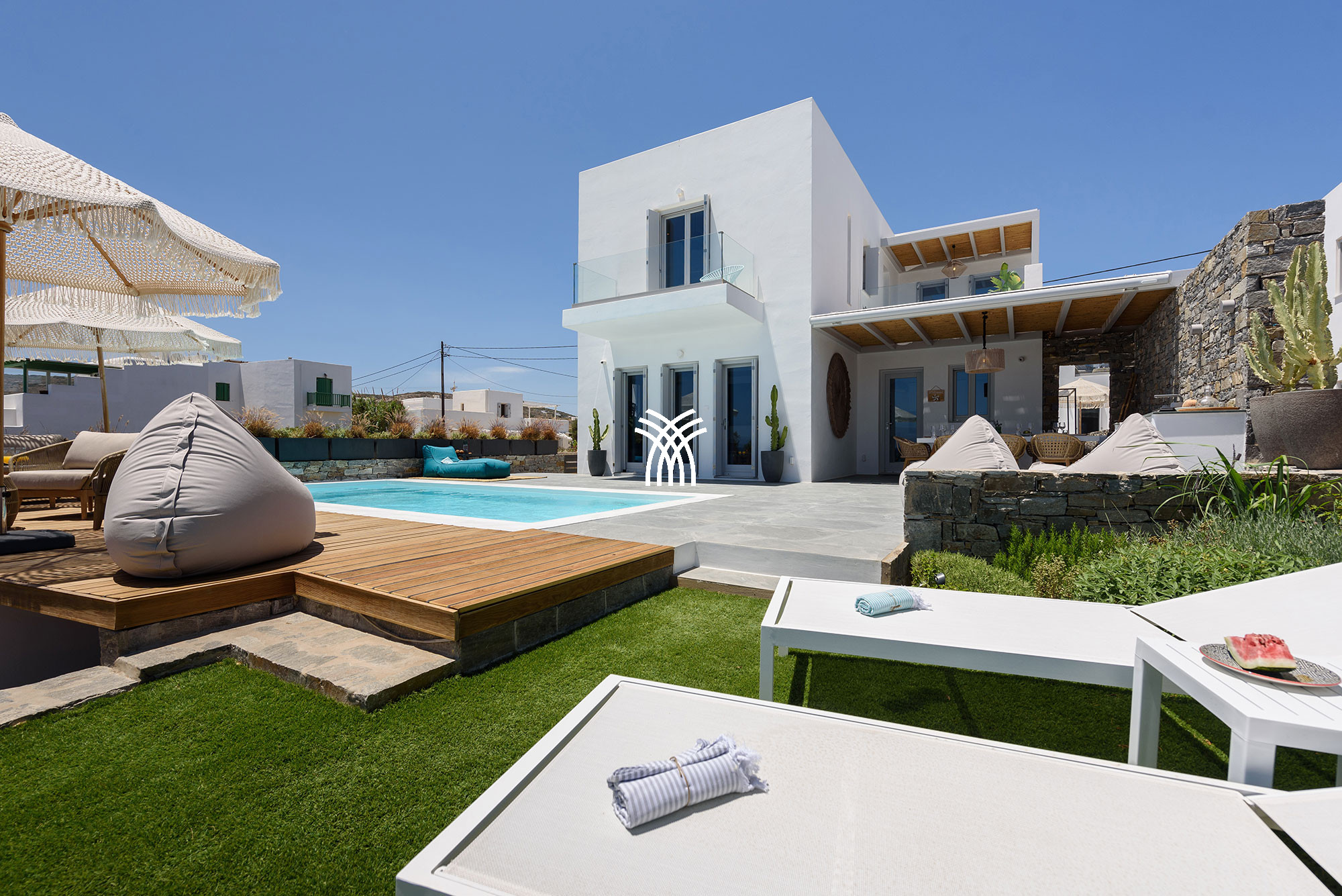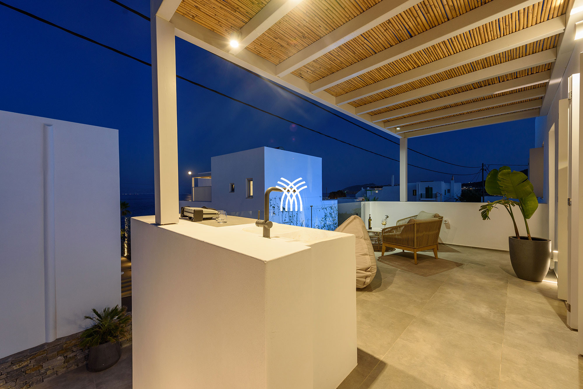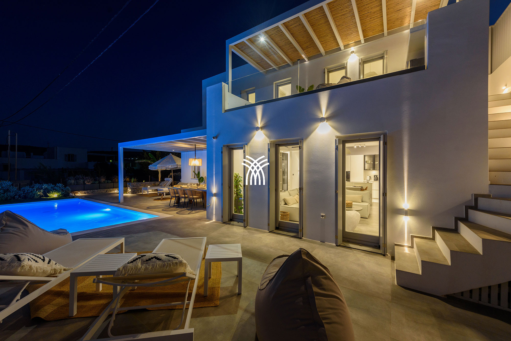 Inside, the villa blends traditional Cycladic charm with contemporary design, where luminous architecture, subtle textures and modern finishes create a warm and elegant ambiance that feels both authentic and sophisticated. Each space is designed to enhance relaxation and wellbeing, inviting guests to slow down and embrace the rhythm of island life in an environment where every detail reflects understated luxury.