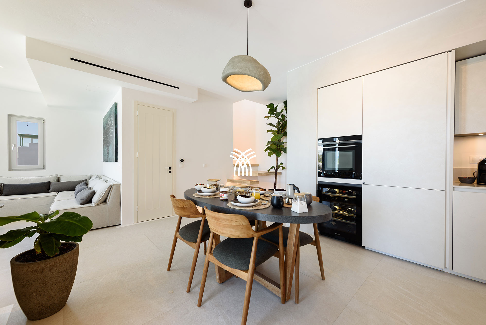 Thoughtfully conceived as three independent living spaces, the villa offers an ideal balance between privacy and togetherness. The main villa features three bedrooms, each with its own en-suite bathroom, while two additional annexes provide one bedroom and one bathroom each, creating an elegant and flexible layout perfectly suited to families or groups of friends seeking both intimacy and shared experiences. Three fully equipped indoor kitchens and an outdoor kitchen in the main area invite convivial moments, from relaxed breakfasts to refined barbecues and alfresco dinners under the Mediterranean sky.