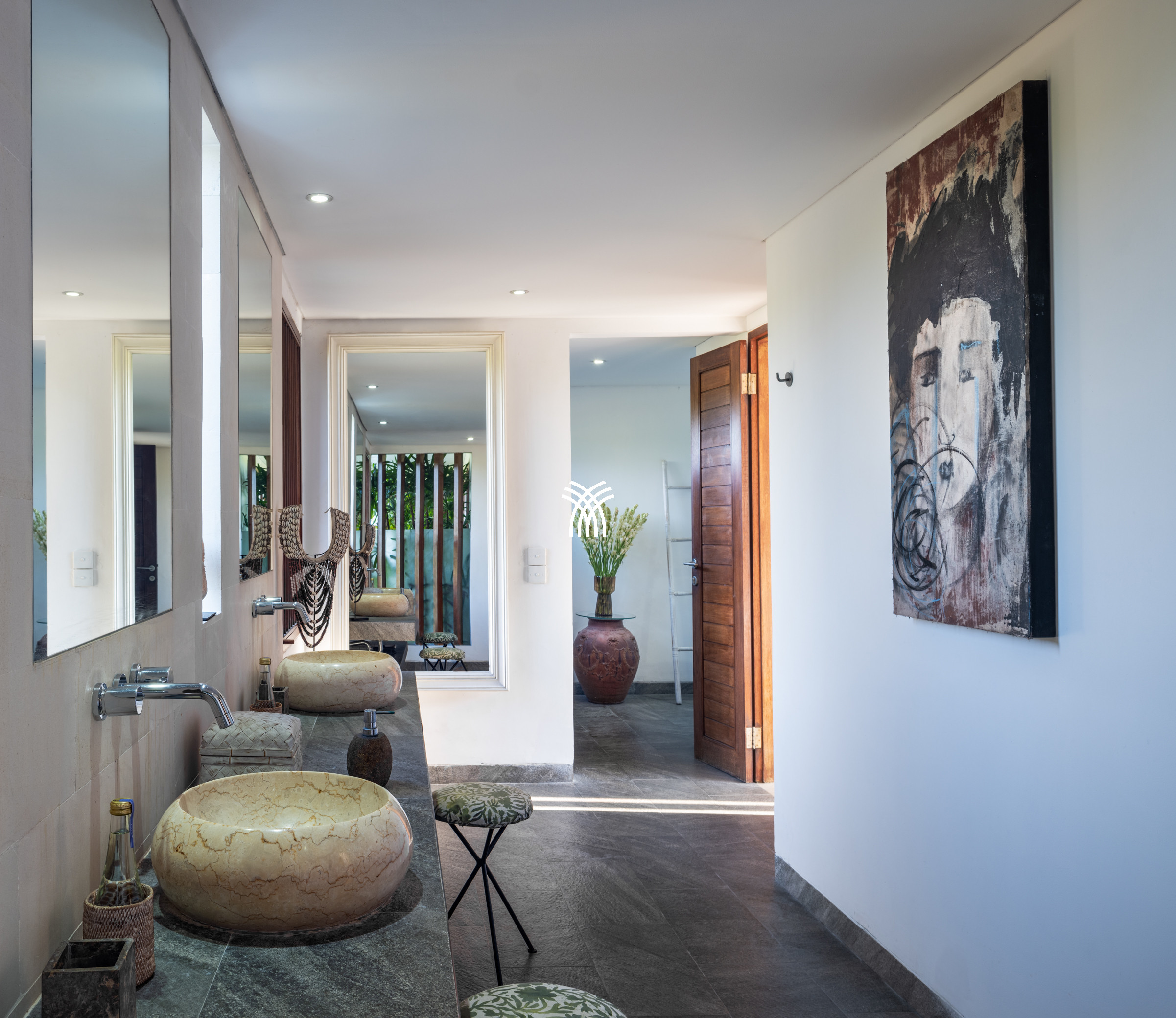 Inside, the villa reflects a sophisticated blend of contemporary comfort and Indonesian heritage, with carefully curated Balinese antiques and art enhancing the atmosphere of understated luxury. Modern entertainment features, including an HD LED television and a state-of-the-art sound system, ensure every stay is as enjoyable as it is indulgent. With six generously appointed bedrooms, including two thoughtfully designed to be wheelchair-friendly, the villa offers both inclusivity and comfort without compromise.