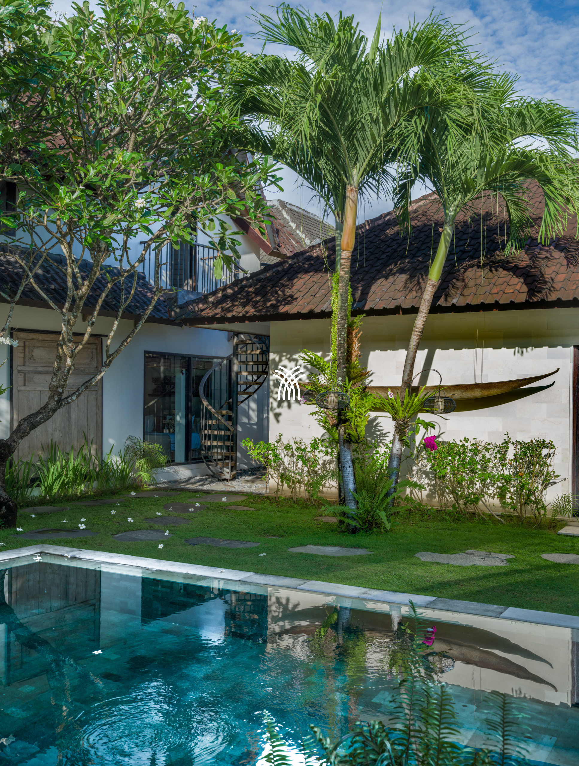 Villa Simprana is a spacious four-bedroom sanctuary nestled in the peaceful Bidadari area of Seminyak, offering an inviting escape for those seeking a luxury villa rental Indonesia and a serene yet well-connected luxury villa rental Bali. Surrounded by a large tropical garden, the villa creates a tranquil atmosphere where a private swimming pool and sunbeds invite long, unhurried days under the island sun.