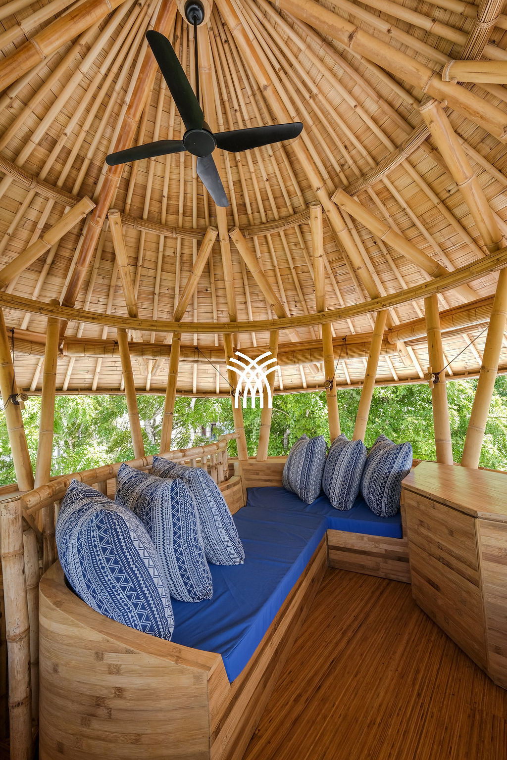 Inspired by Ahura Mazda, the ancient symbol of light and wisdom, the villa was conceived as a space of calm energy and balance, where every detail encourages a sense of peace and renewal. Surrounded by lush tropical gardens shaded by tall teak trees, the estate invites guests to slow down and reconnect with nature while enjoying modern comforts and personalized service. Two private swimming pools shimmer at the heart of the property, complemented by an expansive lawn, a children’s playground, and a striking twenty-meter bamboo watchtower that reveals sweeping panoramic views of the surrounding landscape. With dedicated butler service, full-time staff, and thoughtful amenities such as complimentary daily breakfast, tea, and coffee, every moment at Ahura is curated for effortless luxury.
