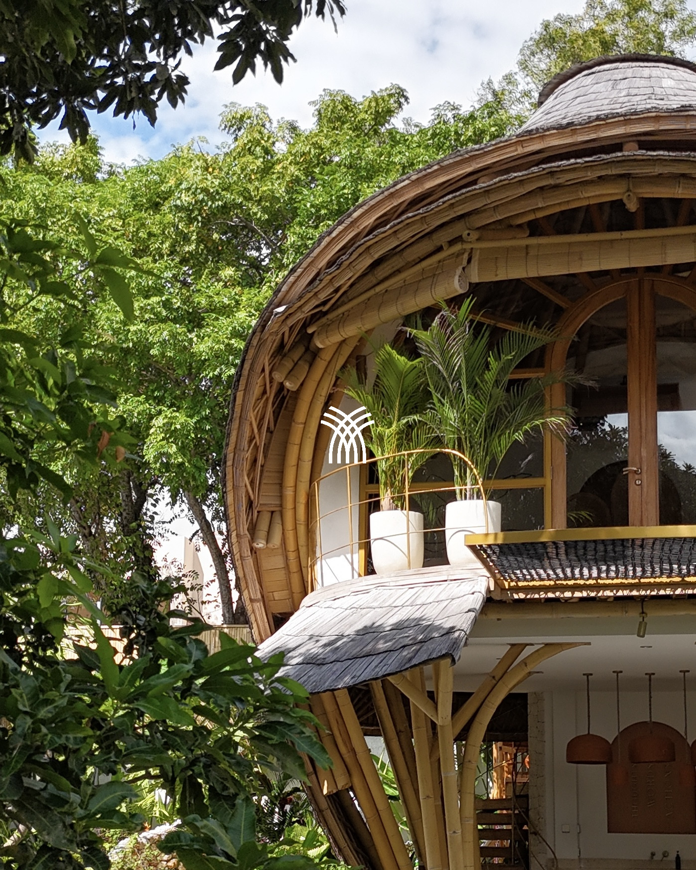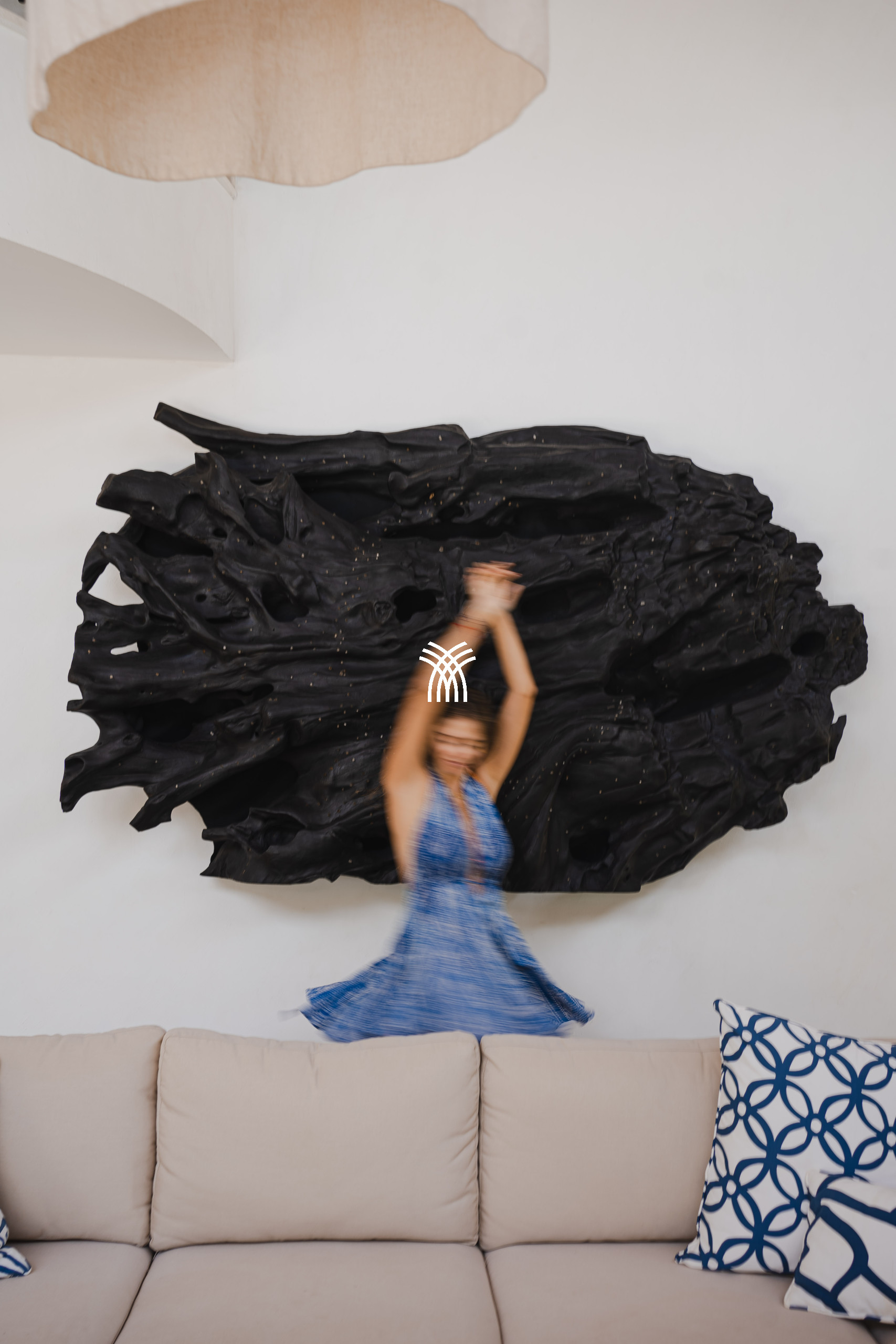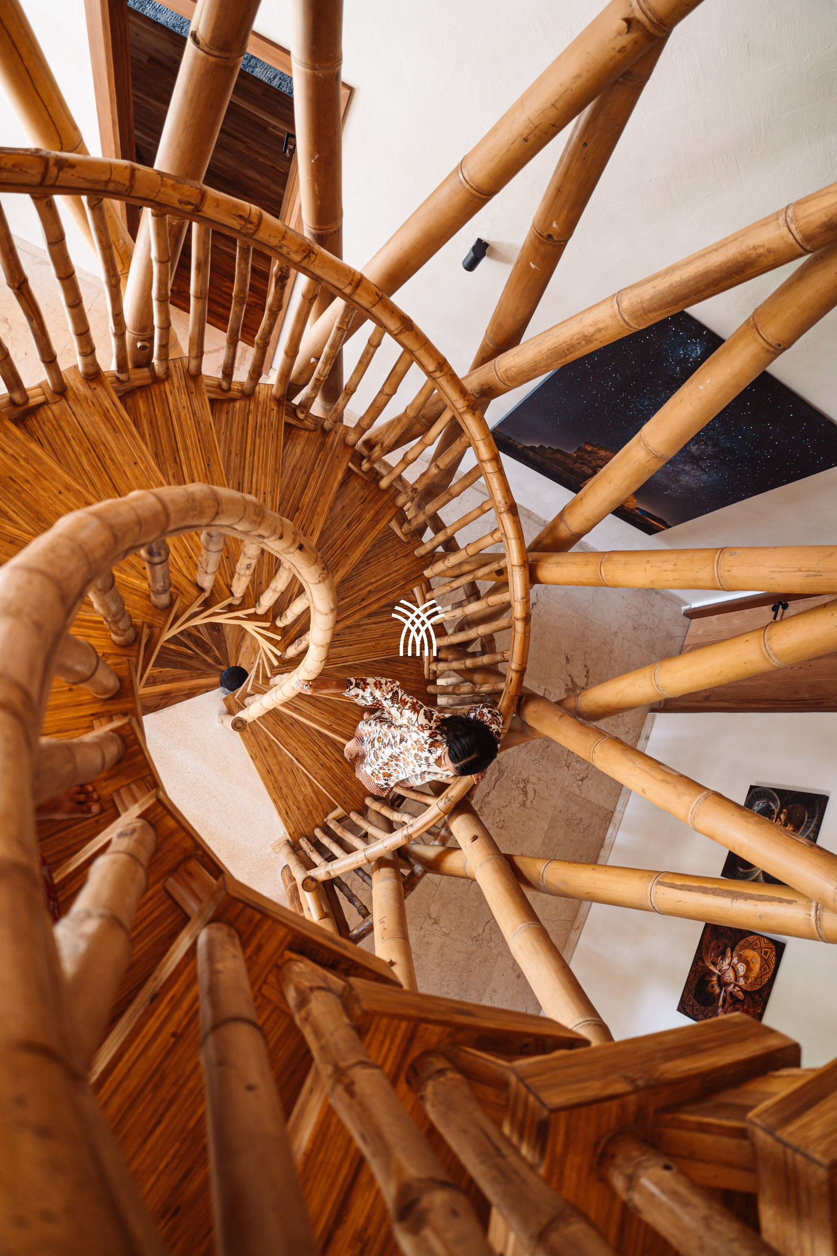 Villa Aviela unfolds across beautifully landscaped grounds featuring a private swimming pool, a spacious lawn, lush vegetable gardens, a children’s playground, and a remarkable 20-meter watchtower that elevates the experience of ocean and garden views. The architecture blends traditional Balinese bamboo craftsmanship with contemporary masonry, creating a harmonious balance between authenticity and modern comfort. Inside, Danish-inspired furniture, Persian tiles and colors, Balinese teak doors, and the artistic centerpiece known as The Womb of Lyra, adorned with ancient crystals, create an atmosphere of quiet sophistication and spiritual depth.