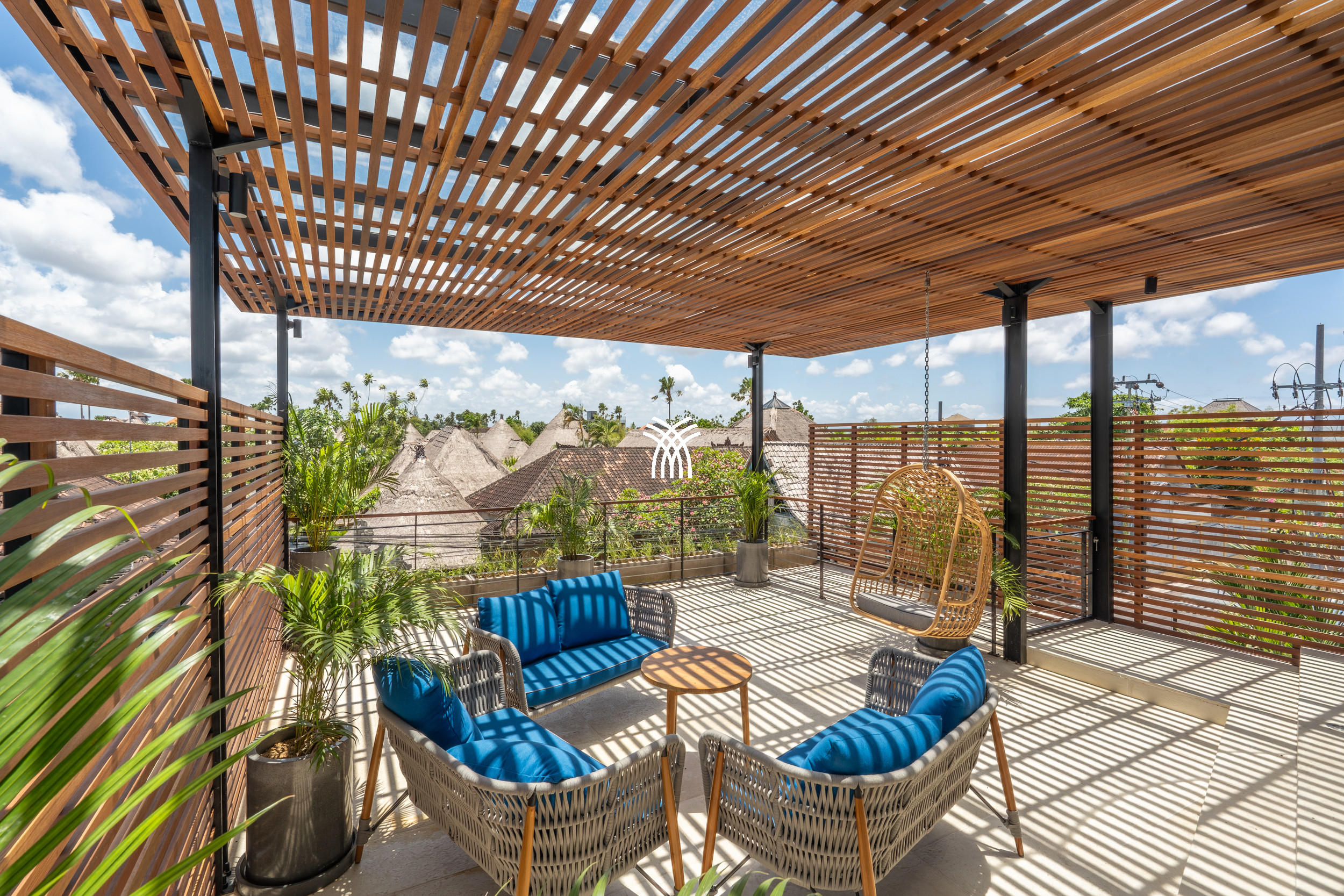 Private swimming pools and lush green gardens define each residence, offering tranquil spaces to relax beneath the tropical sun. Several bedrooms open directly onto generous terraces, enhancing the sense of openness and allowing natural light to flow effortlessly throughout the villas. Whether enjoying a quiet morning or gathering with friends and family, each space is designed to feel both intimate and refined.