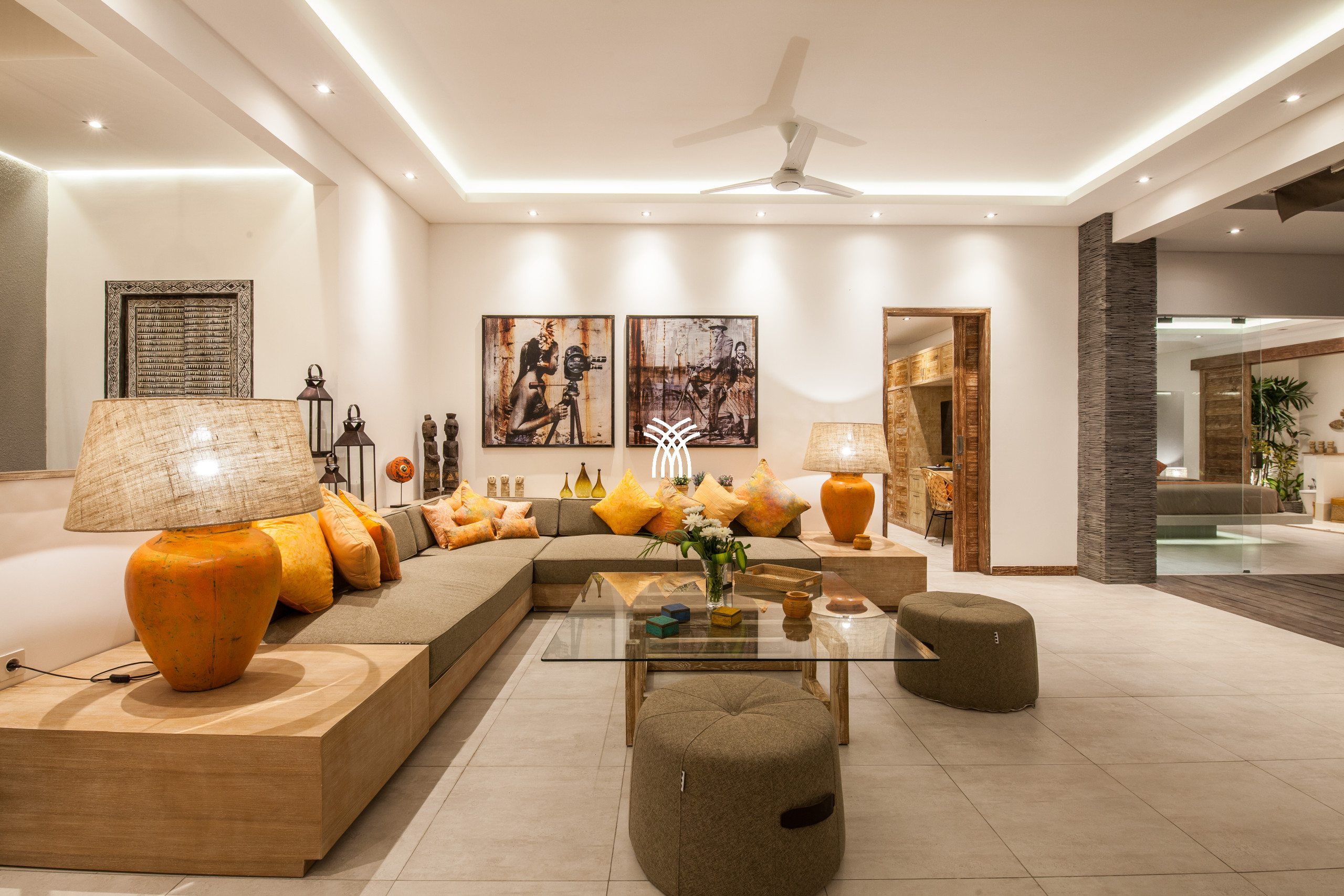 The open living space is thoughtfully designed to flow seamlessly into a lush garden and a large private swimming pool, creating a harmonious indoor-outdoor environment ideal for relaxation and shared moments. Sunlit days unfold naturally in this tranquil setting, where the gentle rhythm of tropical living enhances every experience.