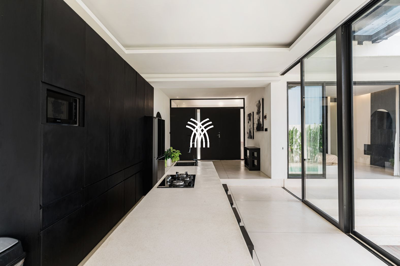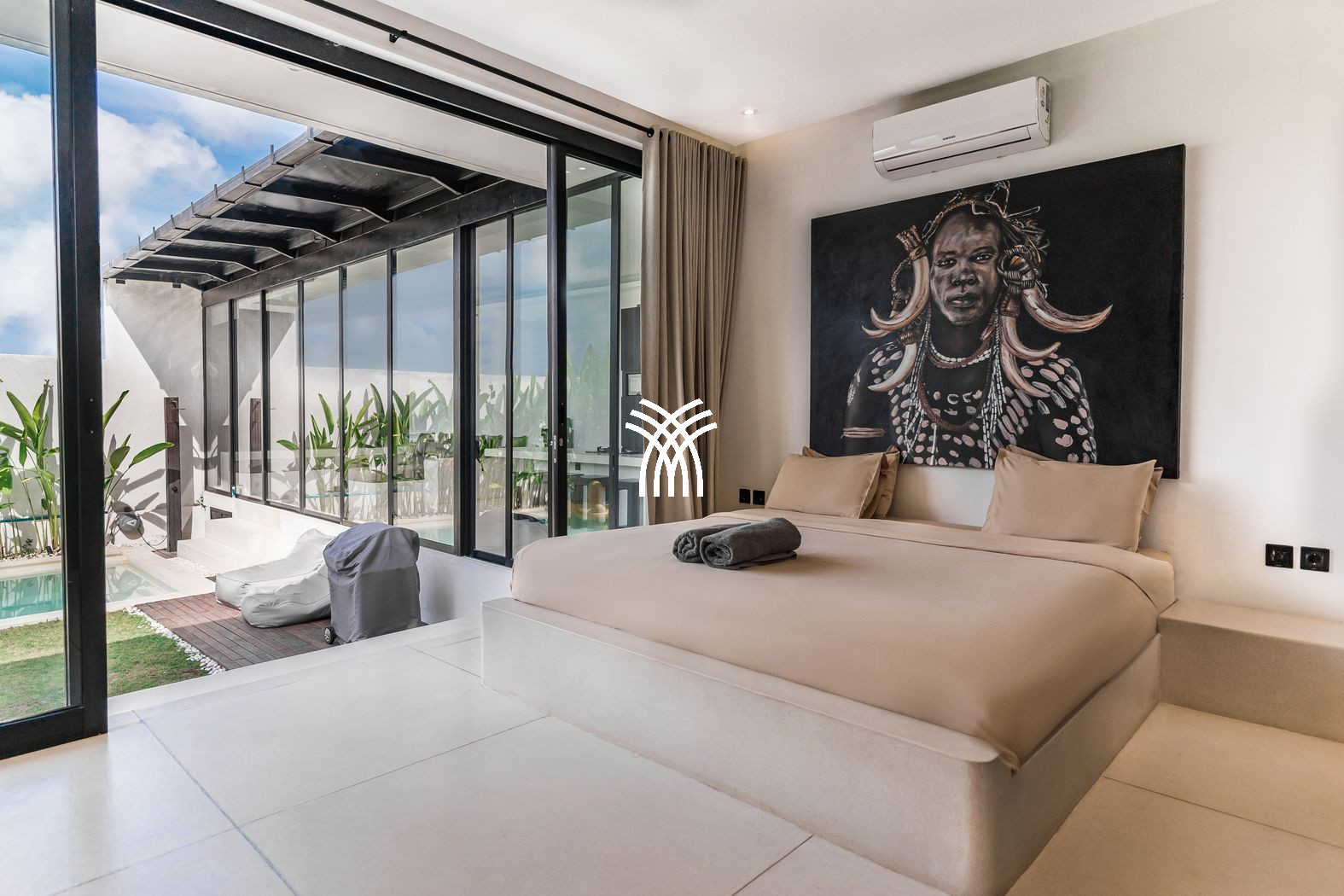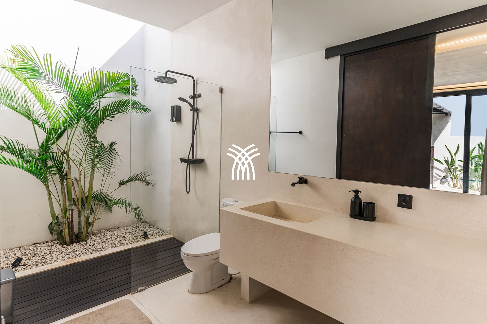 Spanning 150 square metres of refined living space, the villa features two stylish bedrooms with king-size beds, plush linens, and air-conditioning, complemented by elegant bathrooms with modern fittings designed for comfort and relaxation. Expansive glass walls flood the open-plan living areas with natural light, seamlessly connecting the interiors with the outdoors, while a fully equipped modern kitchen and dining area create an inviting setting for shared moments with family or friends. At the heart of the property, a private pool framed by lush greenery invites leisurely afternoons under the tropical sun, offering a refreshing escape from Bali’s warm climate and a sense of intimate seclusion.