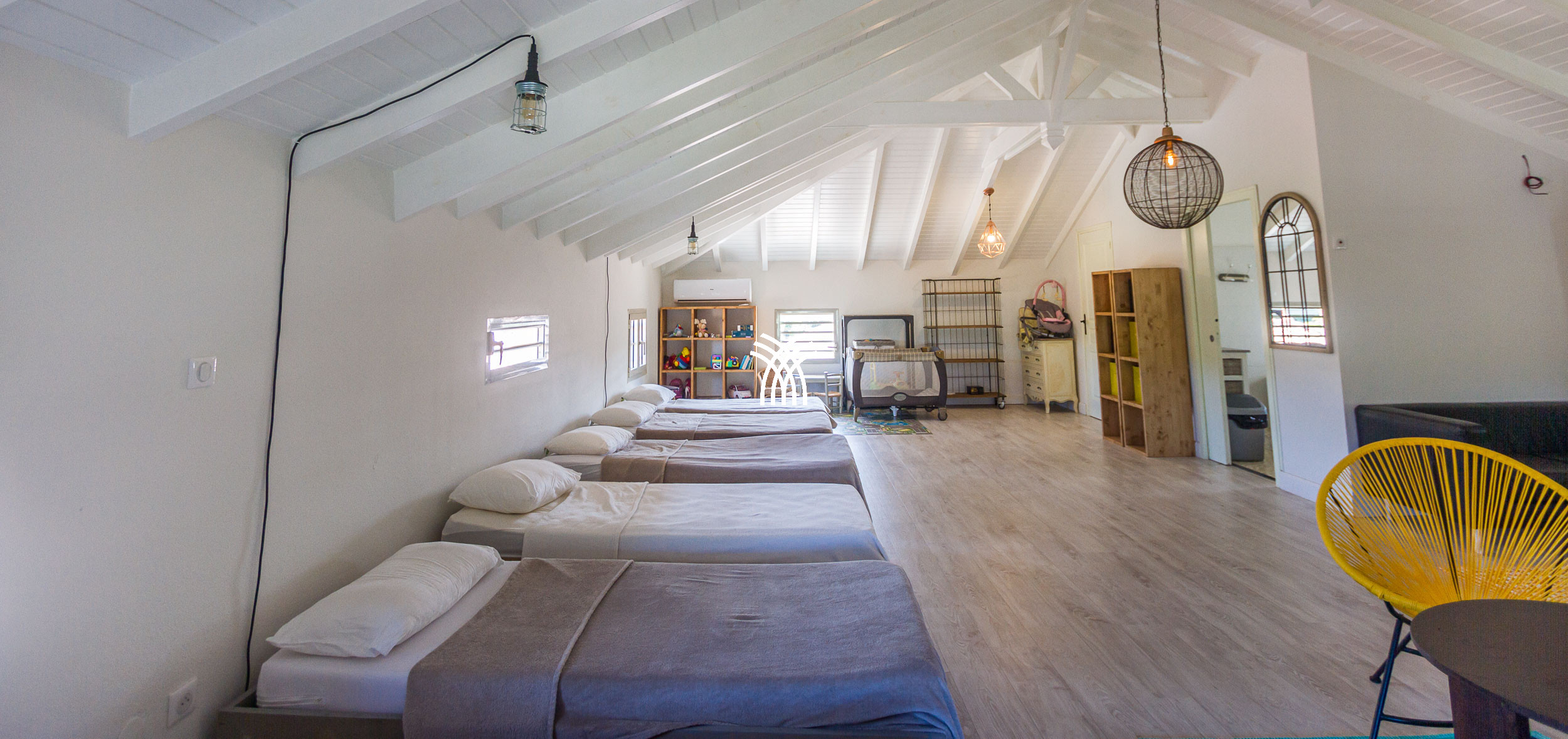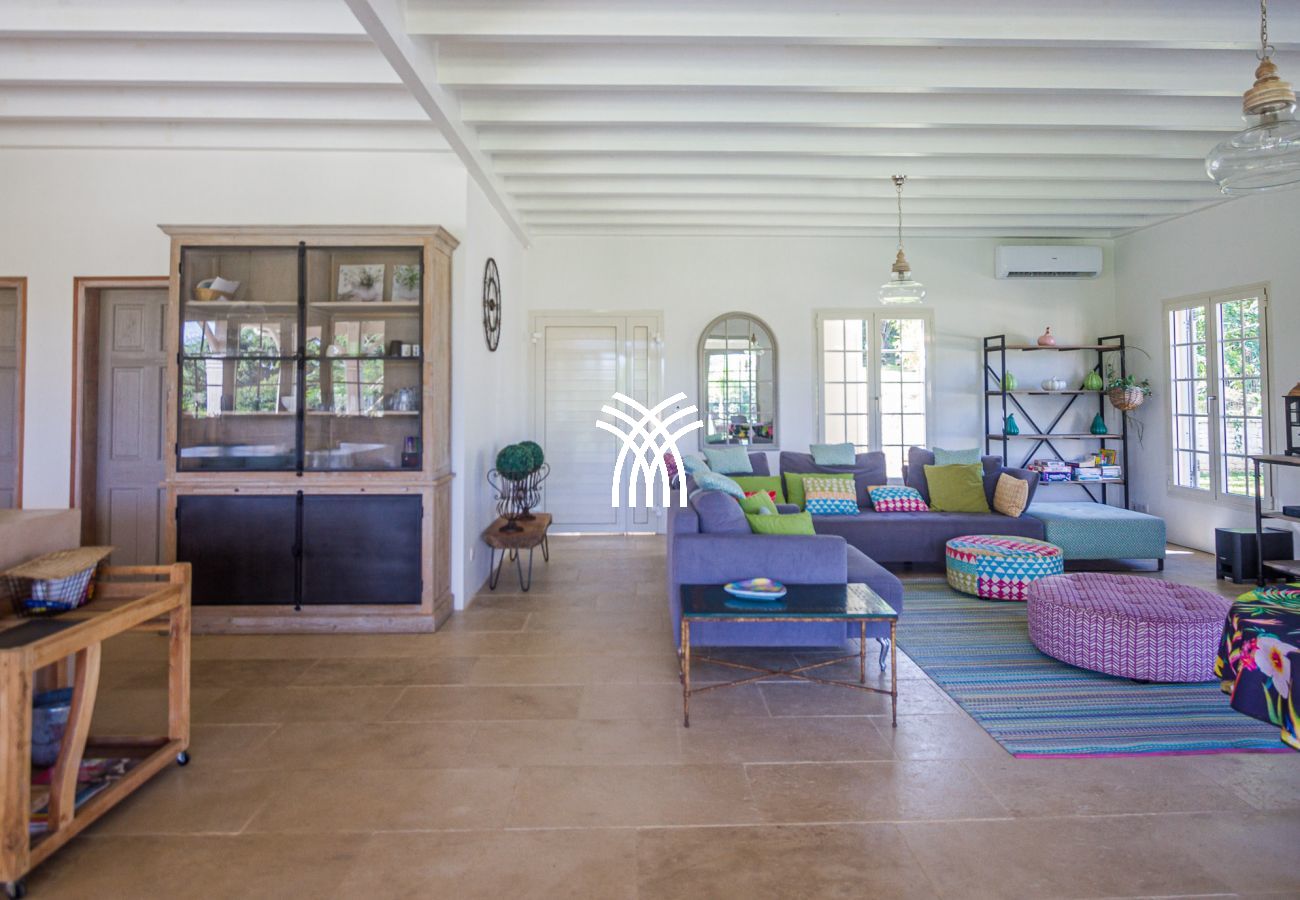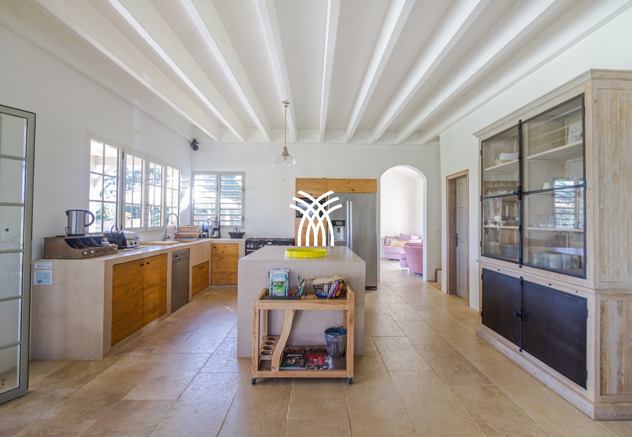 The villa offers a spacious interior and carefully crafted decoration, combining modern elegance and high-end comfort. The four air-conditioned bedrooms guarantee optimal rest, while a large air-conditioned dormitory with 7 single beds and a TV room is ideal for children or teenagers. The four modern bathrooms and two independent toilets add a touch of practicality, even for the largest groups.