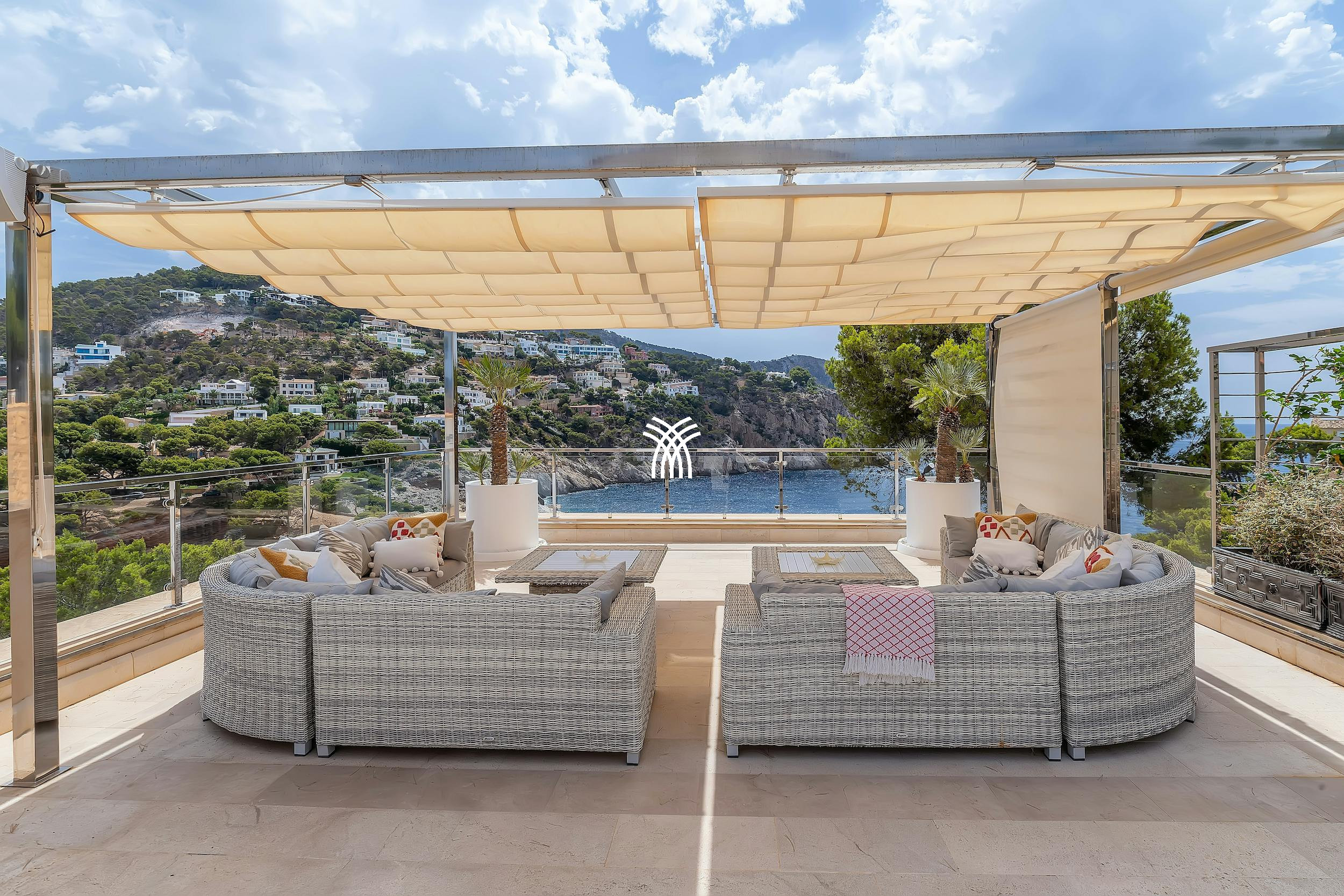 From its elevated position, guests can enjoy uninterrupted sea views, year-round sunsets, and even distant glimpses of Ibiza on clear days. Surrounded by nature at the end of a quiet cul-de-sac, the villa offers complete seclusion while remaining just minutes from beaches, golf courses, and the vibrant centre of Port d’Andratx.