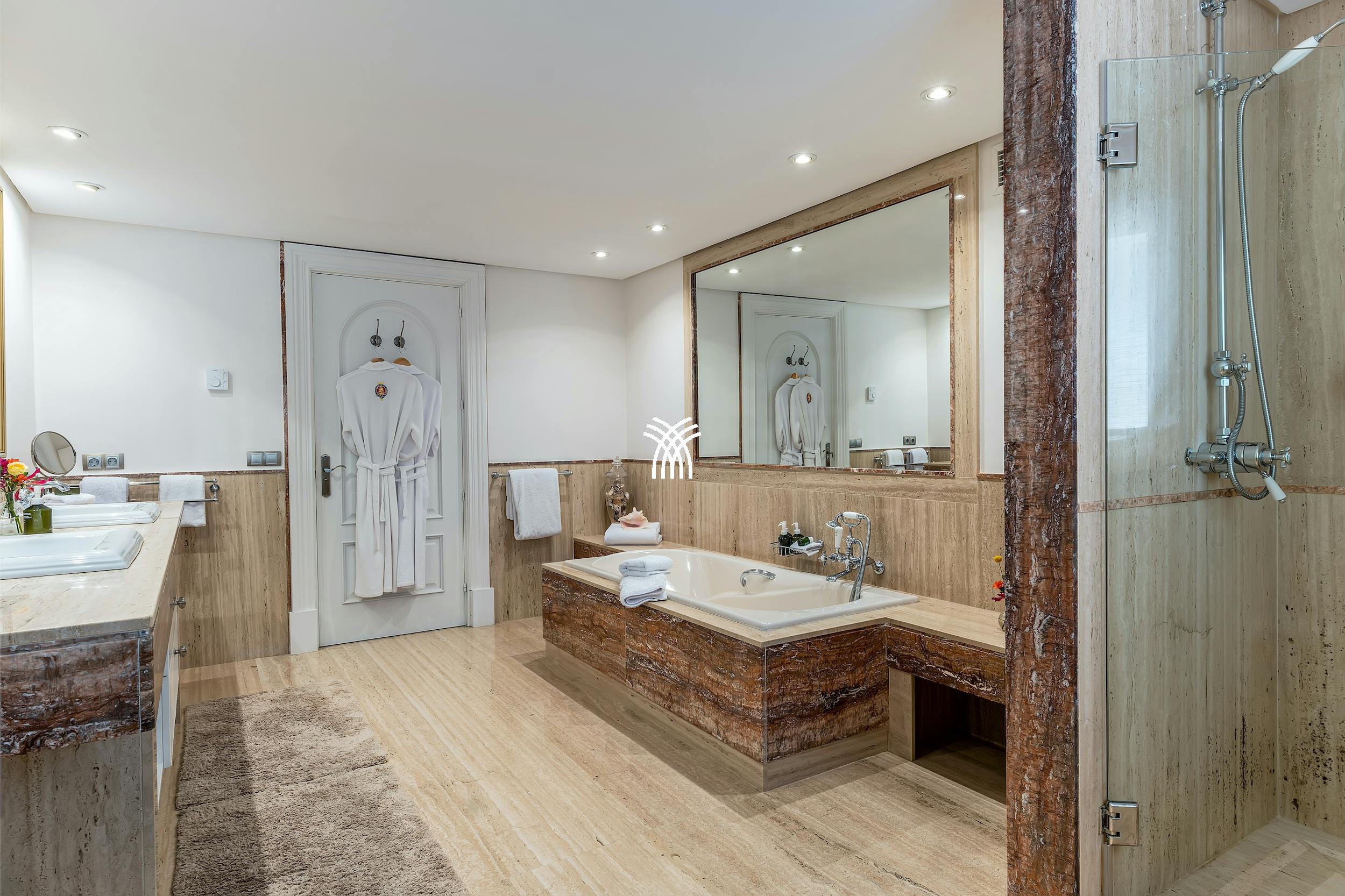 The outdoor space is a highlight, with a heated infinity pool and jacuzzi featuring state-of-the-art Ospa technology, mood lighting, and automatic covers. Expansive terraces blend effortlessly with indoor living areas, creating the perfect setting for entertaining, relaxing, or enjoying al fresco dining at the fully equipped outdoor kitchen and BBQ area.