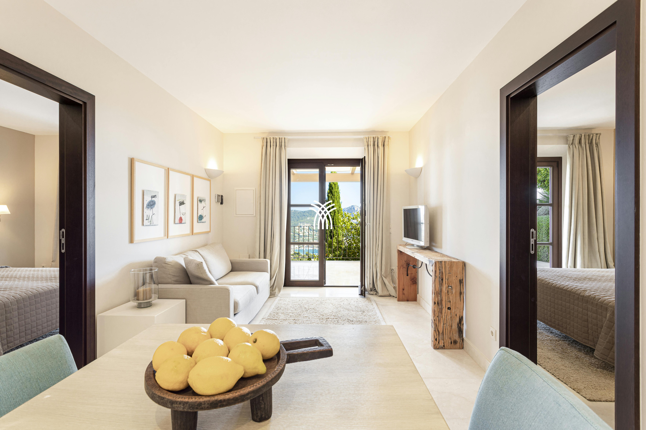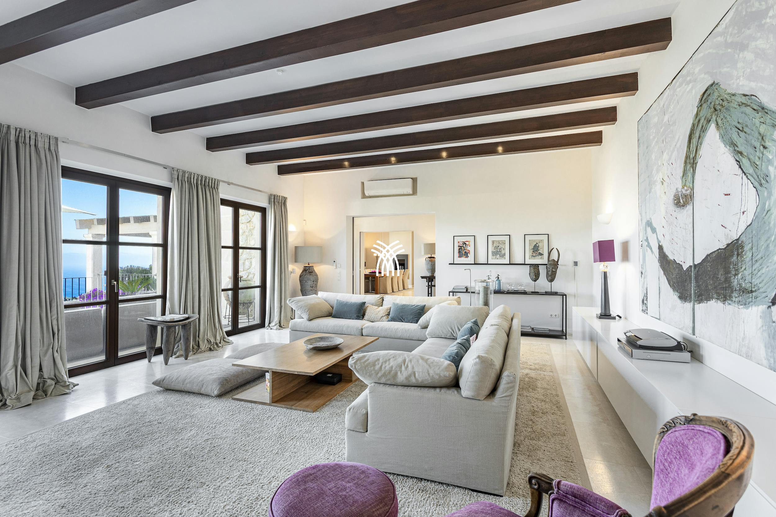 From its elevated position, guests can enjoy uninterrupted sea views, year-round sunsets, and even distant glimpses of Ibiza on clear days. Surrounded by nature at the end of a quiet cul-de-sac, the villa offers complete seclusion while remaining just minutes from beaches, golf courses, and the vibrant centre of Port d’Andratx.