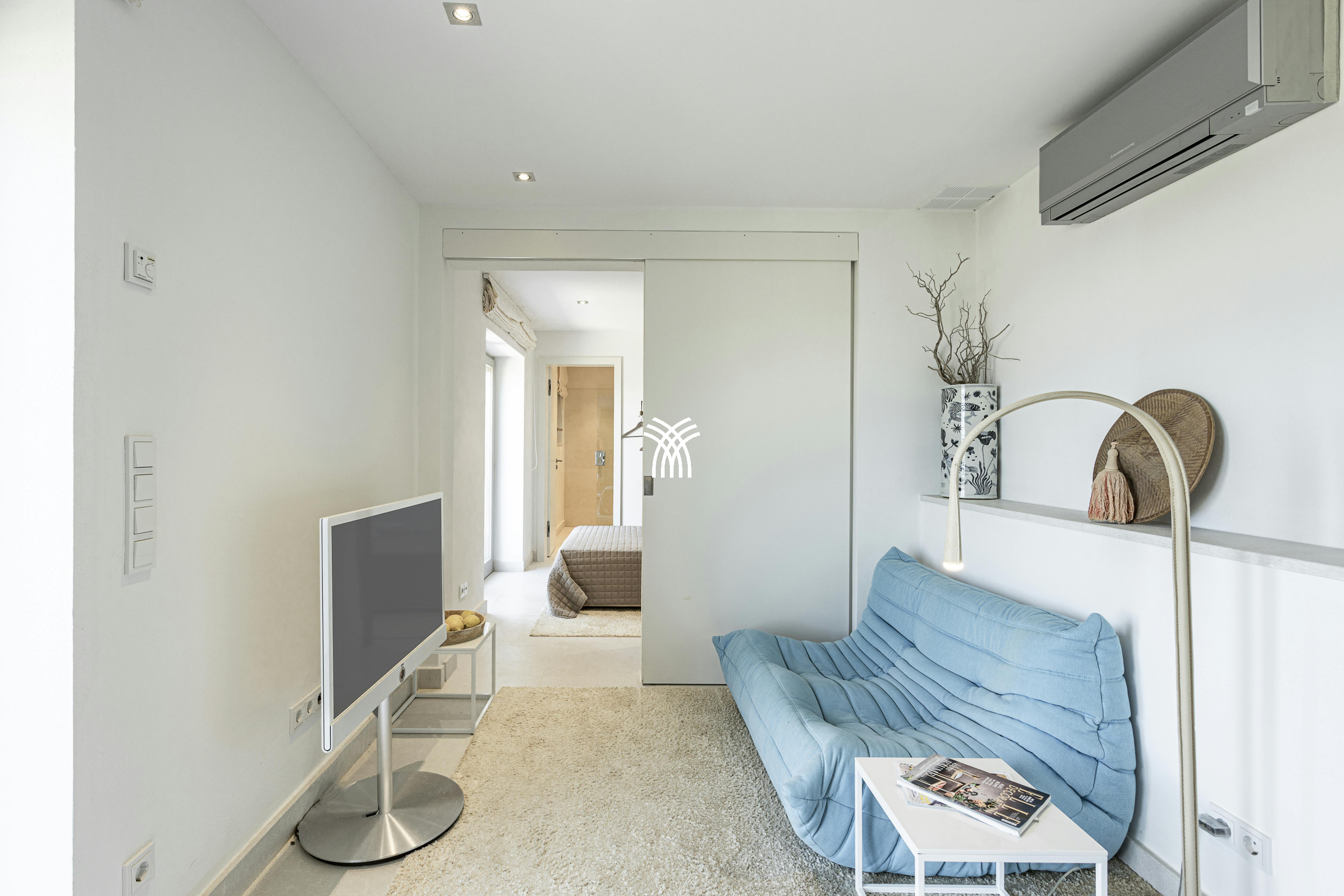 This exclusive area of Ibiza remains untouched by mass tourism, preserving a sense of authenticity and charm. A short distance from the villa, you’ll discover exceptional Mallorcan restaurants, upscale fashion boutiques, and artisan shops. Golf enthusiasts will appreciate the proximity to the renowned Camp de Mar golf course, while the nearby beach at St Elm—one of the most stunning on the island—offers a slice of coastal paradise.
