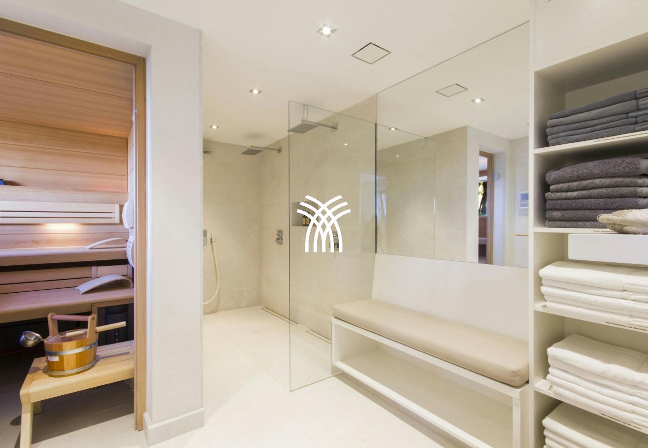 The outdoor space is a highlight, with a heated infinity pool and jacuzzi featuring state-of-the-art Ospa technology, mood lighting, and automatic covers. Expansive terraces blend effortlessly with indoor living areas, creating the perfect setting for entertaining, relaxing, or enjoying al fresco dining at the fully equipped outdoor kitchen and BBQ area.