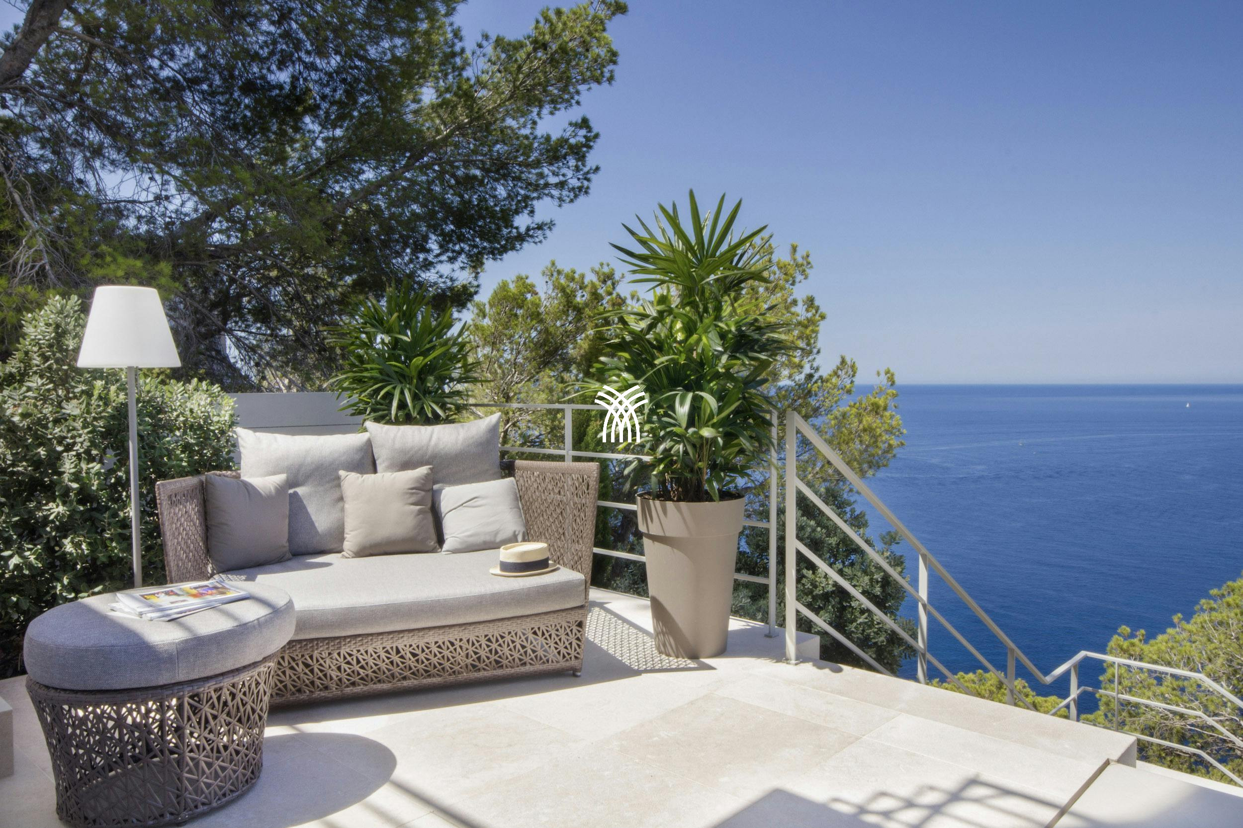 Set along Ibiza’s stunning southwest coastline between the enchanting Port Andratx and the crystal-clear waters of Cala Llamp, Casa En El Mar provides direct private access to the sea and accommodates up to 12 guests in absolute comfort. Surrounded by lush greenery in a prestigious neighborhood, the location offers tranquility just minutes from the vibrant energy of the marina’s fine dining, chic boutiques, and lively atmosphere.