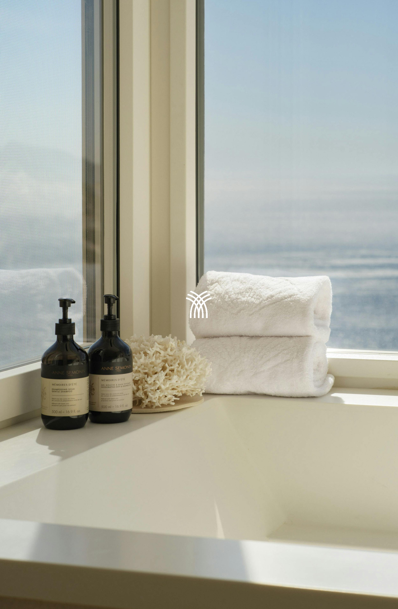 Inside, the villa is fully air-conditioned and masterfully designed with a soft maritime theme. The plush interiors include a relaxing lounge, two gourmet kitchens—including a dedicated chef’s kitchen—and a cozy Tower Den offering panoramic 360-degree views. All six luxurious suites feature high-end linens, indulgent robes, and elegant en-suite bathrooms, with select rooms opening onto private terraces overlooking the bay.