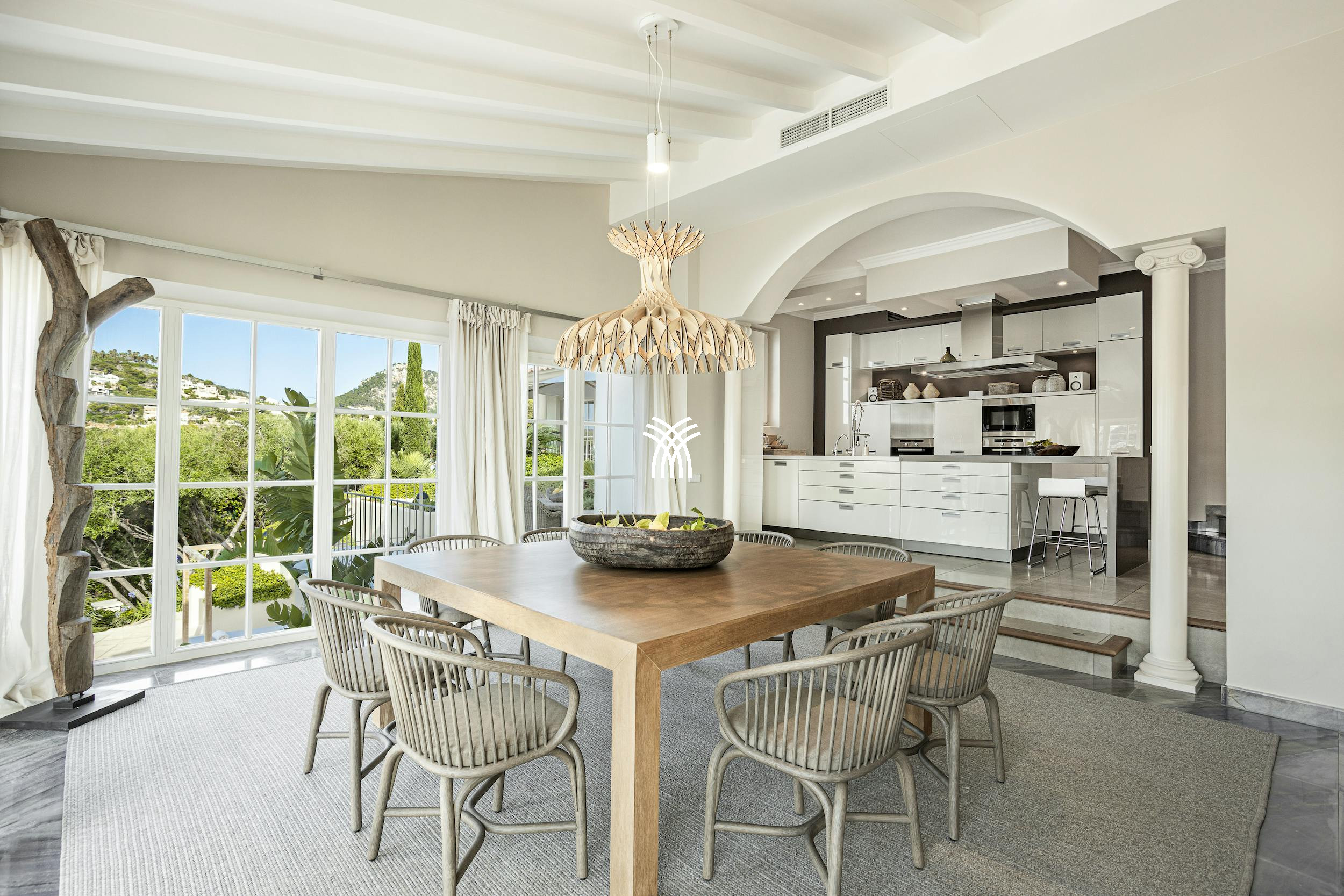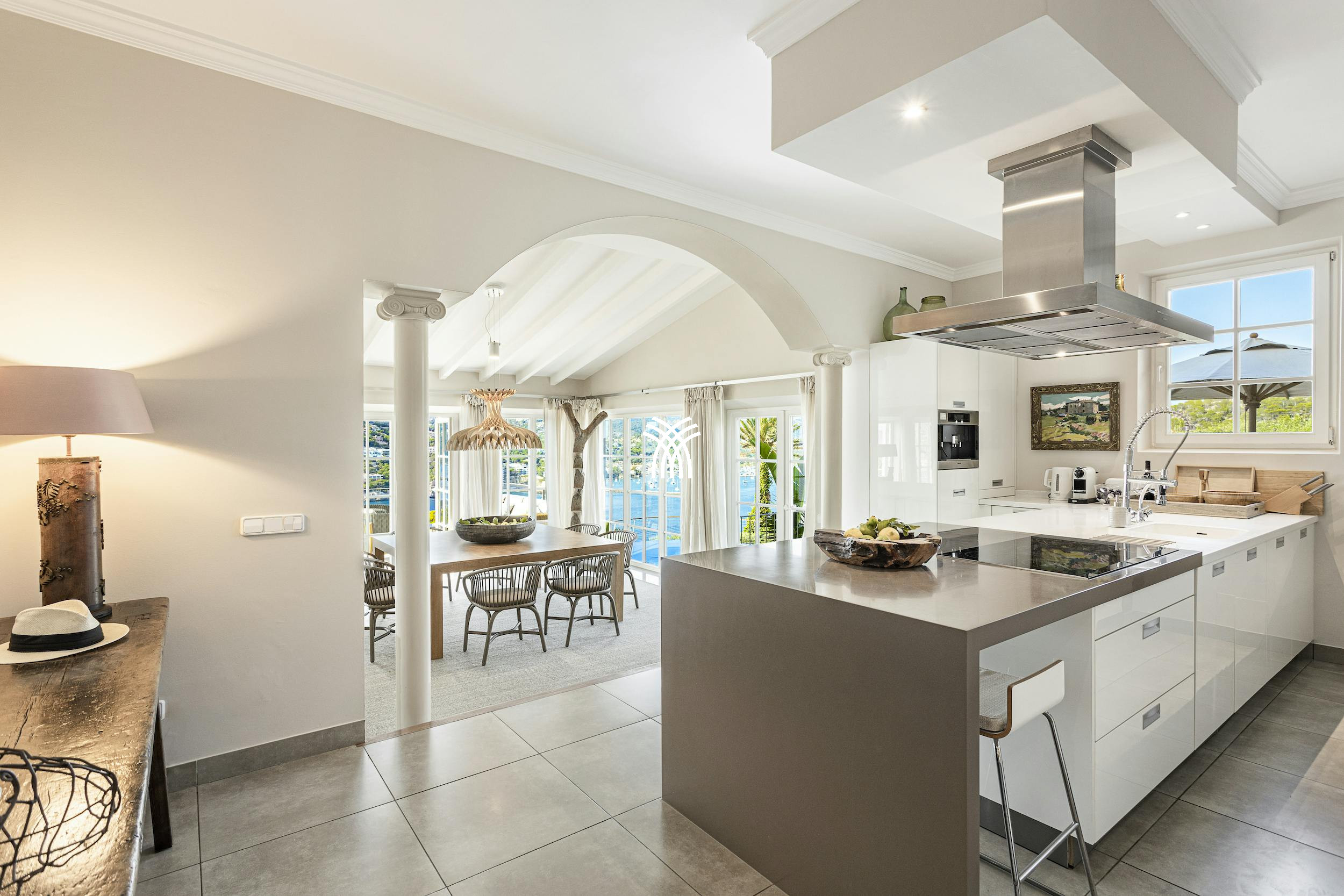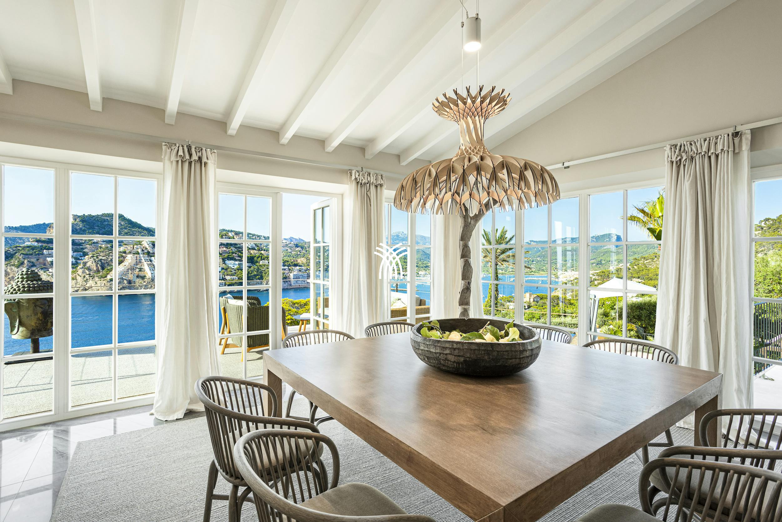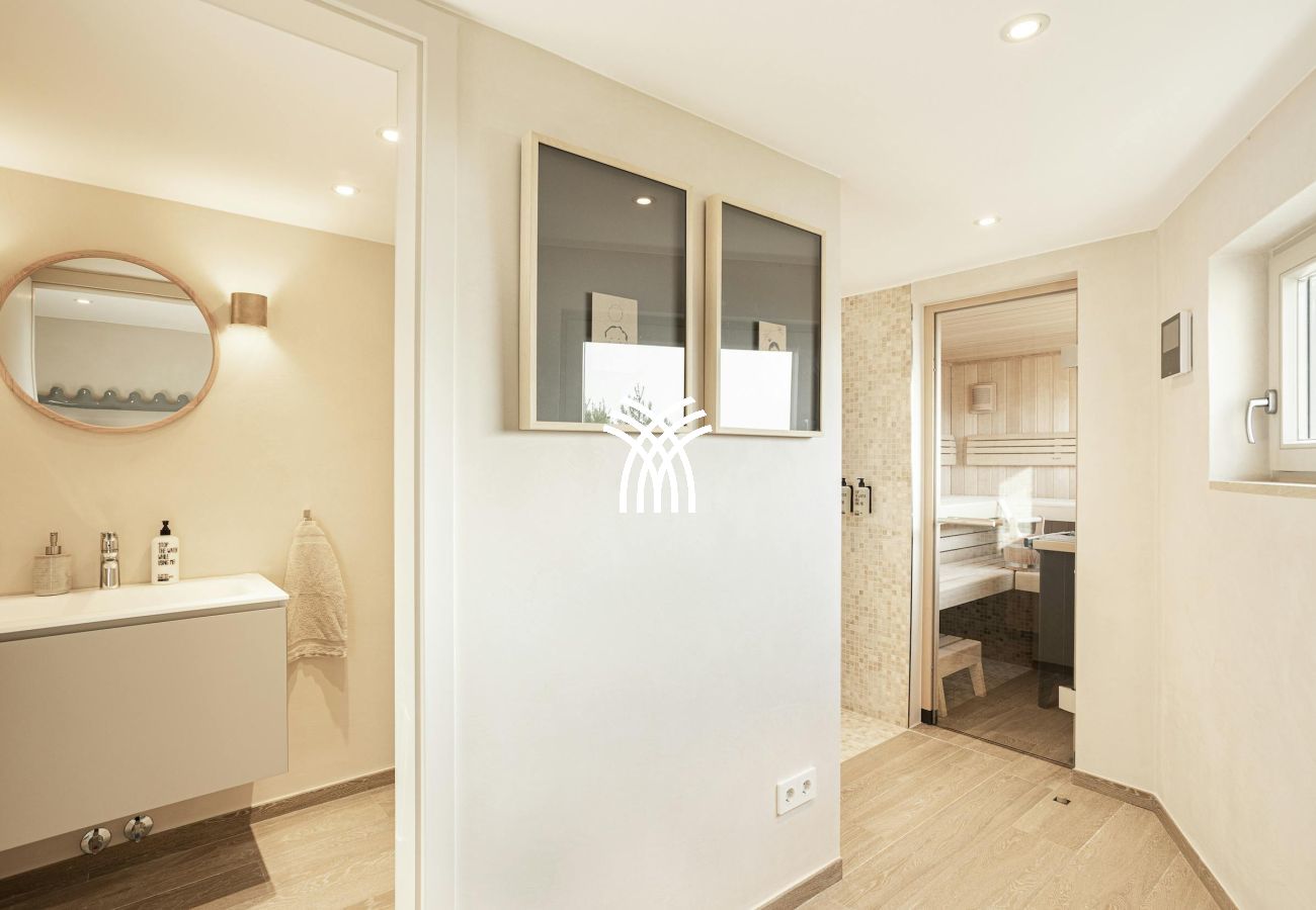 High-end finishes are found throughout, including handcrafted Mallorcan textiles and Dornbracht bathroom fittings. The villa also features underfloor heating, air conditioning, a Sonos sound system, SKY TV, a PlayStation 4 Pro, table tennis, and foosball for top-tier entertainment.