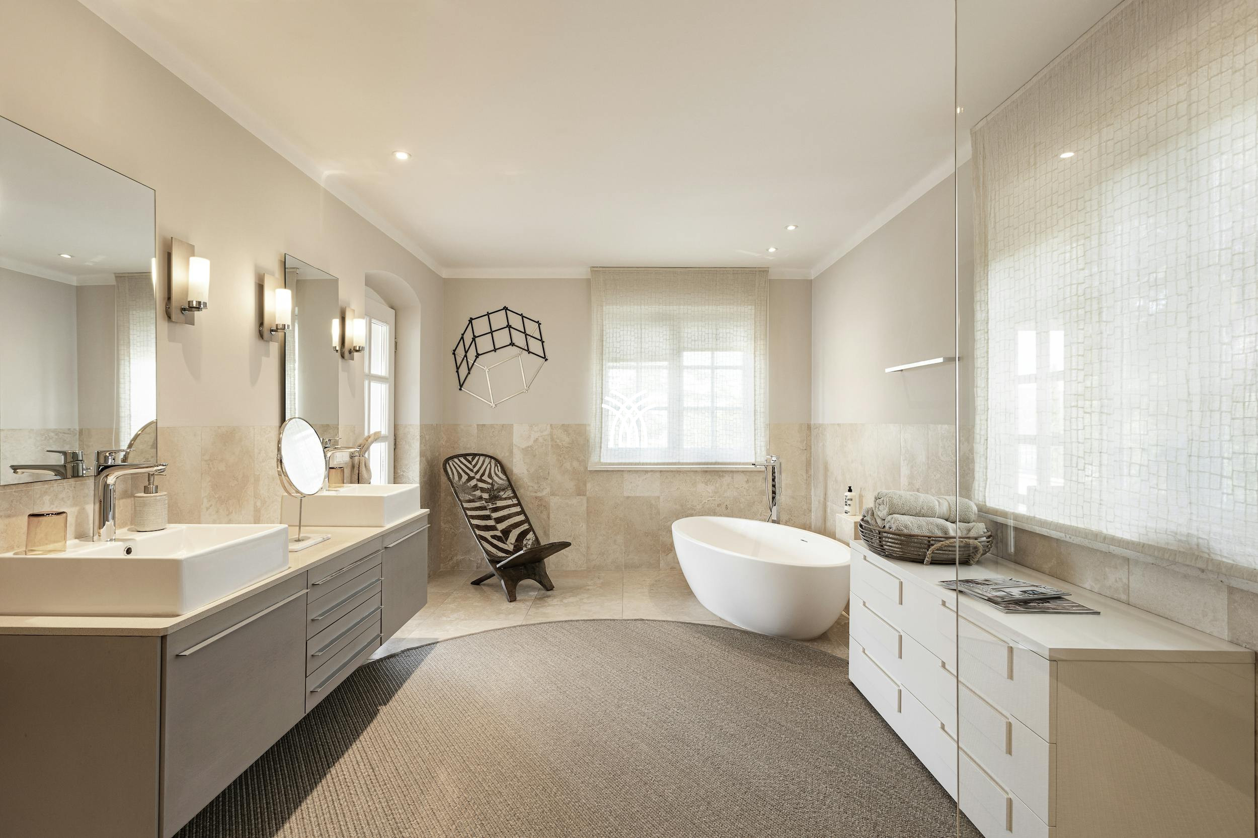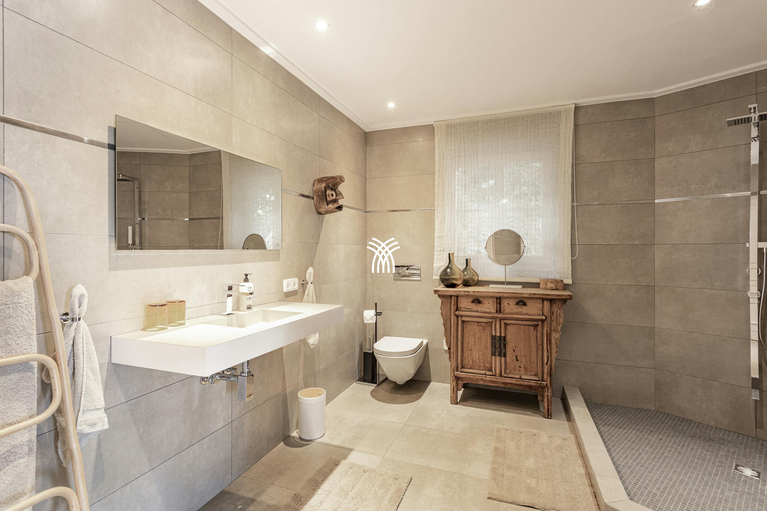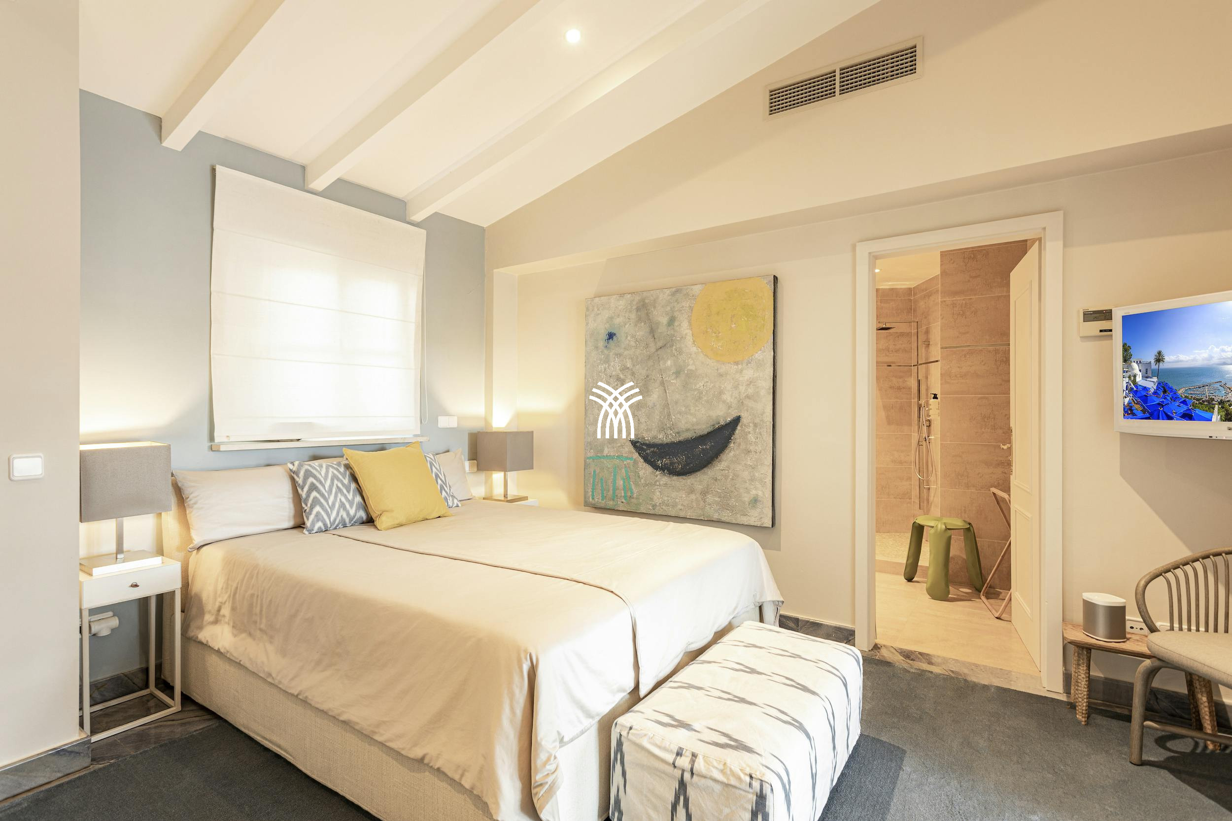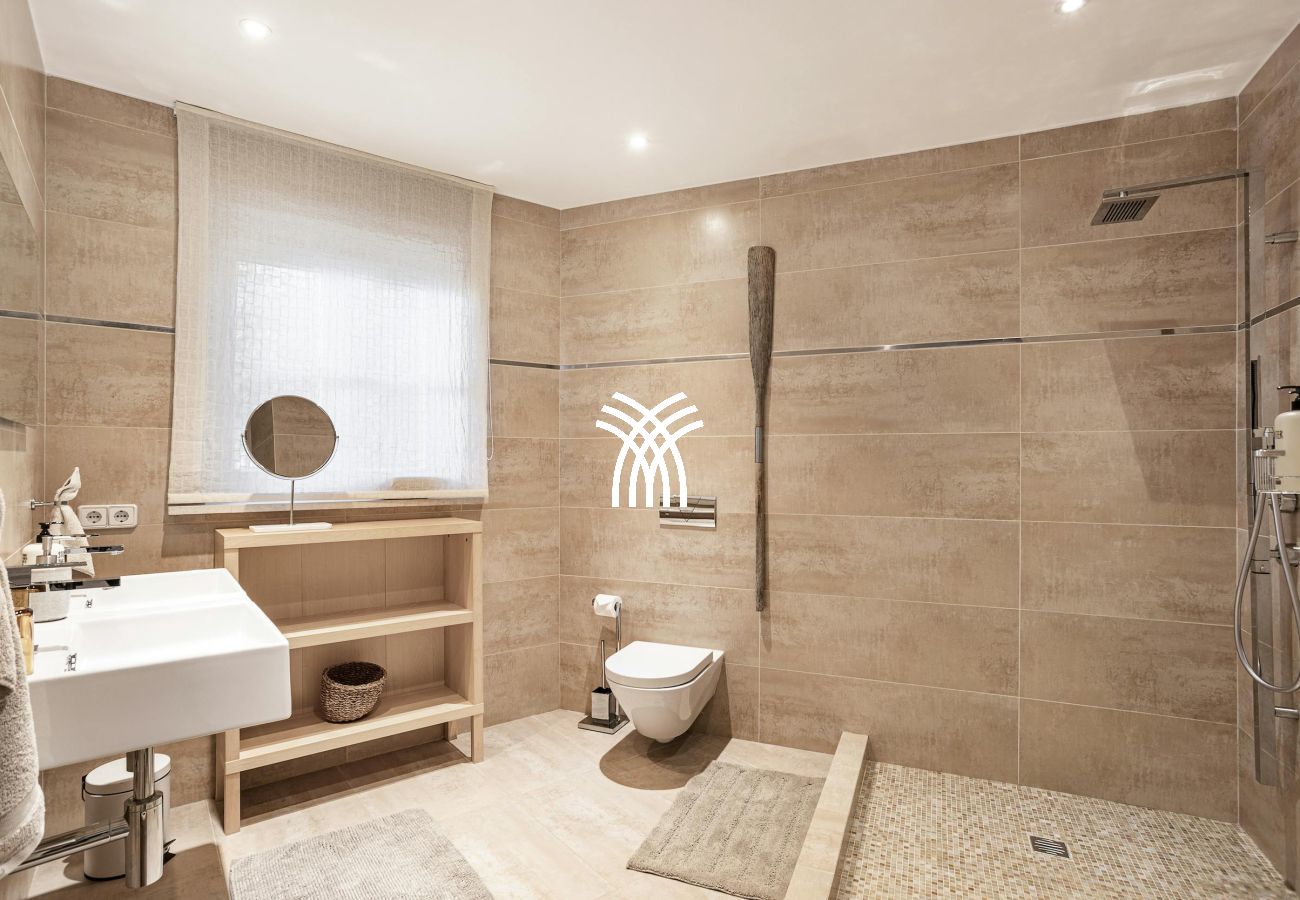 High-end finishes are found throughout, including handcrafted Mallorcan textiles and Dornbracht bathroom fittings. The villa also features underfloor heating, air conditioning, a Sonos sound system, SKY TV, a PlayStation 4 Pro, table tennis, and foosball for top-tier entertainment.