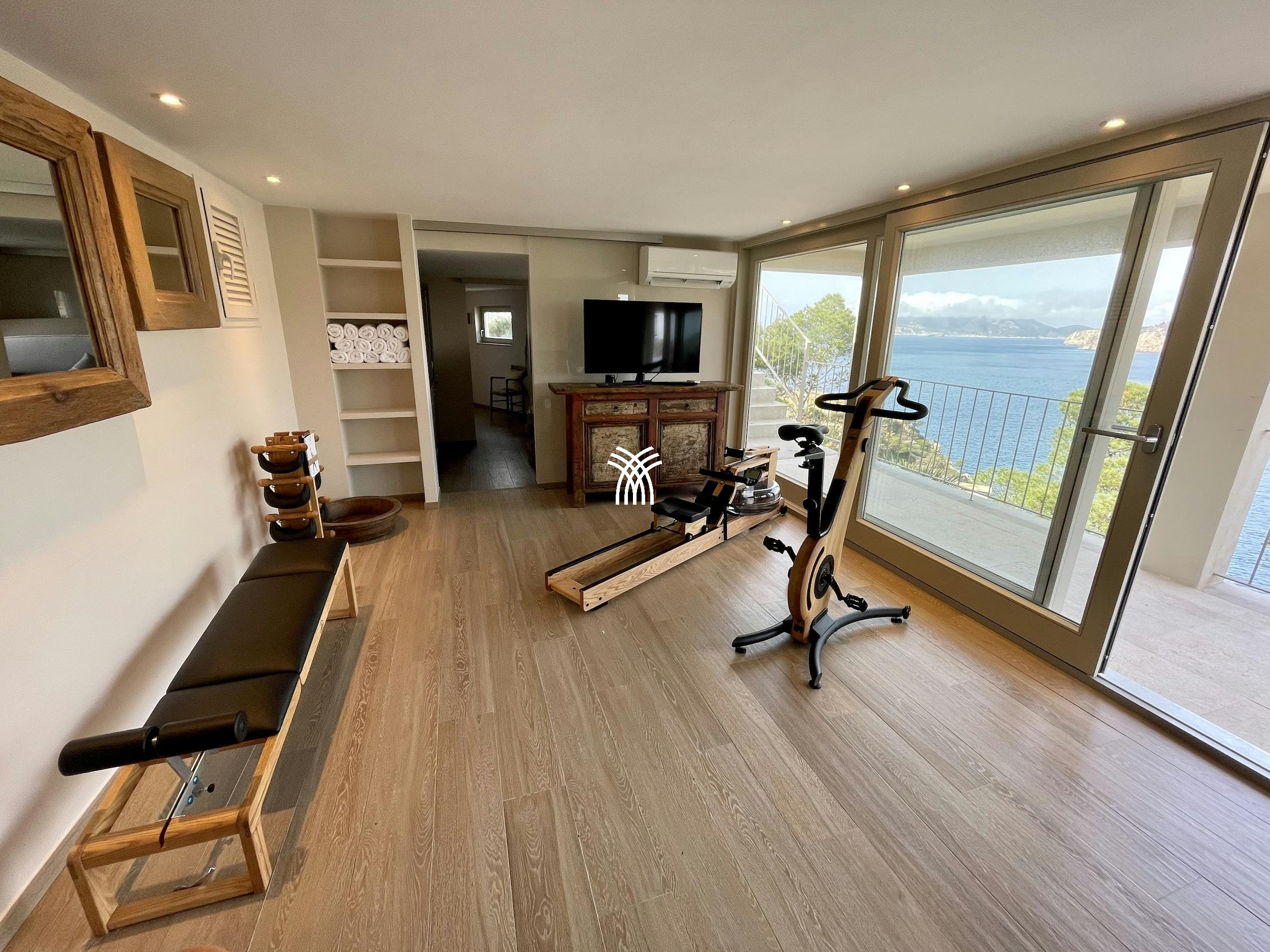 Villa Minerva is equipped with the finest amenities, ensuring a stay that is as convenient as it is luxurious. A modern, fully equipped kitchen invites gourmet experiences, while a private gym and sauna provide opportunities for wellness and relaxation without leaving the property.