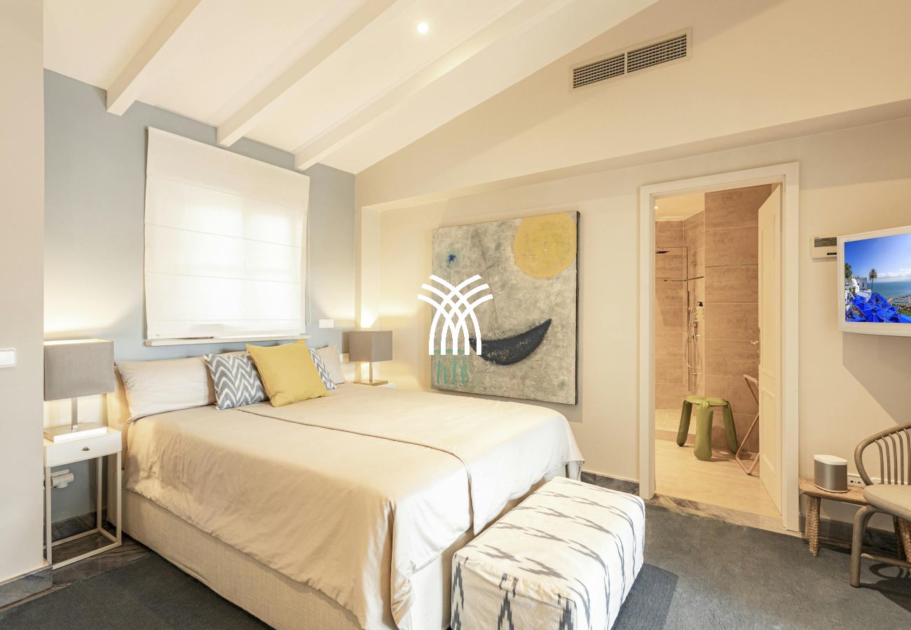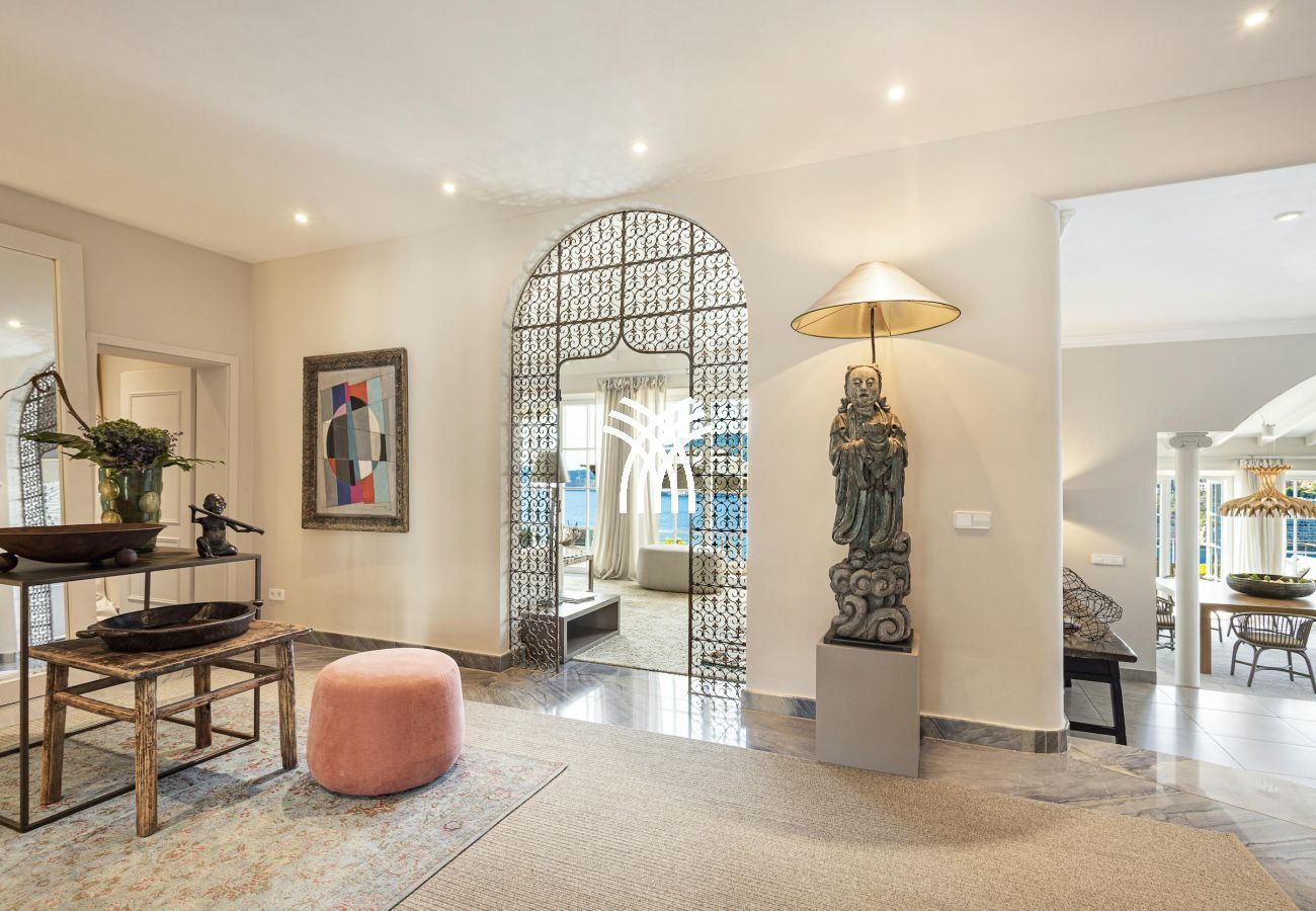 Set along Ibiza’s stunning southwest coastline between the enchanting Port Andratx and the crystal-clear waters of Cala Llamp, Casa En El Mar provides direct private access to the sea and accommodates up to 12 guests in absolute comfort. Surrounded by lush greenery in a prestigious neighborhood, the location offers tranquility just minutes from the vibrant energy of the marina’s fine dining, chic boutiques, and lively atmosphere.