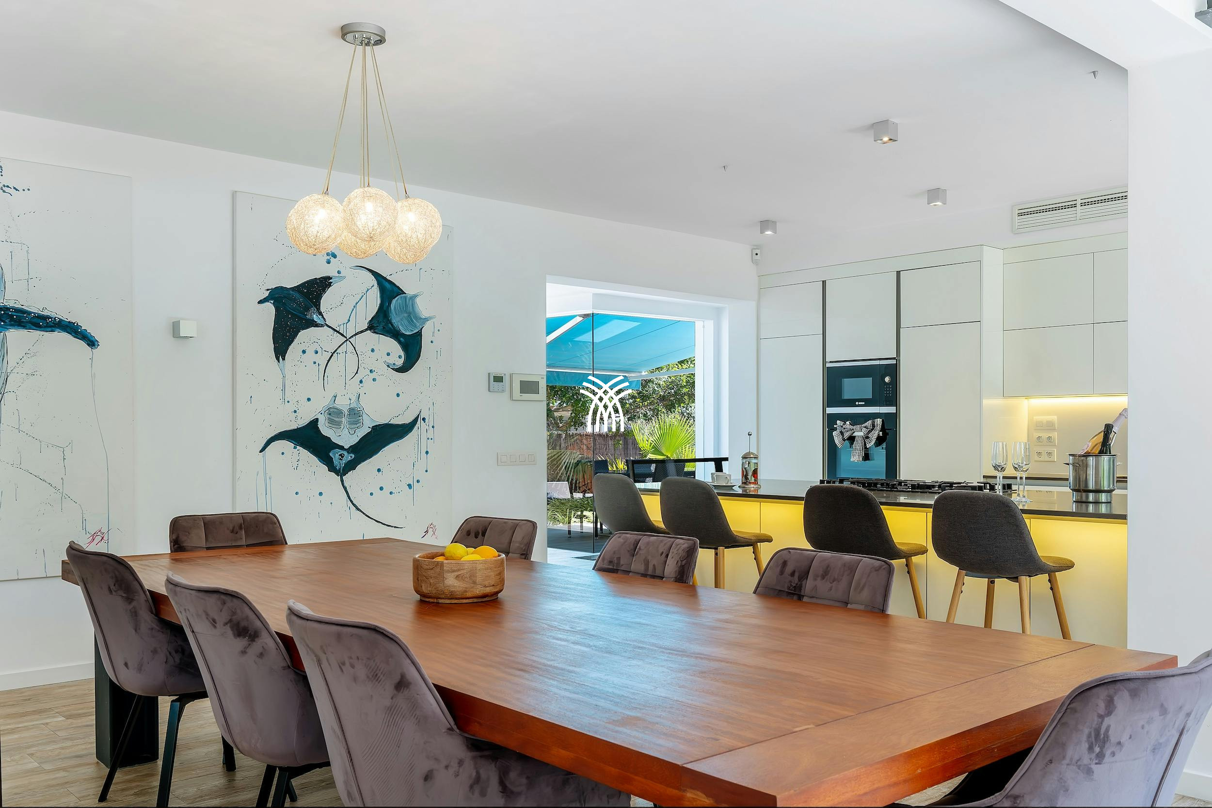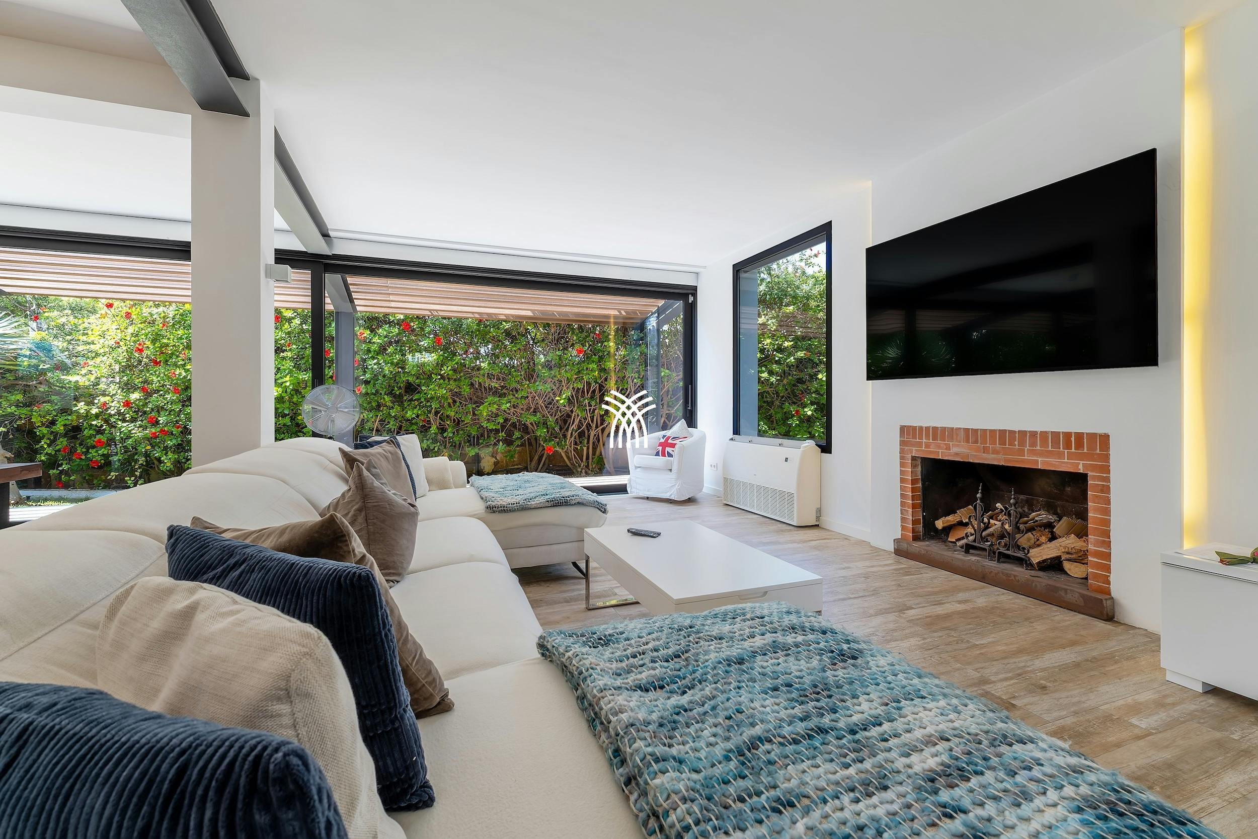 Whether you're lounging by the fireplace in the sun-drenched living room or enjoying the entertainment system with Netflix and YouTube, the indoor spaces are designed for comfort and connection. Underfloor heating makes the villa a welcoming haven all year round.