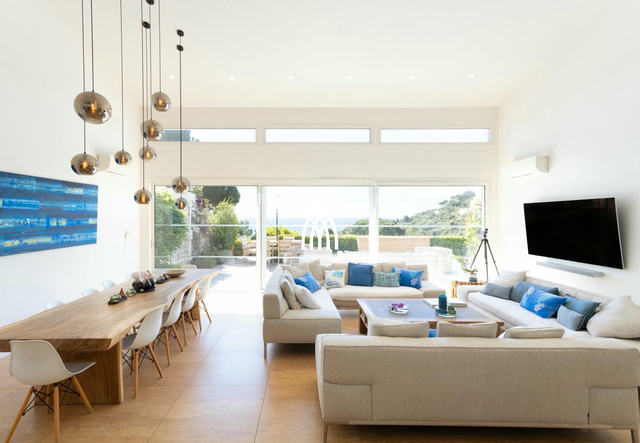 With five bedrooms and five bathrooms, the villa accommodates up to 10 travelers in absolute comfort. The bright interior spaces open onto panoramic terraces, while the heated 10 x 4.5-meter pool invites relaxation with a view of the horizon.
