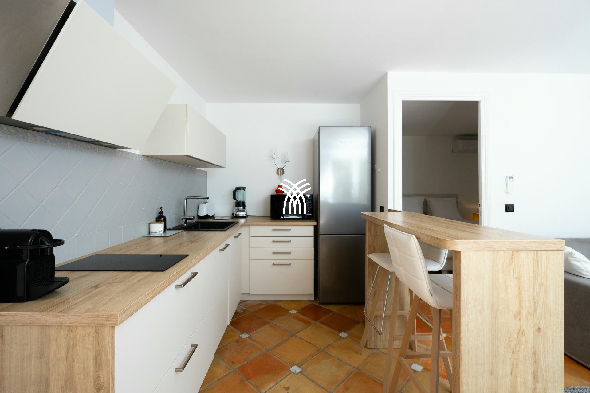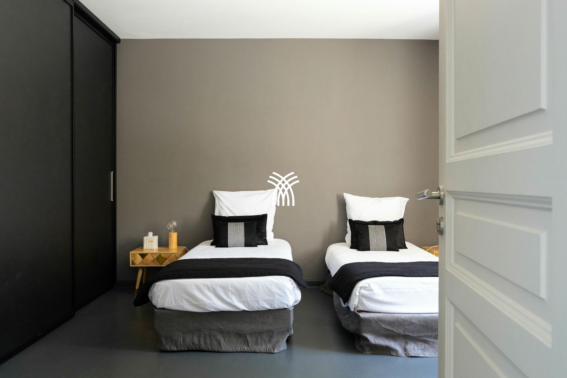 Equipped with eight bedrooms and eight bathrooms, it can accommodate up to 18 travelers in absolute comfort. The spacious, air-conditioned, and tastefully decorated living areas open onto a vast light-filled terrace surrounding a magnificent heated pool. Every outdoor corner has been designed to fully enjoy the Riviera climate, between relaxation, shared meals, and moments of conviviality.