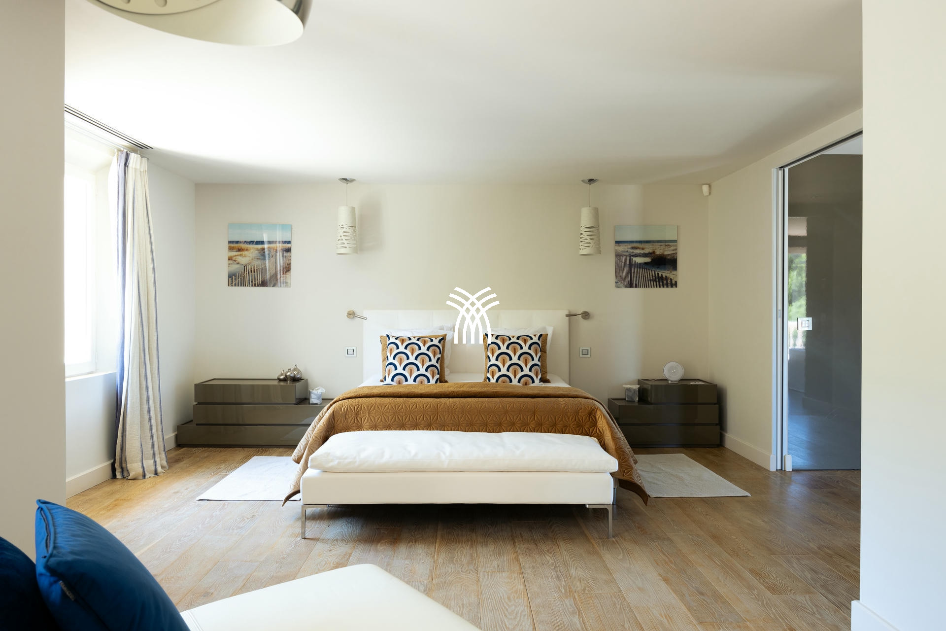 Nestled in the sought-after Marres district of Ramatuelle, just minutes from Saint-Tropez and Pampelonne beaches, Villa Prince is an exceptional property that combines contemporary elegance, spectacular volumes, and Mediterranean art of living. On a private estate of 4,000 m², this 600 m² villa offers a unique setting for family or friends' stays, in complete privacy.