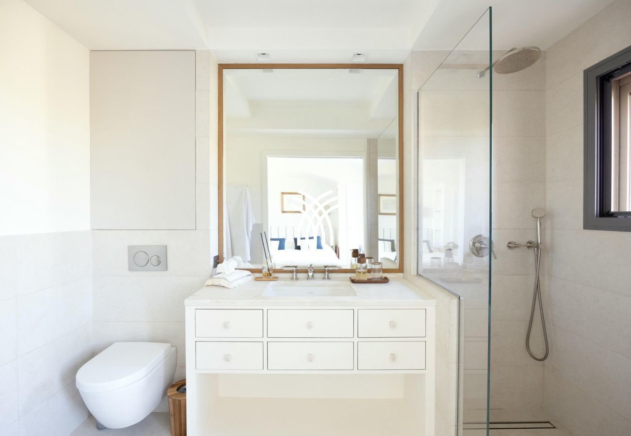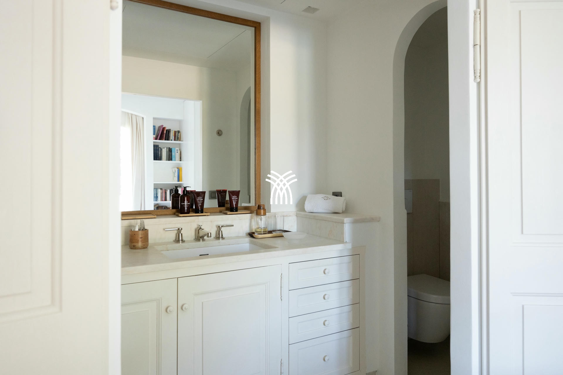 With five bedrooms and five bathrooms, the villa accommodates up to 10 travelers in absolute comfort. The bright interior spaces open onto panoramic terraces, while the heated 10 x 4.5-meter pool invites relaxation with a view of the horizon.