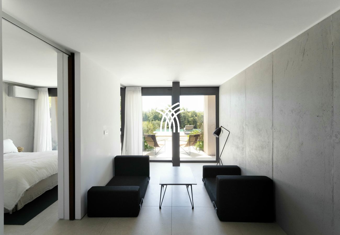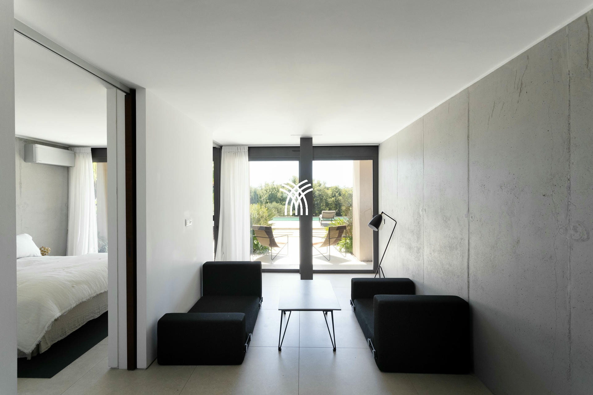 Inside, the villa boasts bright and spacious living areas. The elegant living room seamlessly connects to the outdoors, bringing in natural light and offering a harmonious link with the surrounding landscape. The adjoining dining area is perfect for shared meals, while the fully equipped kitchen meets all culinary needs. The five beautifully designed bedrooms, each with its own en-suite bathroom, ensure optimal comfort and privacy. Two of these bedrooms also feature independent entrances, offering additional seclusion for guests seeking extra privacy.