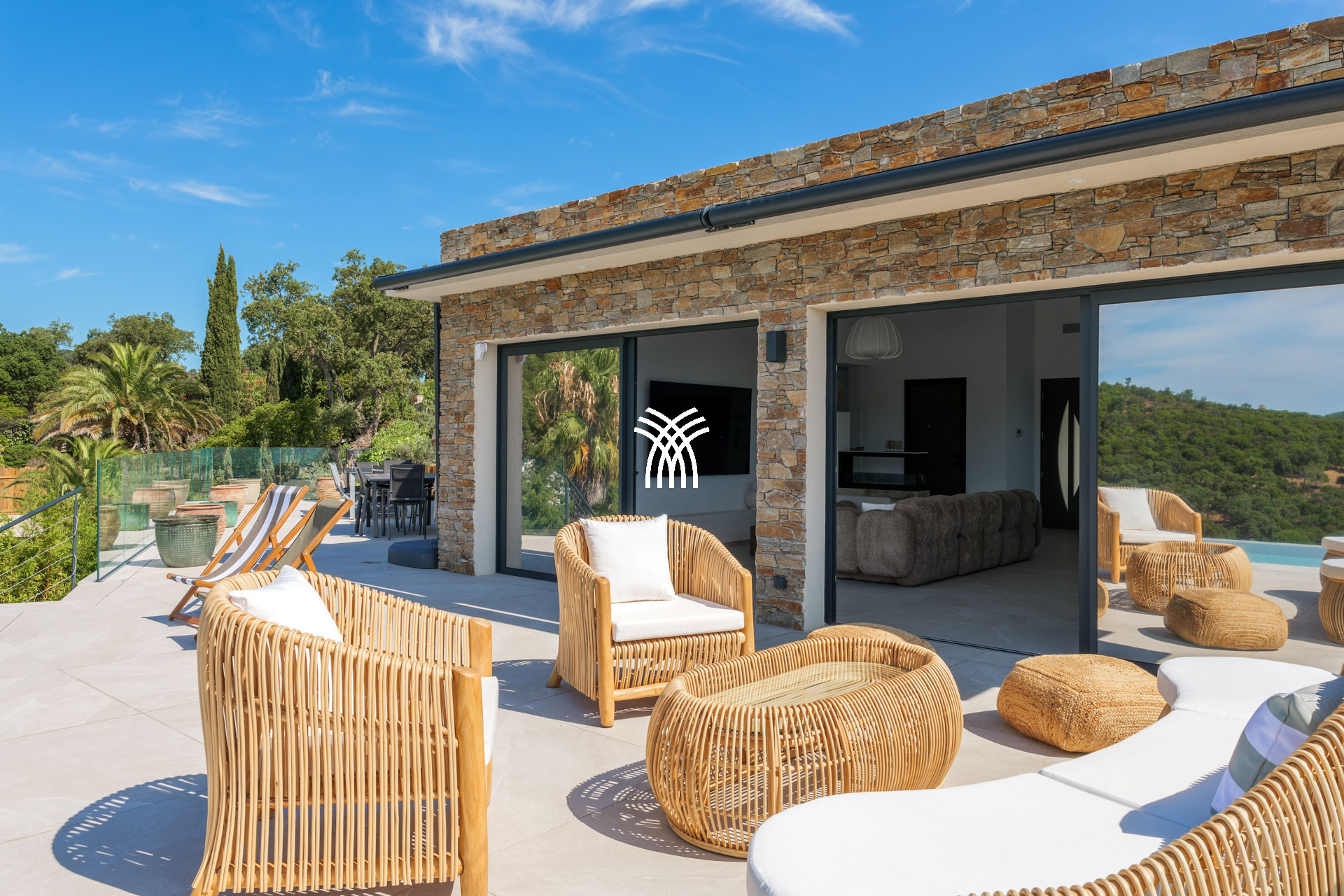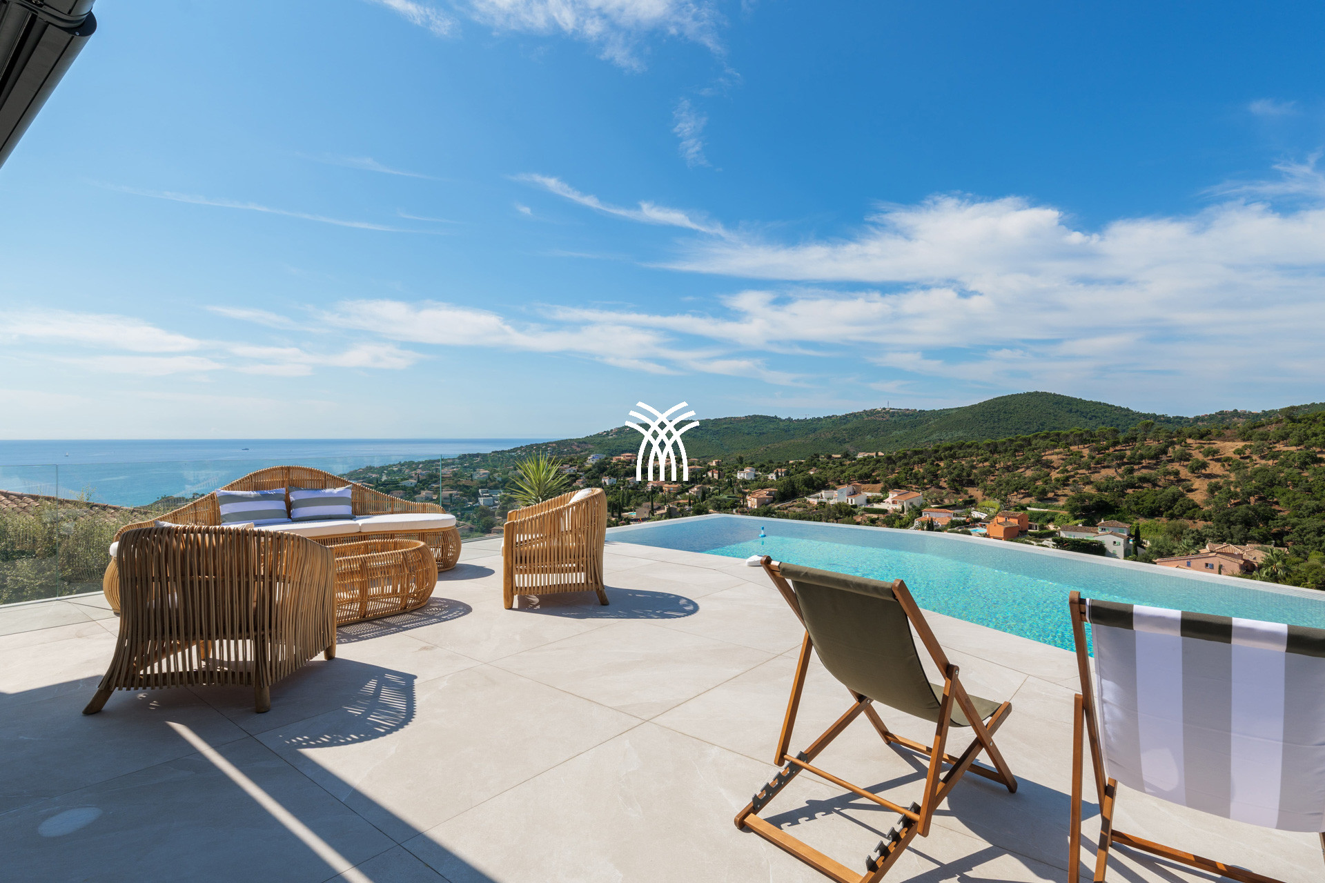 In the heart of a preserved environment between sea and hill, Villa Miramaris welcomes you to Roquebrune-sur-Argens, in the sought-after district of Les Issambres, for a luxurious and serene interlude on the French Riviera. Overlooking the Mediterranean with a breathtaking view, this newly renovated villa, completed in July 2025, spans 250 m² of elegance and modern comfort. From the moment you enter, you will be seduced by the light-filled living area, its high-end furniture, its fully equipped American kitchen, and its vast outdoor lounge space leading to a sumptuous infinity pool, heated on request.