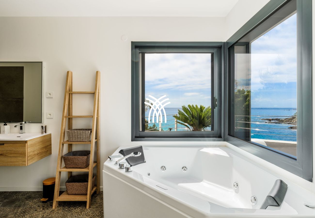 Villa Serenity also offers numerous relaxation spaces. Whether on the terrace, around the swimming pool or in the shaded corners of the garden, you will always find a perfect spot to relax and enjoy the surrounding tranquillity. For convivial moments, a gas barbecue is at your disposal, ideal for organising outdoor meals with a splendid view of the sea.