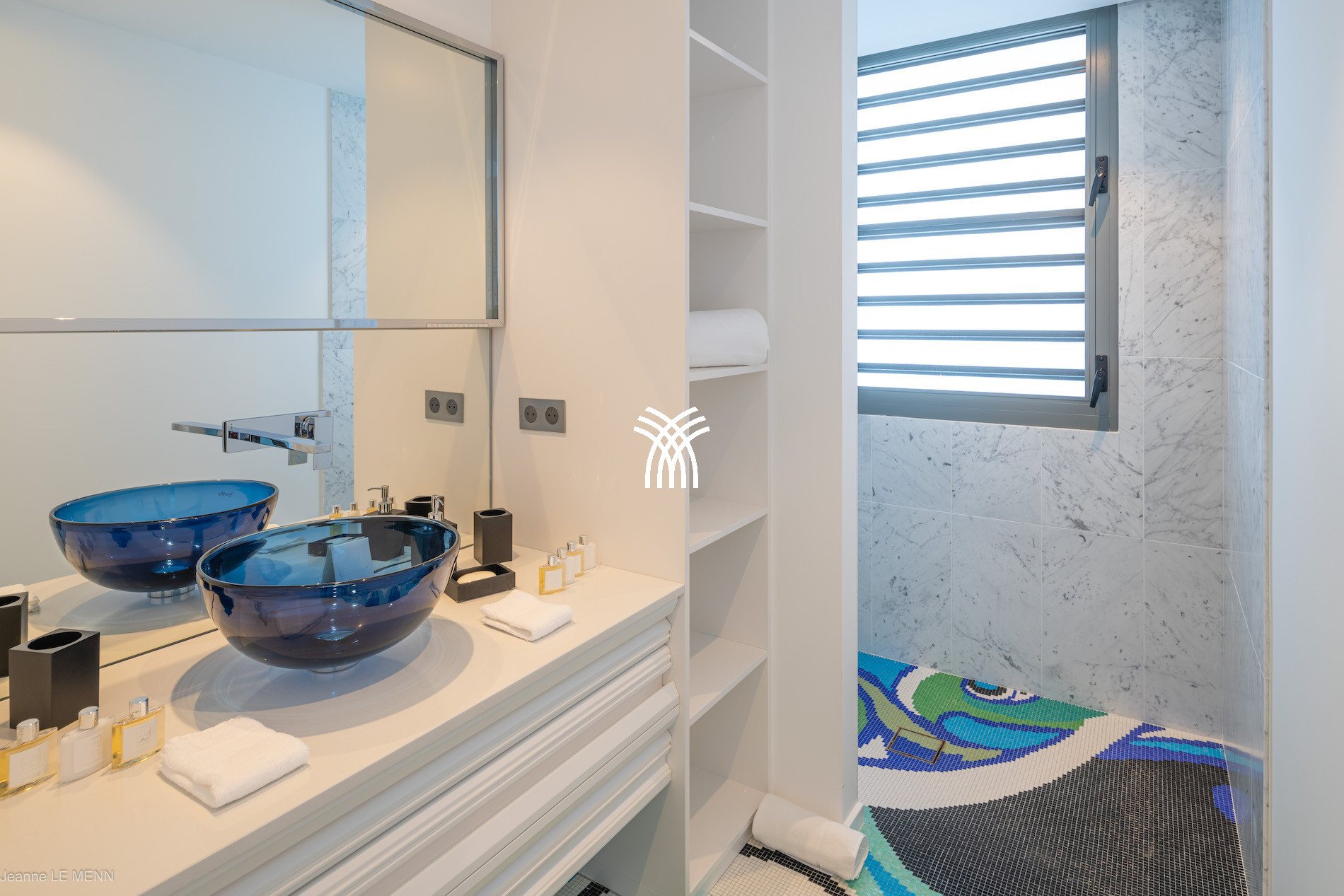 Organised over three levels, the main villa captivates with its generous volumes and warm atmosphere. The main level houses an elegant lounge bathed in light, a master bedroom and an open kitchen overlooking the terrace and swimming pool. The lower level accommodates two other bedrooms with private bathrooms, each offering an intimate and restful atmosphere. Further down, an independent studio completes the ensemble, with its living room, kitchenette and comfortable bedroom. All bedrooms are equipped with king-size beds convertible to twin beds to adapt to all needs, and each has its own bathroom.