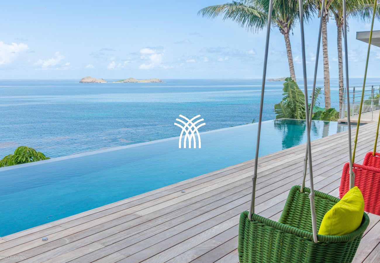 The Villa Amor View is a luxury villa for rent in St. Barth, perched on the cliff of Saint-Jean. This luxury villa rental in St. Barth offers one of the most spectacular views of the island, with a breathtaking view of the ocean and surrounding islands.