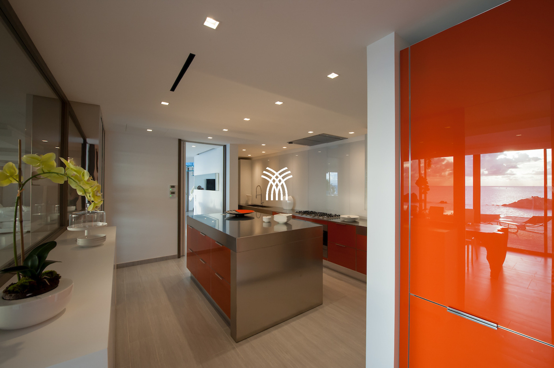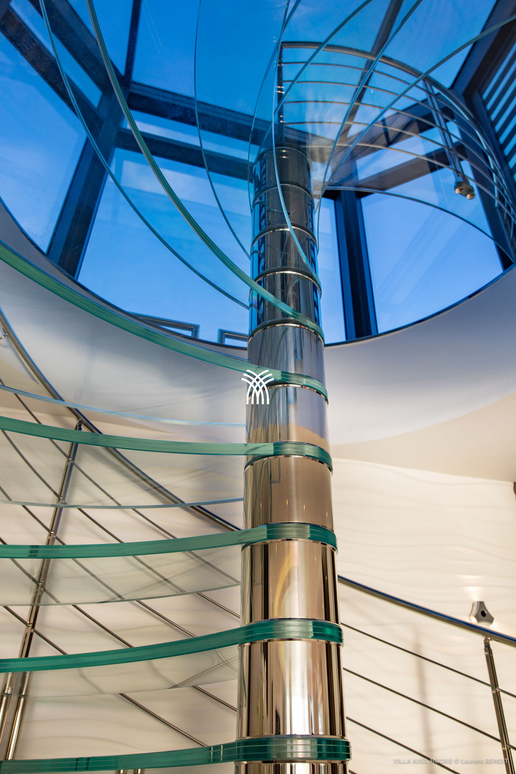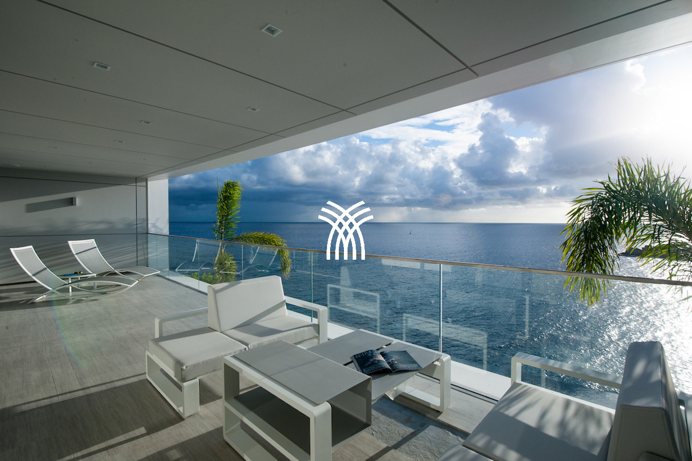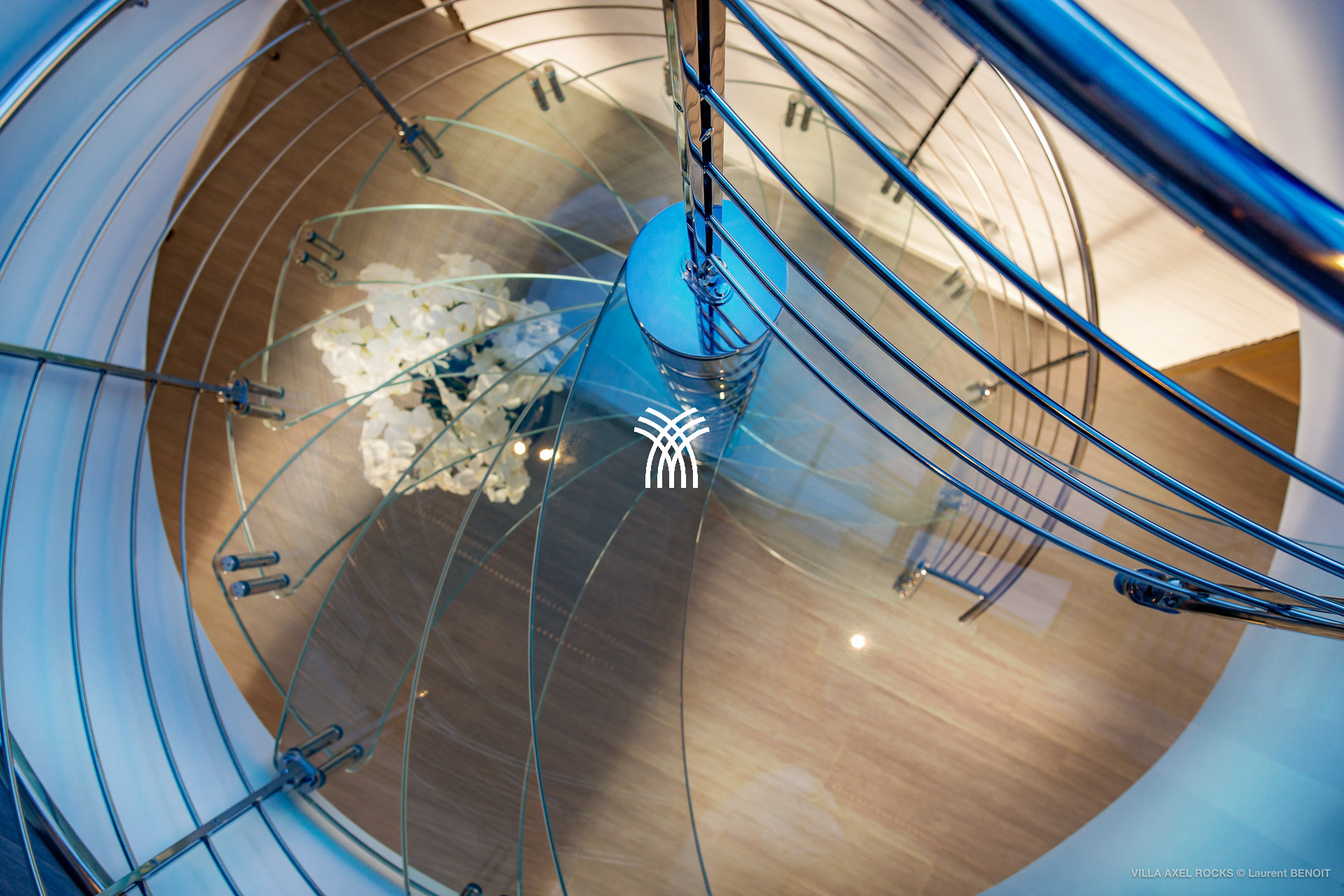 The vacation rental is built on 2 levels and consists of 4 suites with private terraces facing the ocean. On the upper level is the entrance and 4 suites. The fifth suite as well as the common areas and the swimming pool are on the lower floor which is accessed by a sumptuous glass staircase.