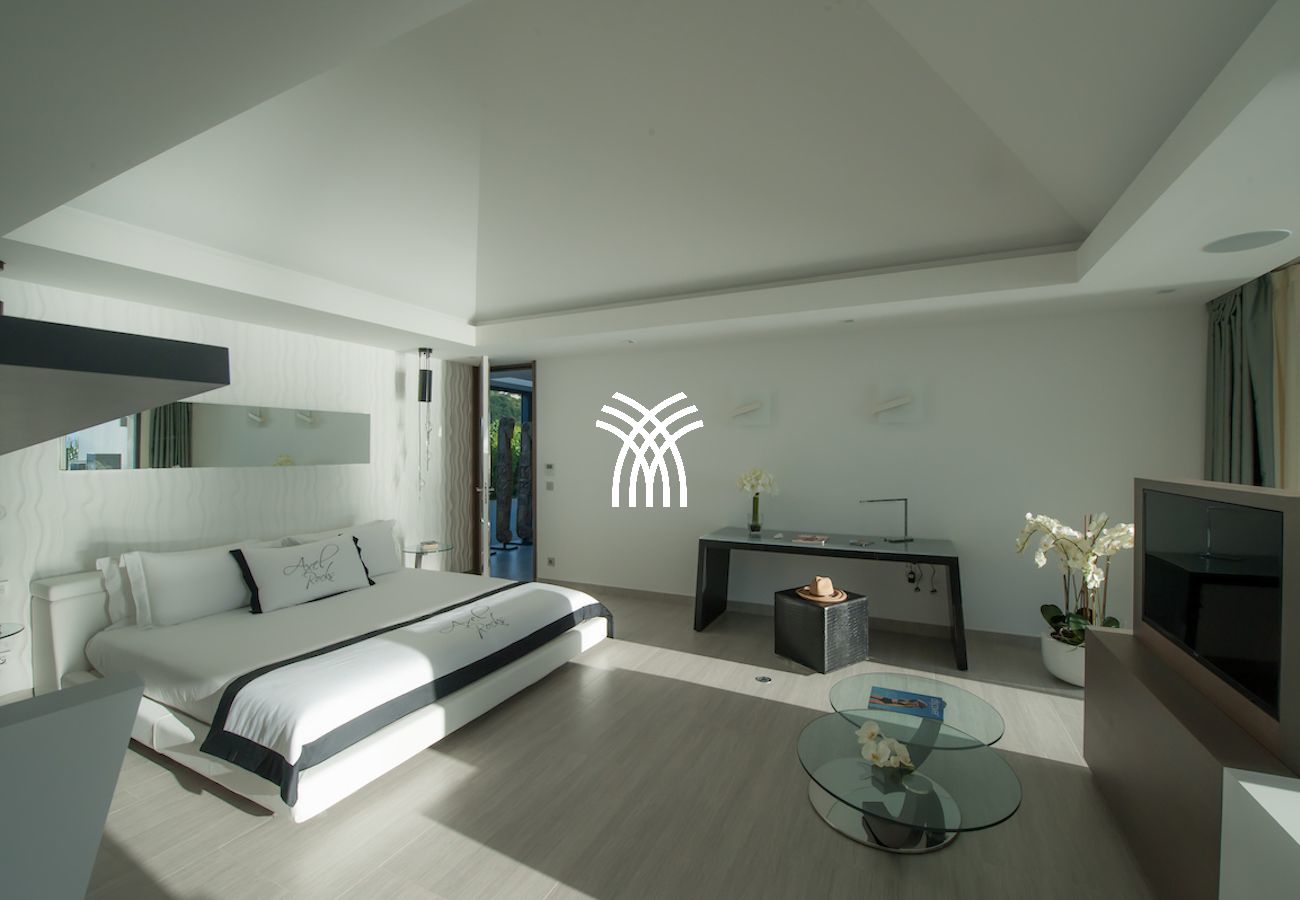 Fully air-conditioned and tastefully equipped, Villa Axel Rocks St Barth has four beautiful bedrooms with their en-suite bathrooms, a television with French & American satellite and an Apple TV. Each also has a private terrace with loungers and sea view. The fifth room is a blind room for staff.