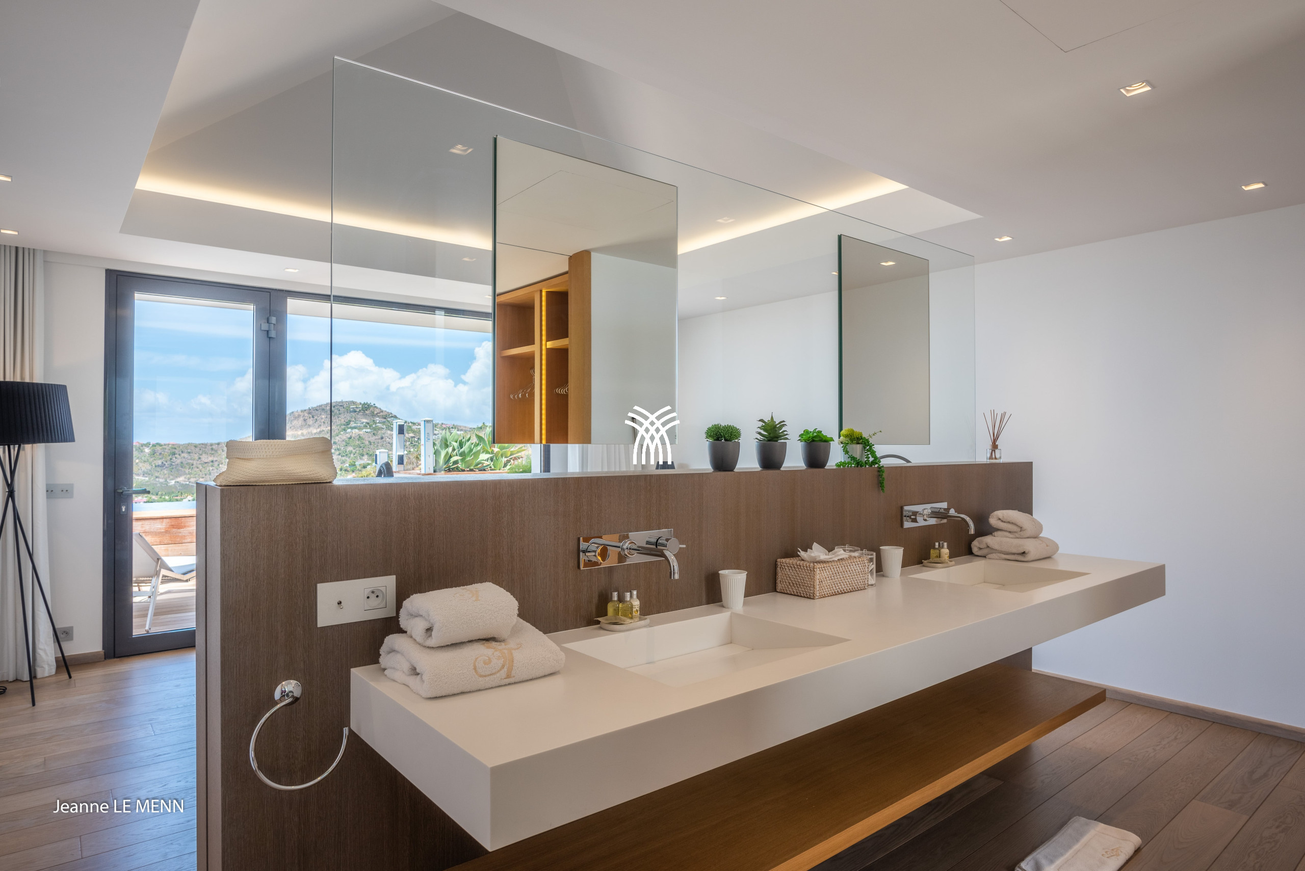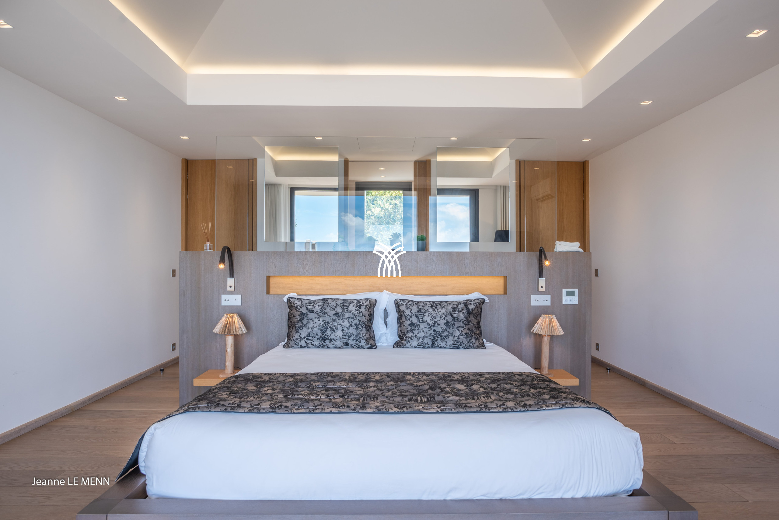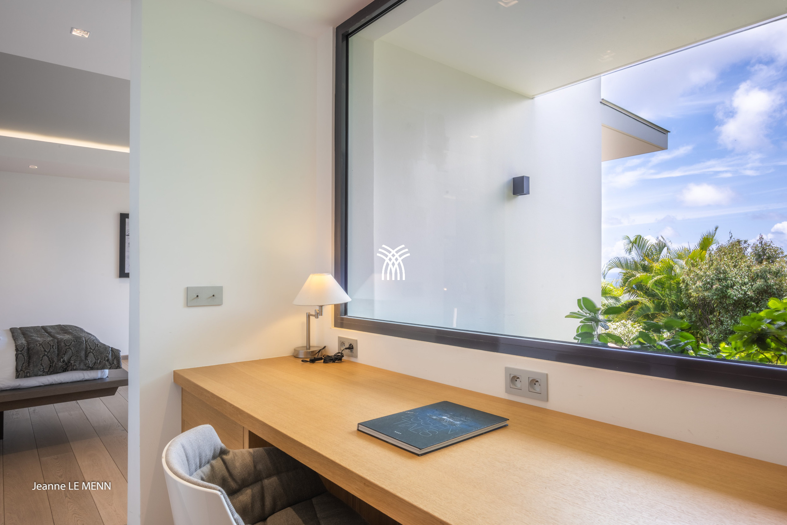 Designed in a contemporary style, the Villa Bastide offers three air-conditioned bedrooms of the same size, all with private bathrooms and ocean views. Whether you are traveling as a couple, with family, or with friends, each guest enjoys equal comfort and total privacy.
