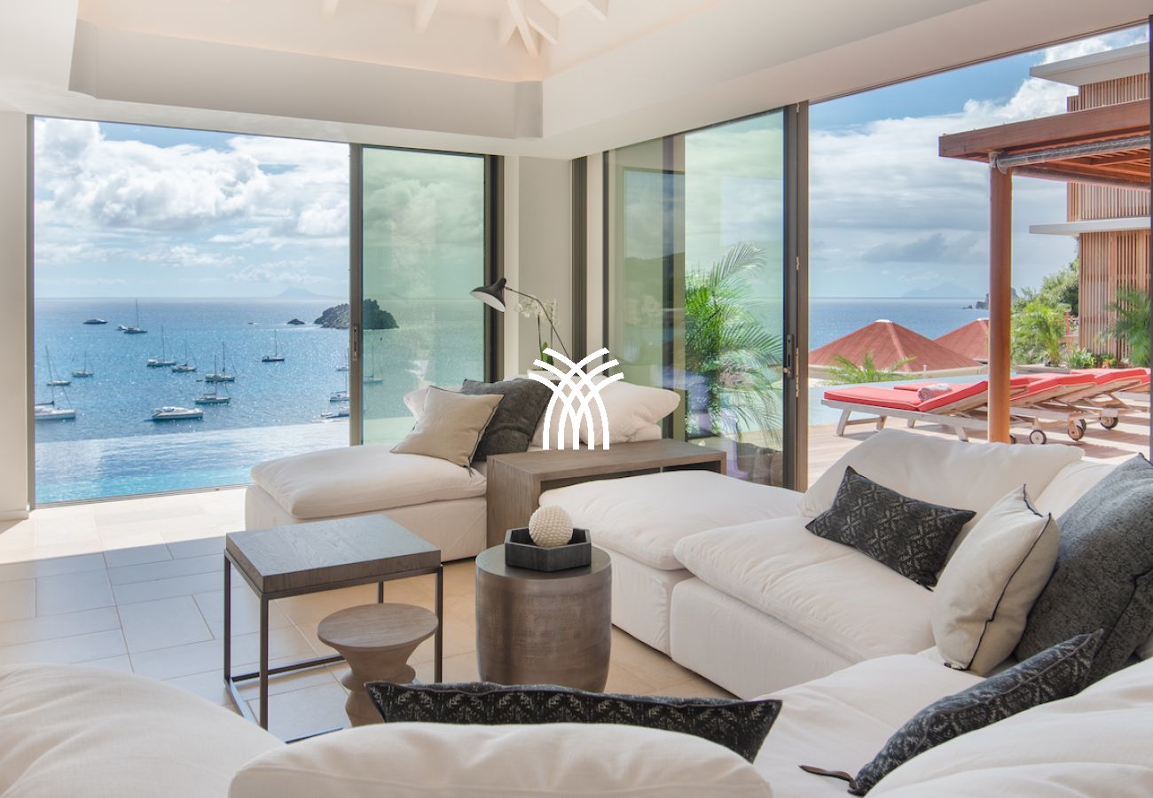 The White Villa is a luxury villa for rent in St. Barth, located on the heights of Corossol. Offering a spectacular view of Corossol Bay and the entrance to Gustavia harbor, this luxury St. Barth villa rental is an invitation to relaxation, blending contemporary elegance with a breathtaking panorama.