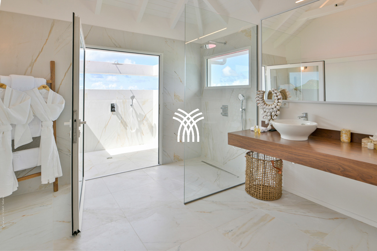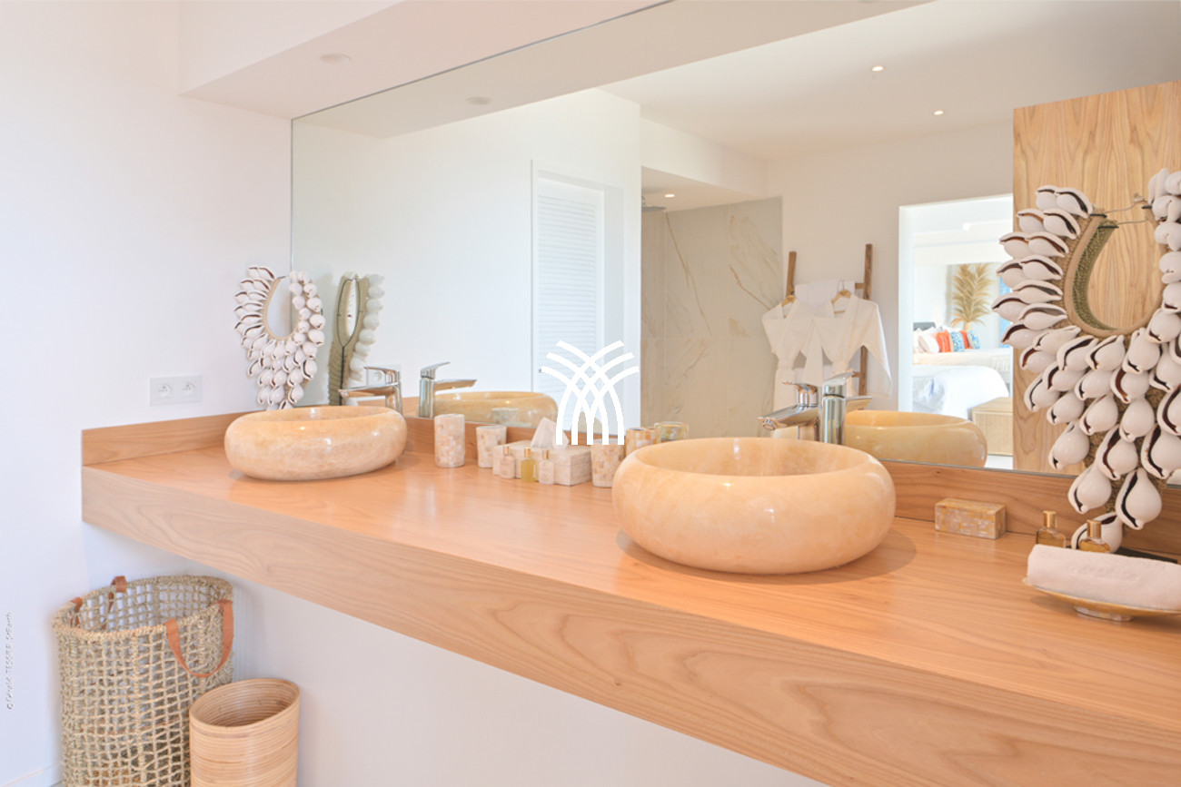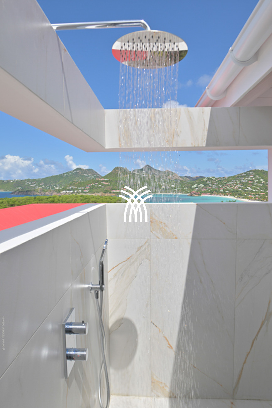 The villa stands out for its privileged location with an unobstructed view of Eden Rock and direct access to the beach, ideal for a romantic swim, a surfing session, or an exclusive waterfront lunch.