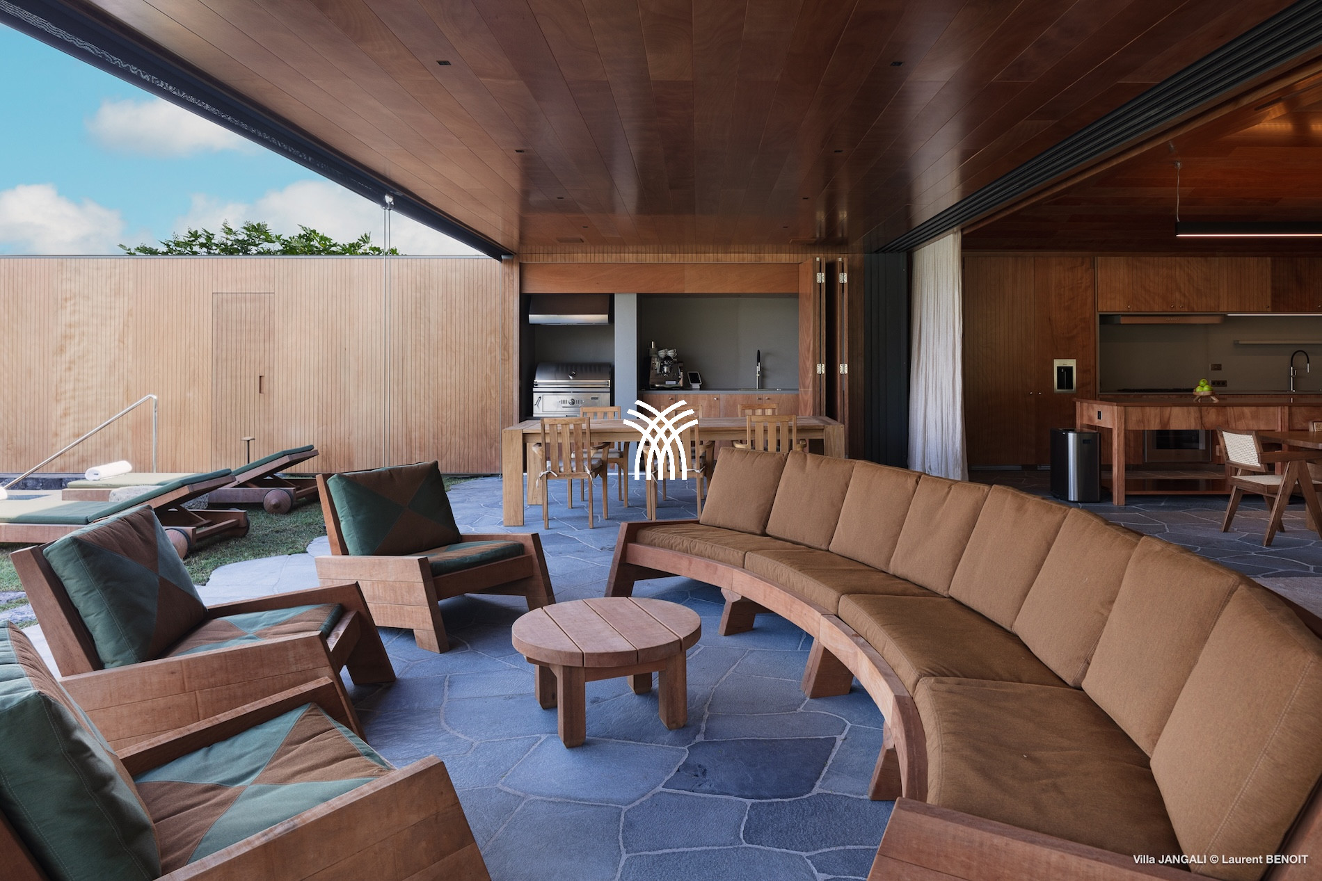 Surrounded by lush tropical vegetation, the villa consists of 5 elegantly designed rooms, carefully crafted to ensure privacy, comfort, and serenity for each guest. The spacious interior spaces combine contemporary decor, noble materials, and a zen atmosphere, bathed in natural light.